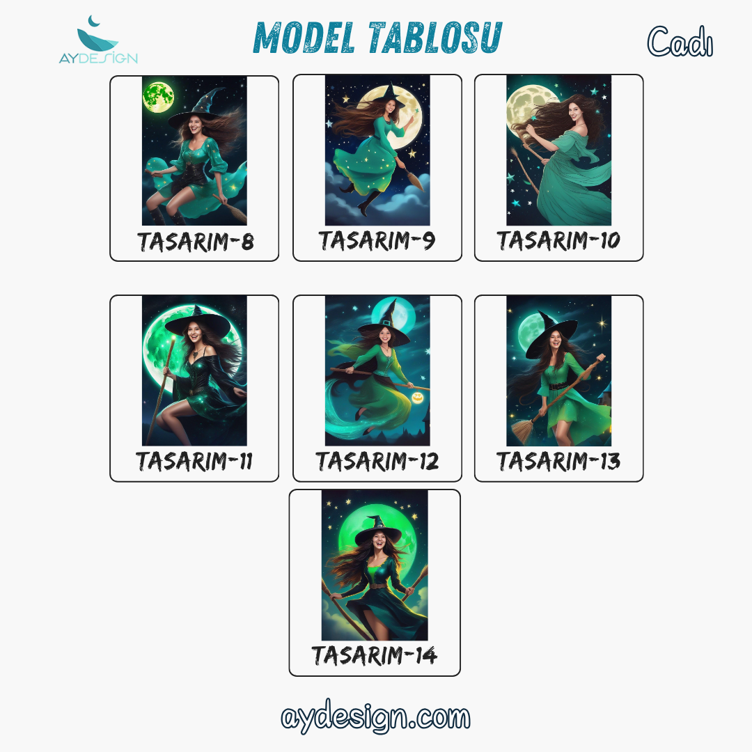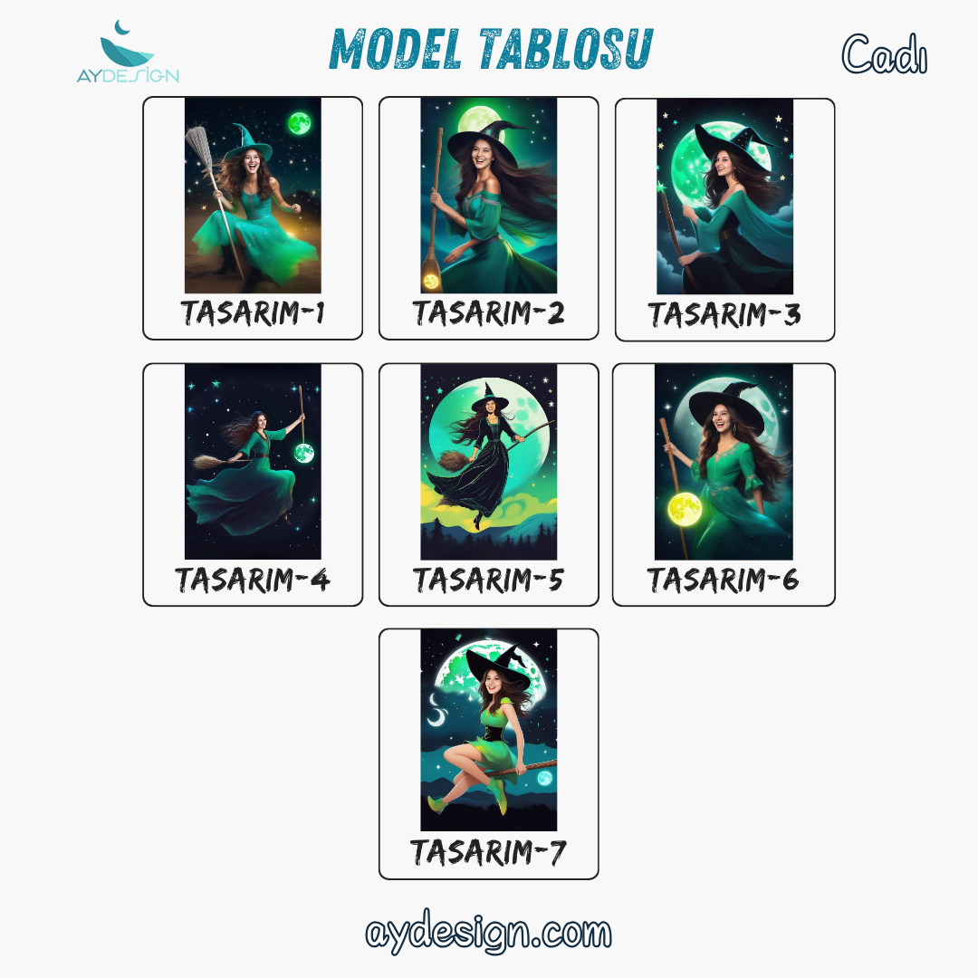 Cadı temalı karikatürünüzü benzersiz bir sanat eserine dönüştürün! Kişiye özel cadı temalı karikatür cam tablolar, temperli cam üzerine yüksek teknoloji UV baskı ile üretilir. Sararma ve solma yapmayan bu zarif tablolar, 25x35cm, 35x50cm ve 50x70cm boyut seçenekleriyle her mekana mistik bir hava katar. Evinize büyülü bir dokunuş ekleyin ya da sevdiklerinize yaratıcı bir hediye sunun!