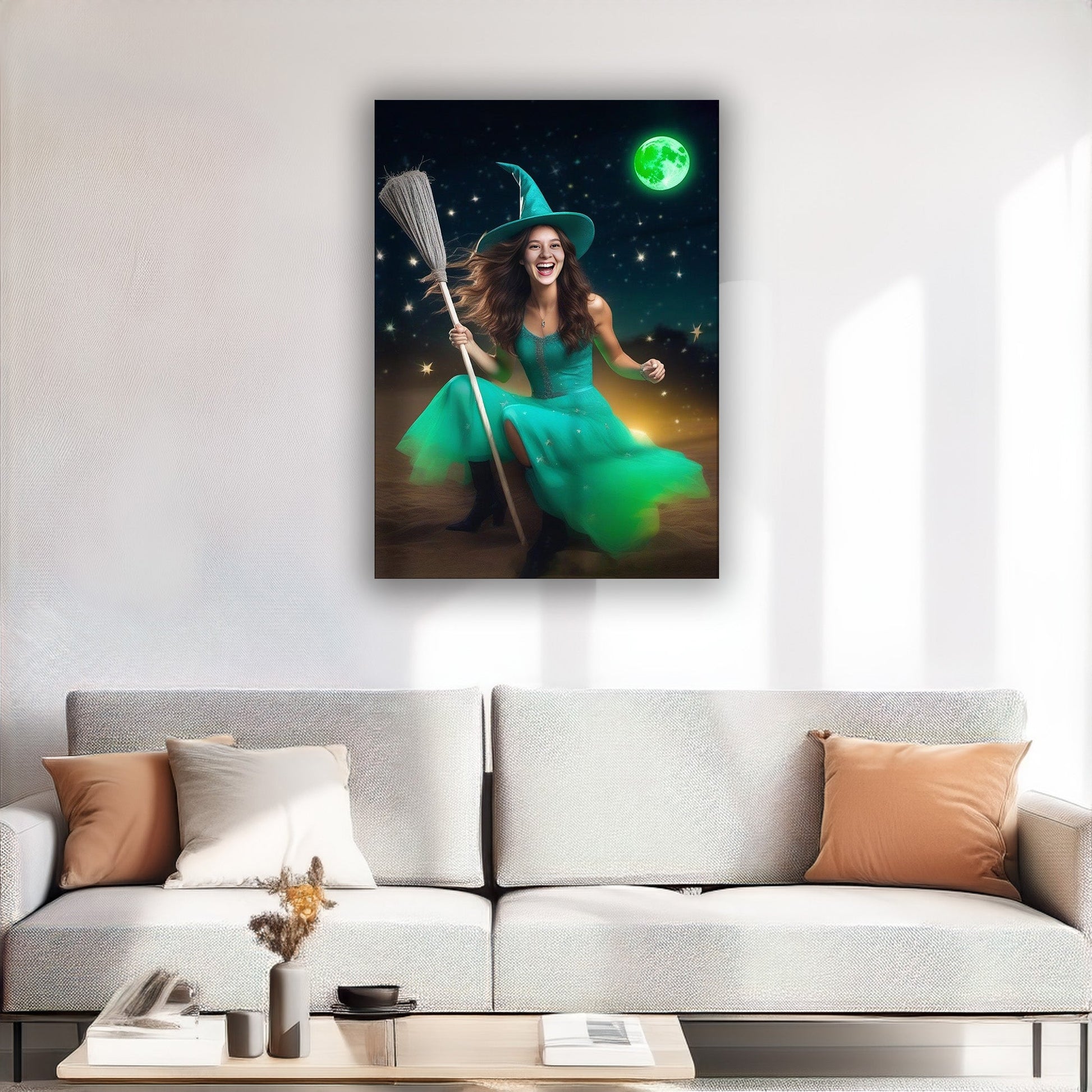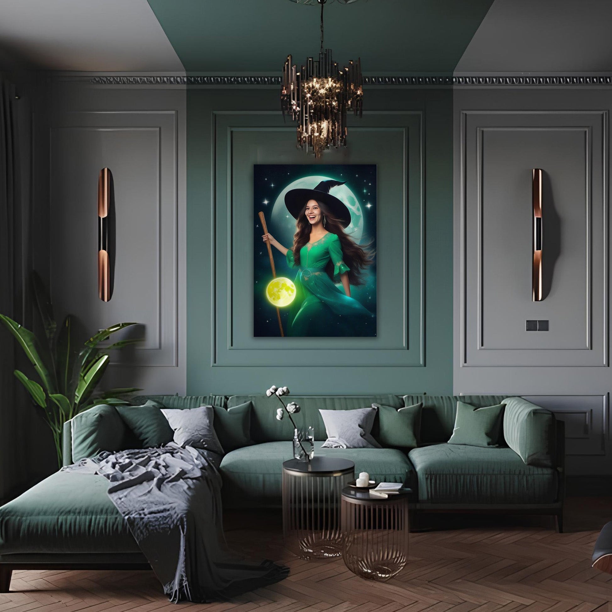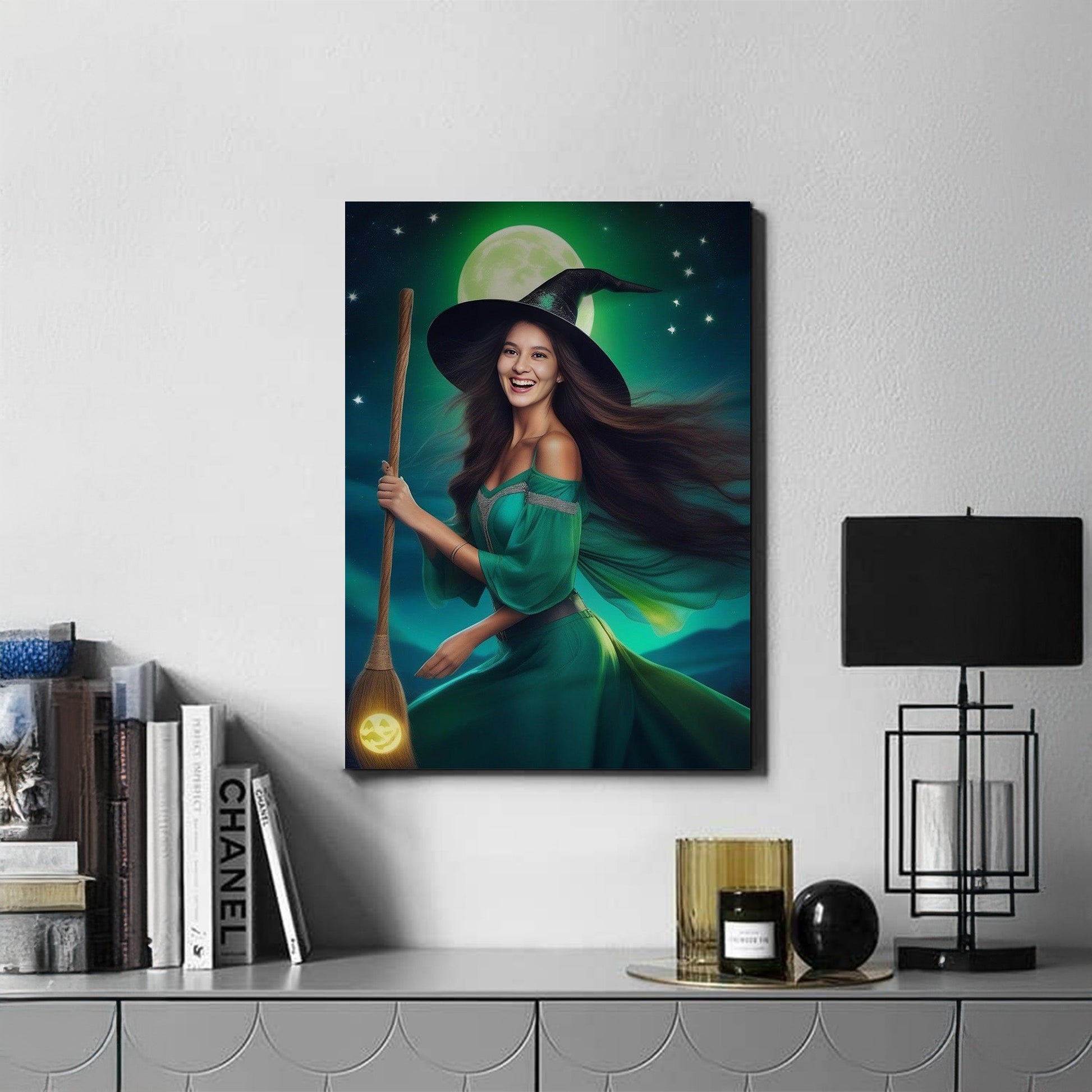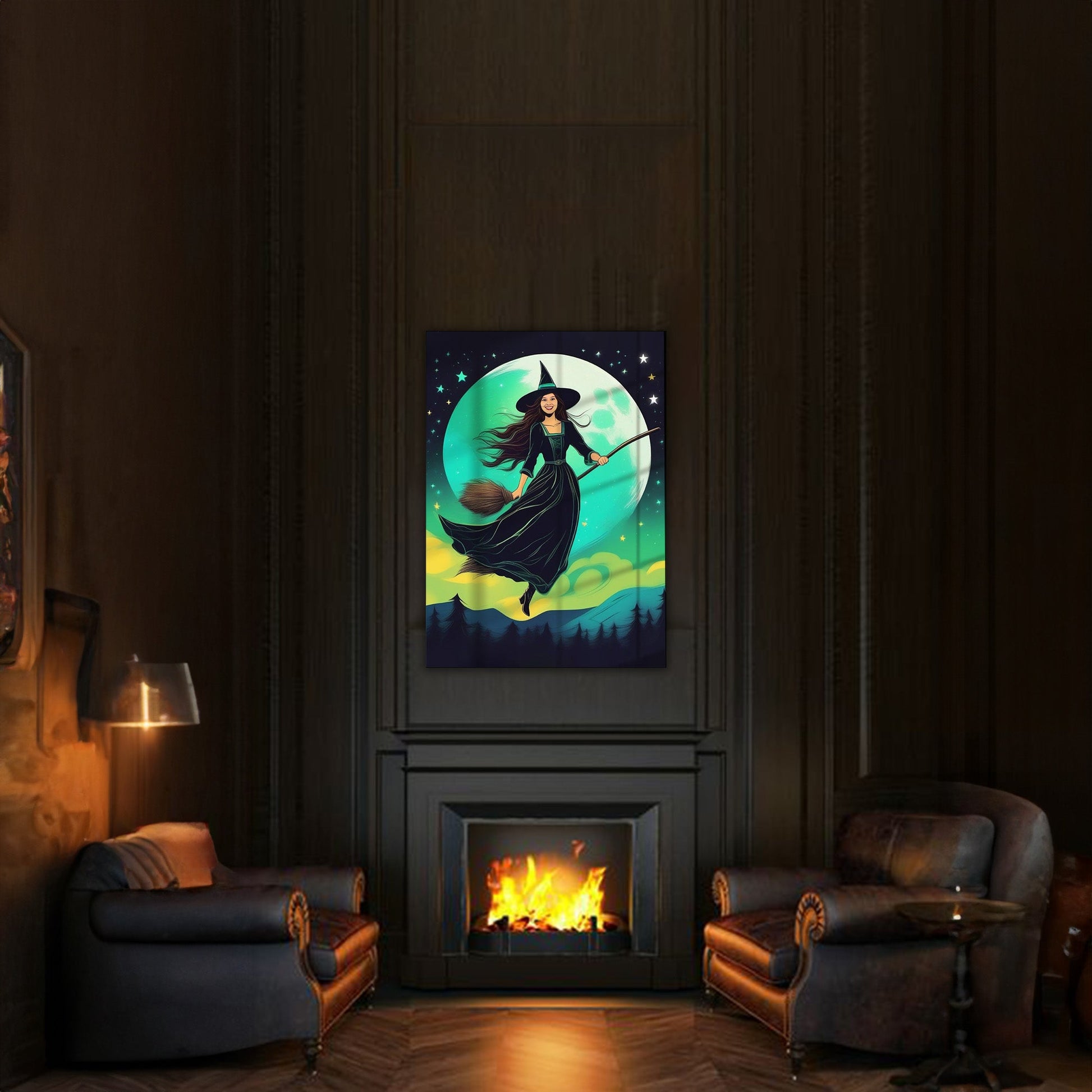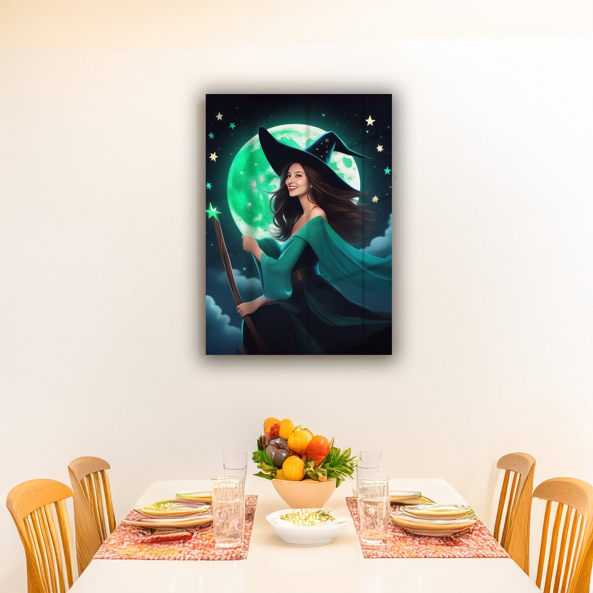 Kişiye Özel Cadı Temalı Karikatür Cam Tablo | Büyüleyici ve Şık Dekorasyon