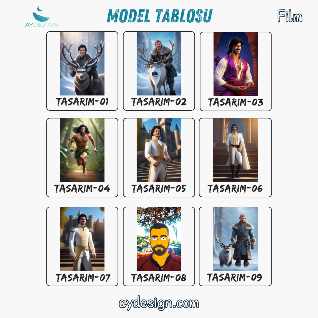 Favori film ya da çizgi film karakterlerinizi kişisel karikatürlerle cam tabloda canlandırın! Kişiye özel film ve çizgi film temalı karikatür tasarımlı cam tablolar, temperli cam üzerine yüksek teknoloji UV baskı ile üretilir. Sararma ve solma yapmayan bu dayanıklı tablolar, 25x35cm, 35x50cm, 50x70cm boyut seçenekleri ile her mekana eğlenceli ve şık bir dokunuş katar.