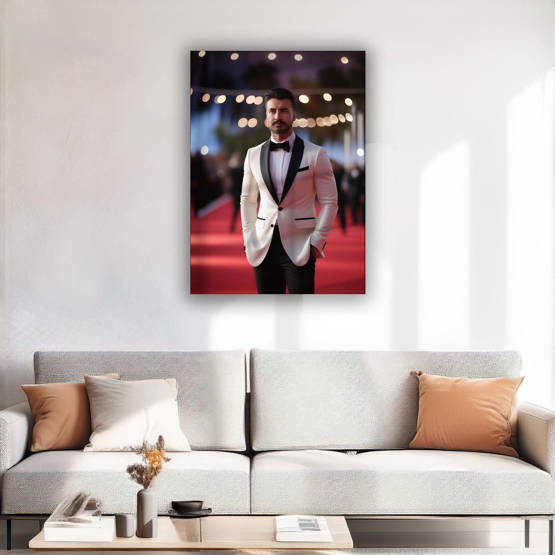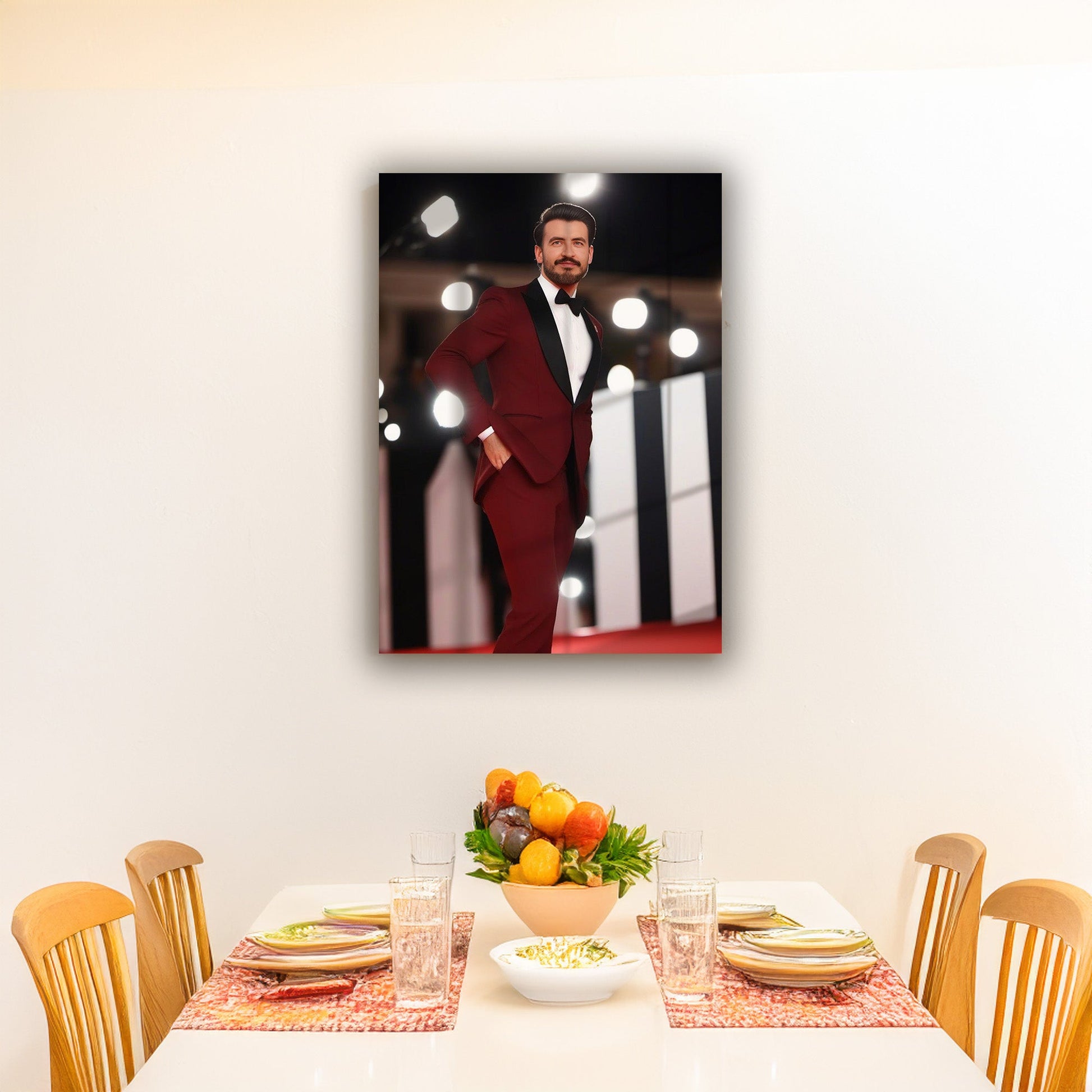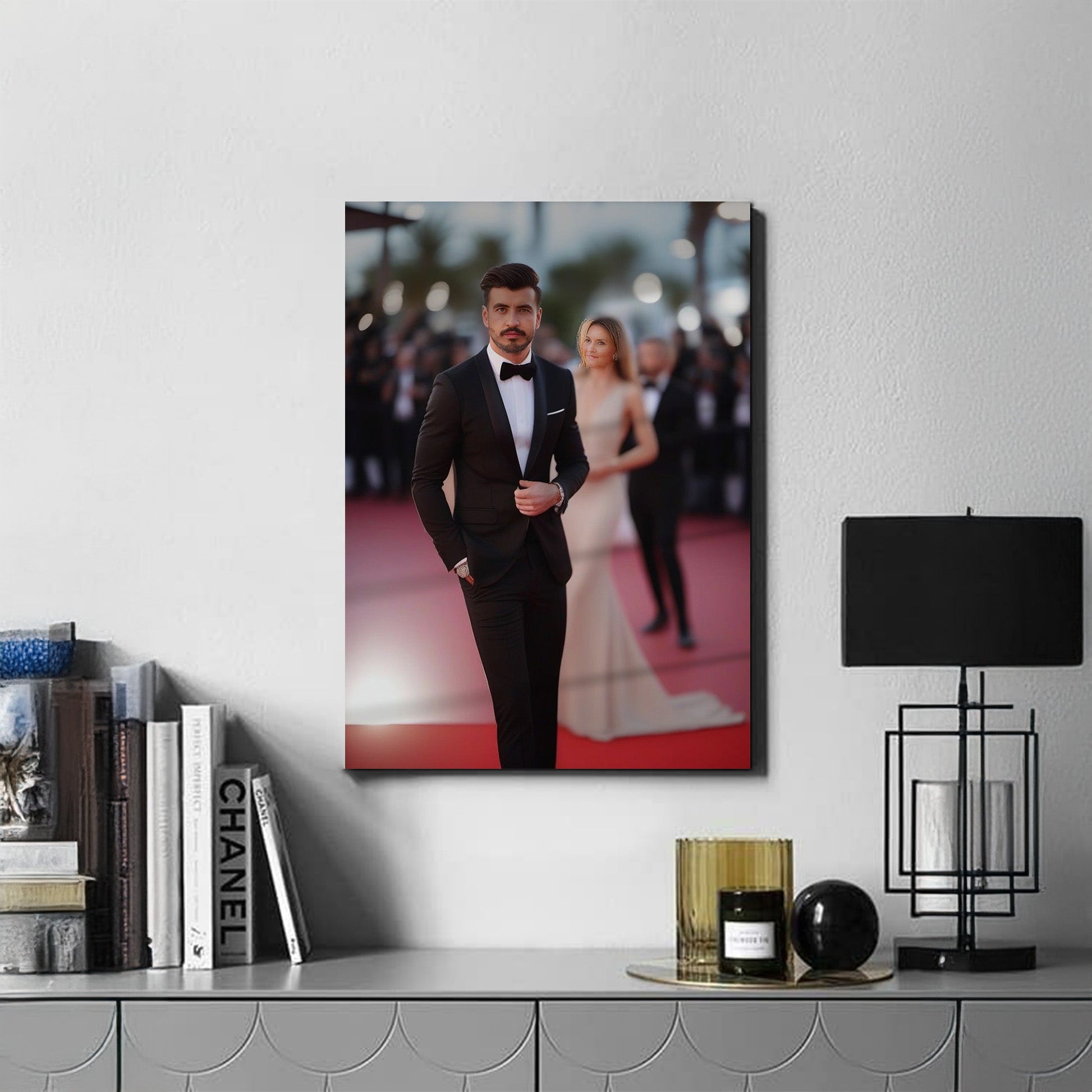 Kişiye Özel Kırmızı Halı Temalı Karikatür Cam Tablo | Şöhretin Yansıması