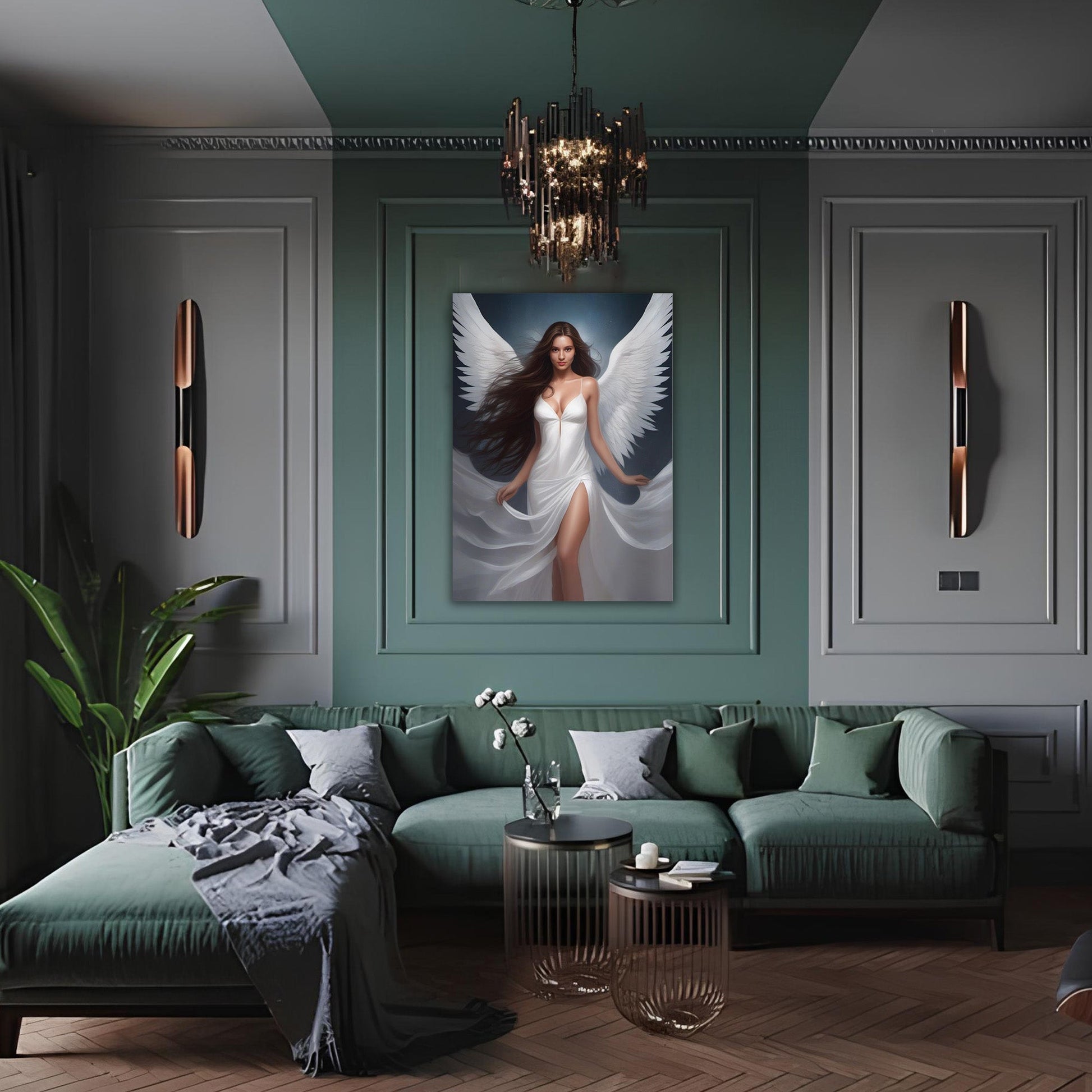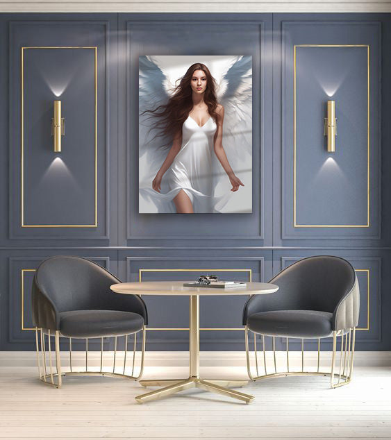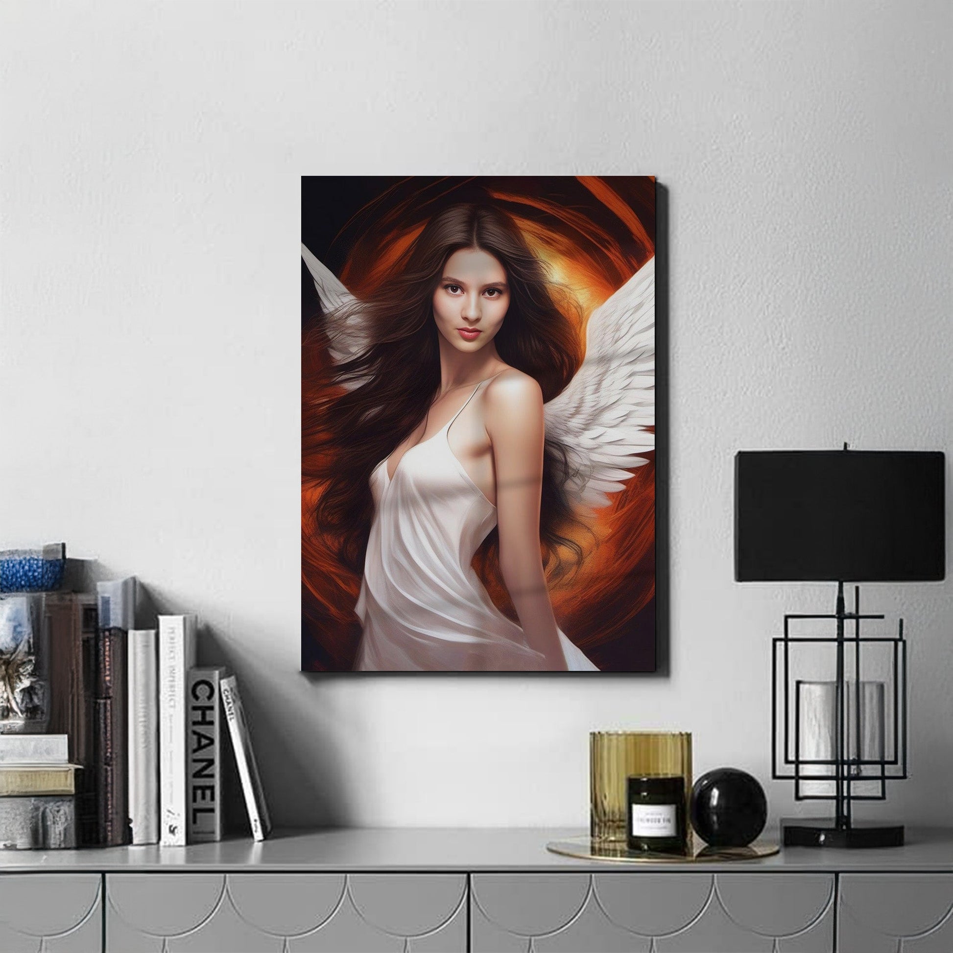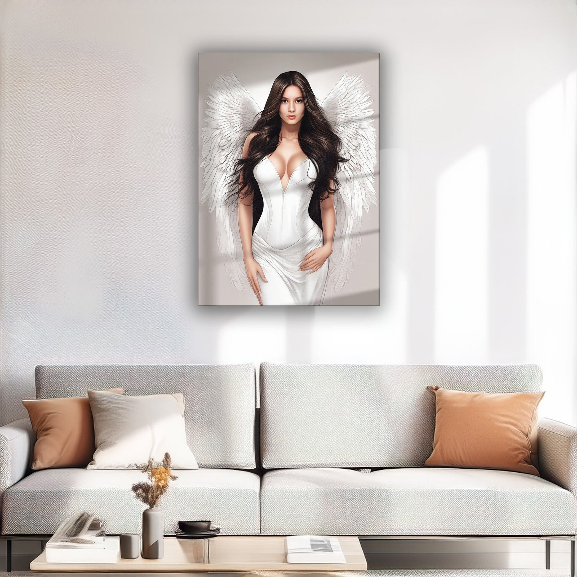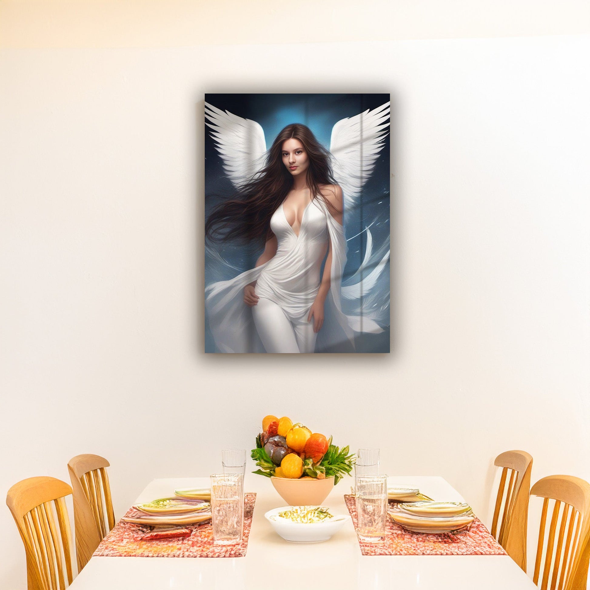 Kişiye Özel Melek Kız Temalı Karikatür Cam Tablo | Zarif ve İlahi Dekorasyon