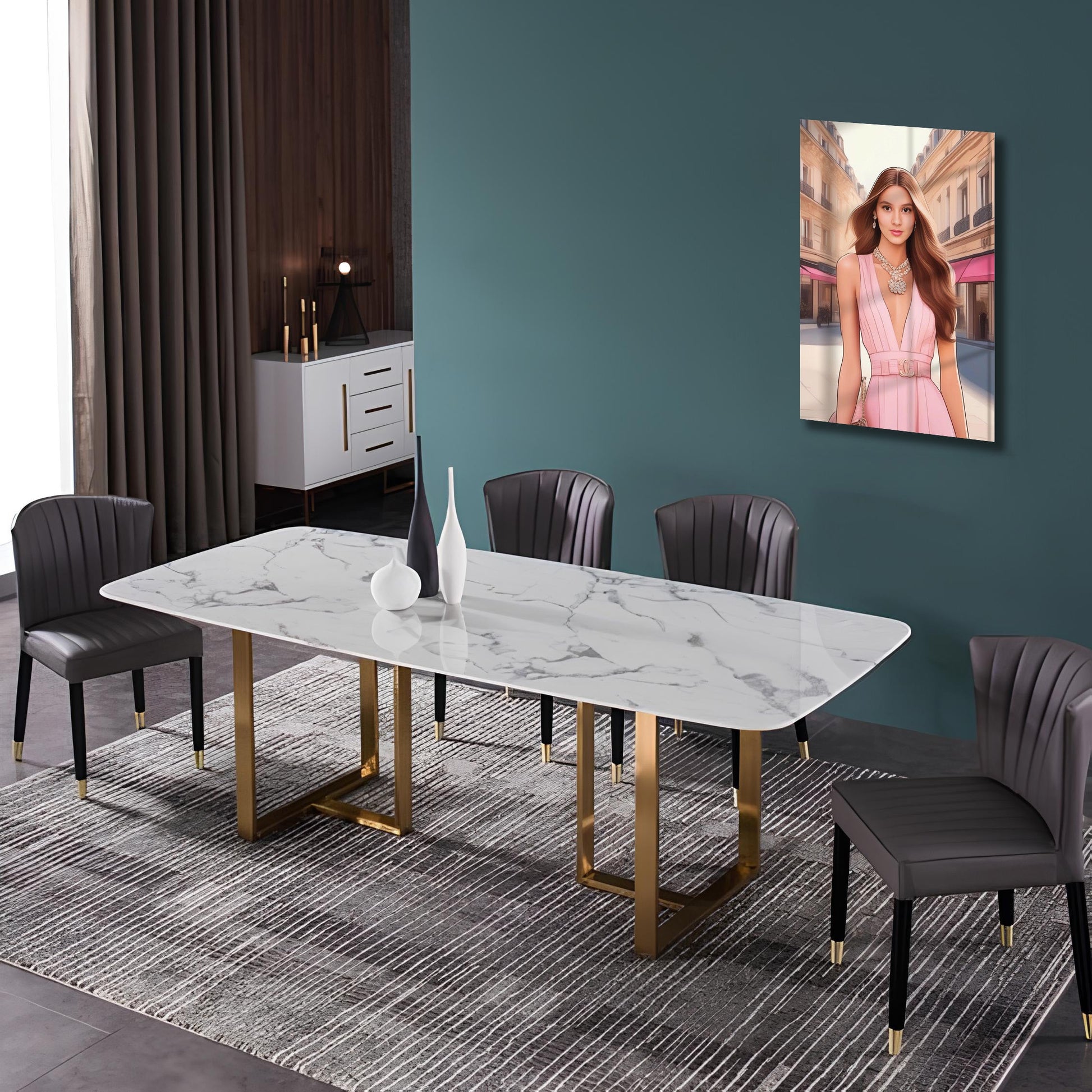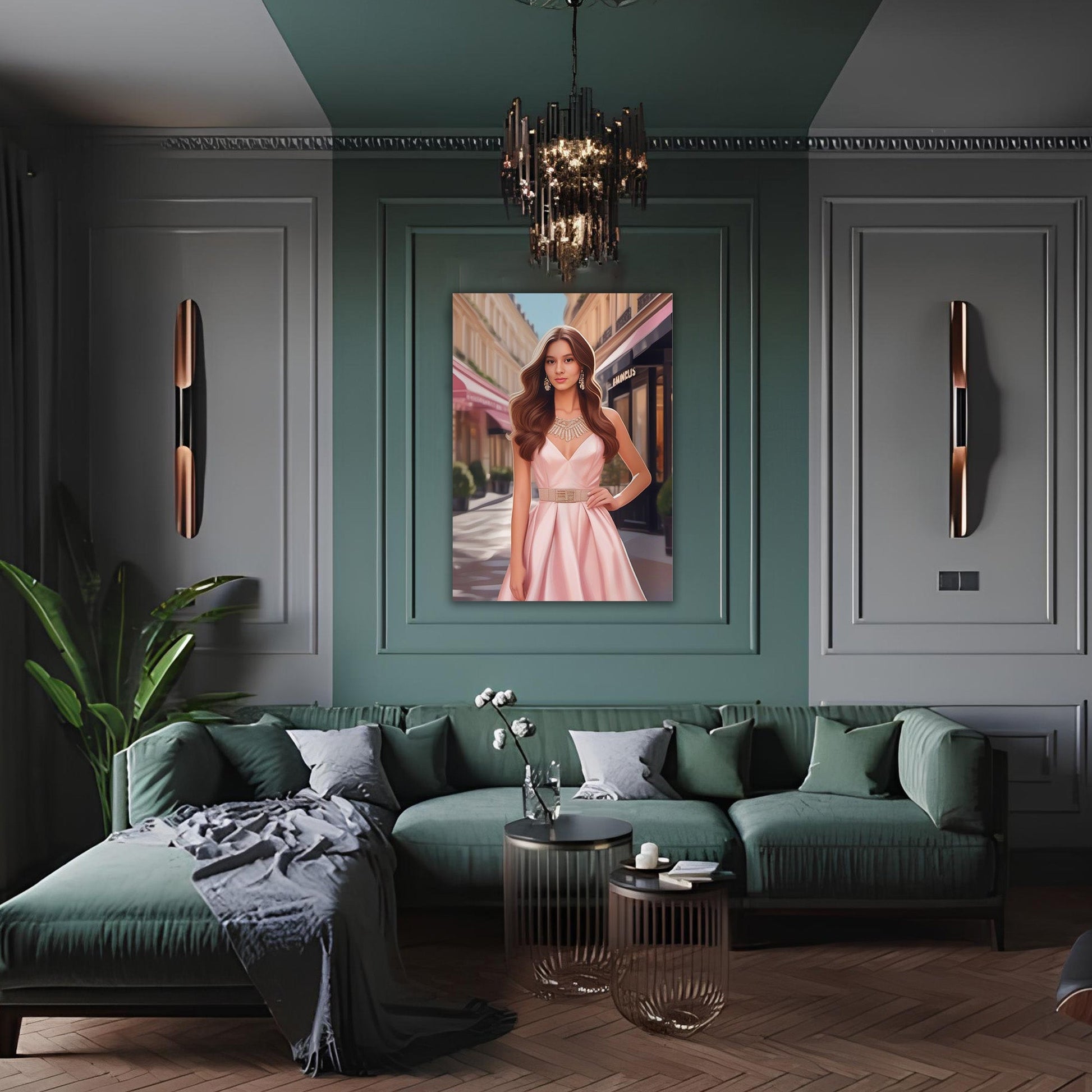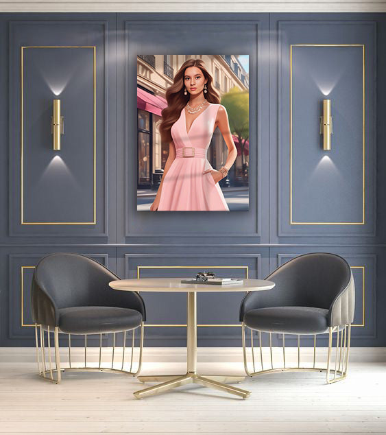 Kişiye Özel Pembe Elbiseli Kız Temalı Karikatür Cam Tablo | Zarif ve Şık Dekorasyon