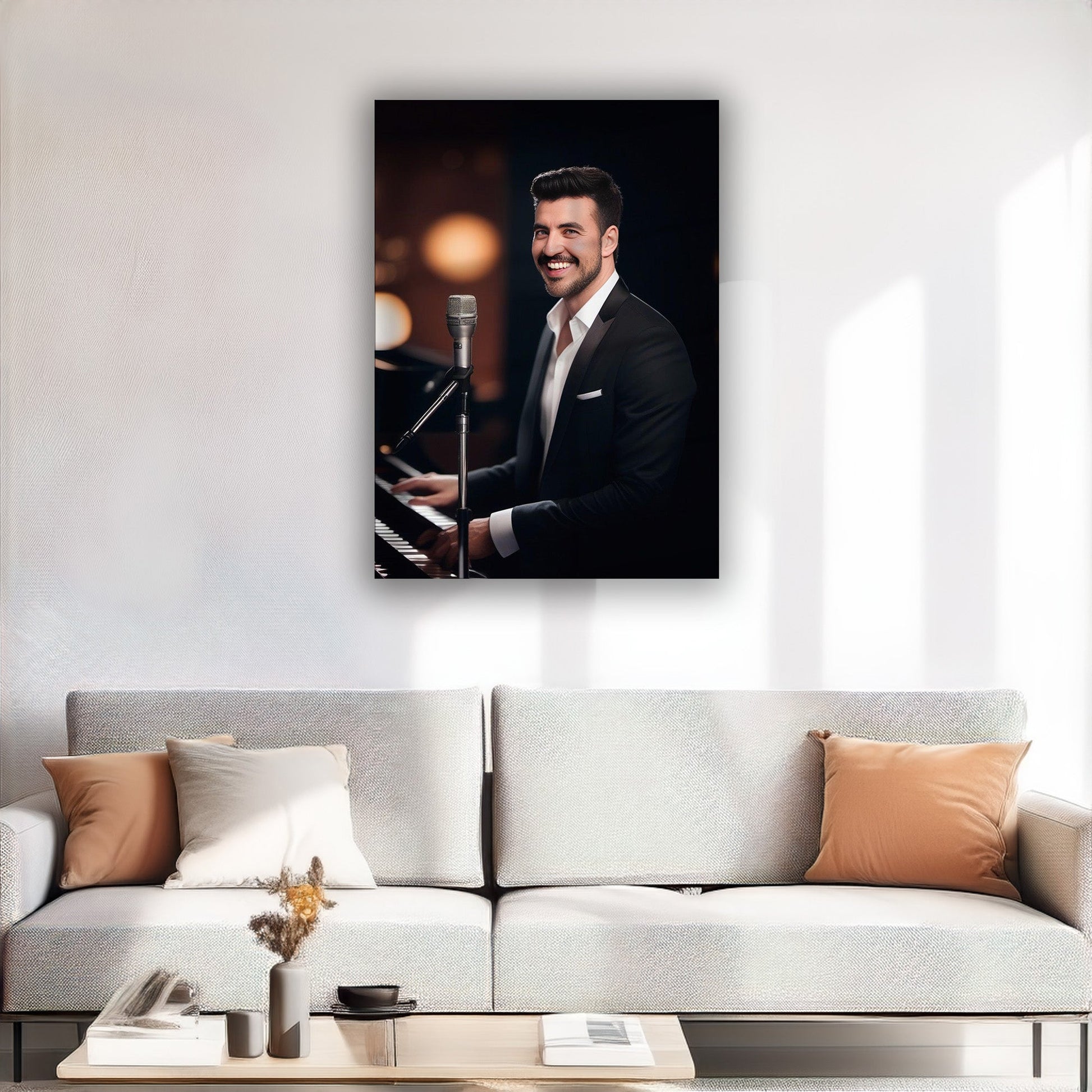 Kişiye Özel Piyano Temalı Karikatür Cam Tablo | Müzik Tutkunlarına Özel Dekor