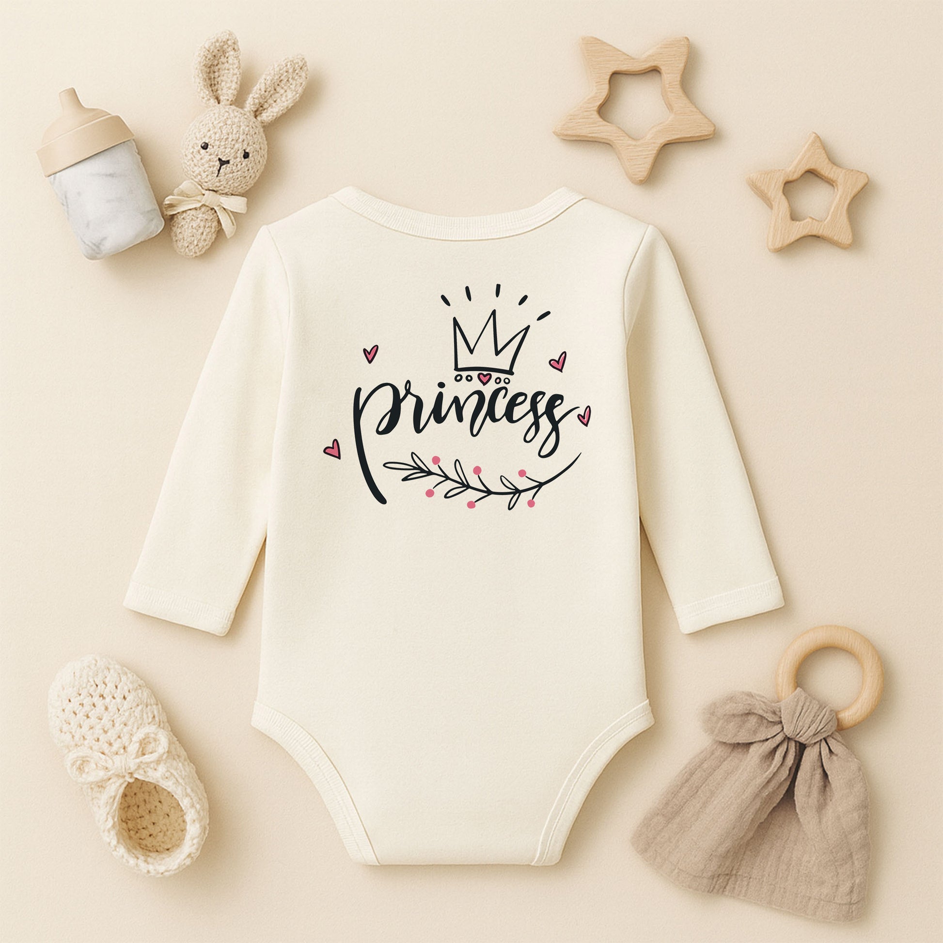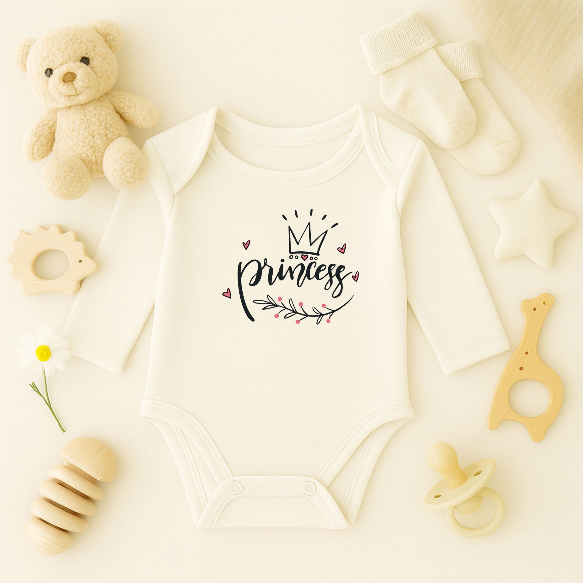 Princess Taç Tasarımlı Kişiye Özel Bebek Zıbını | 1-36 Ay, DTF Baskı, Hassas Cilt Uyumlu