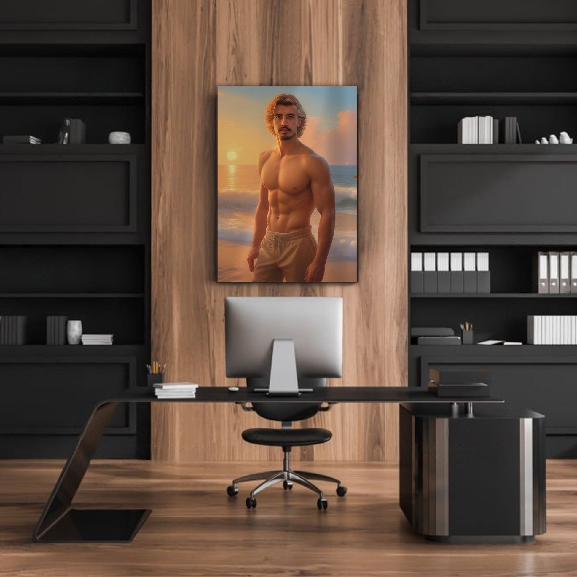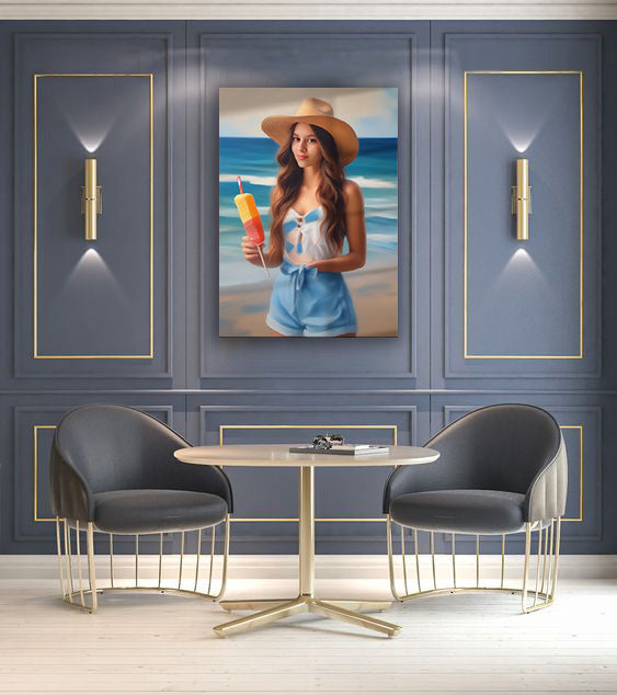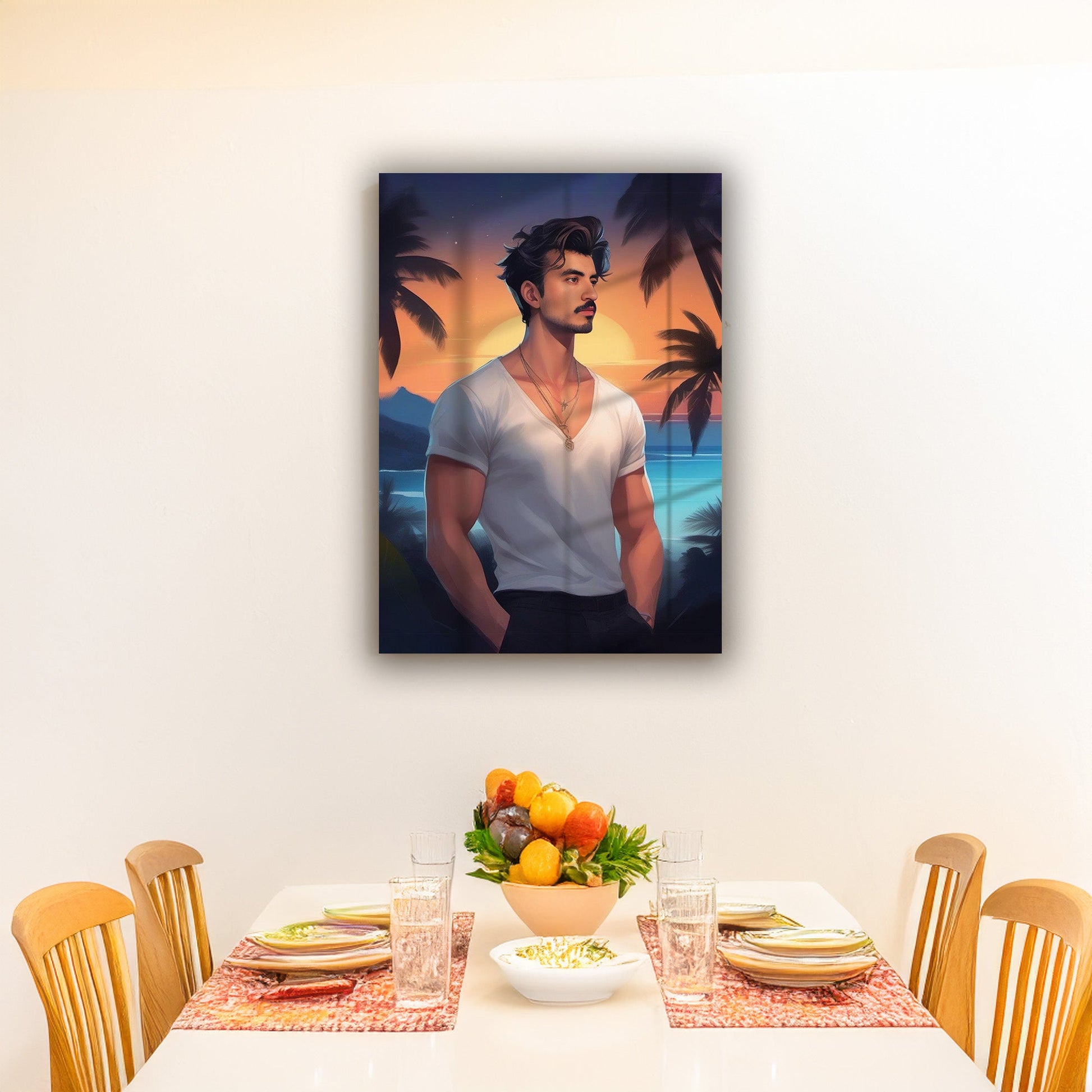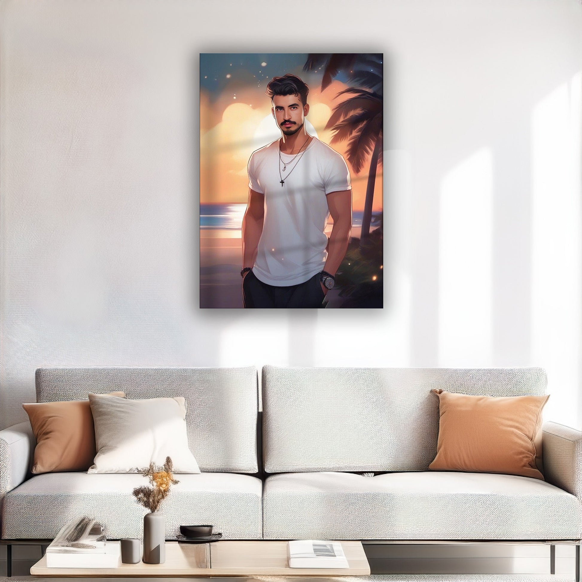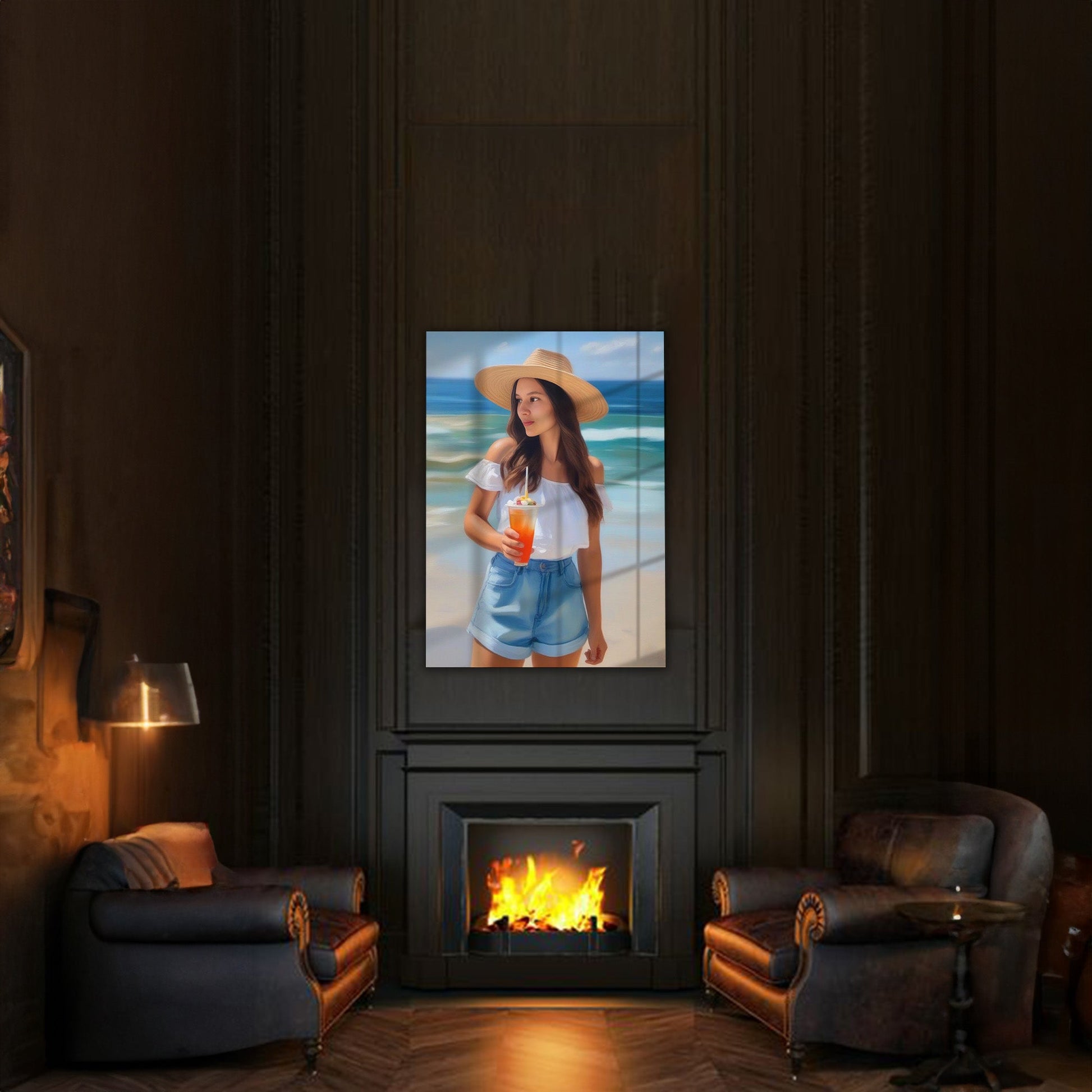 Kişiye Özel Sahil Karikatür Tasarımlı Cam Tablo | Şık ve Dayanıklı Dekor