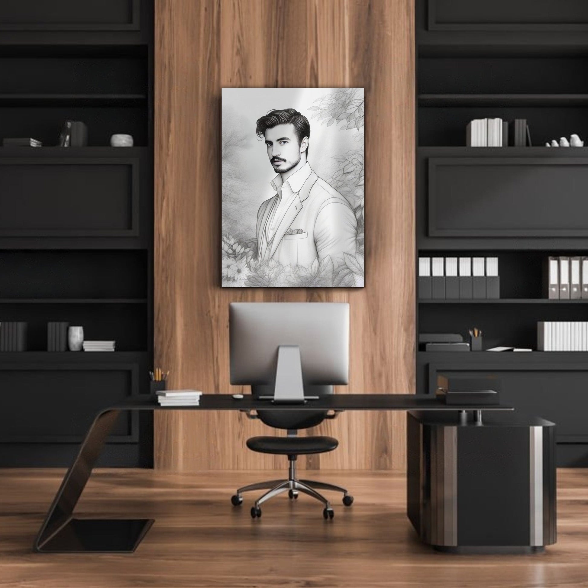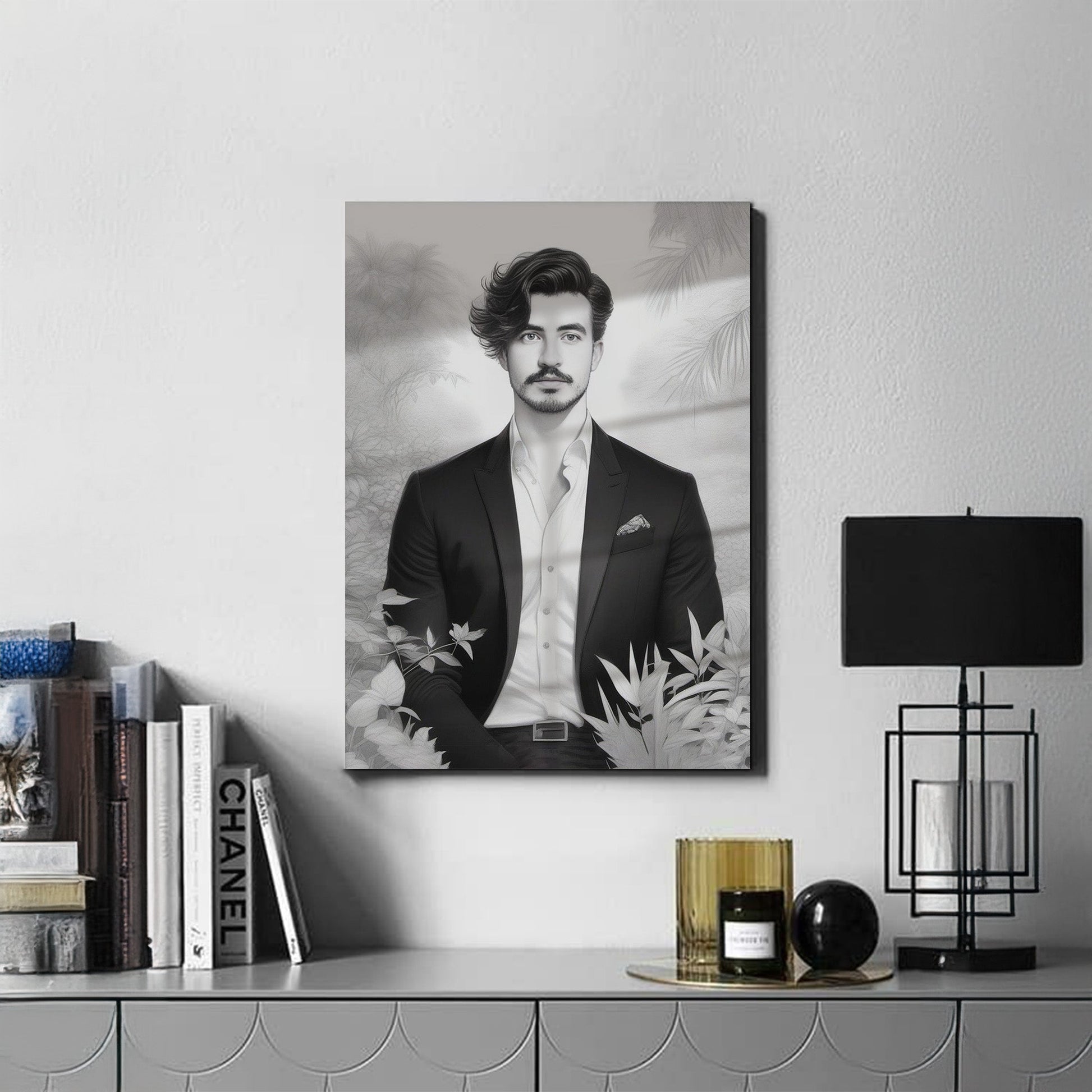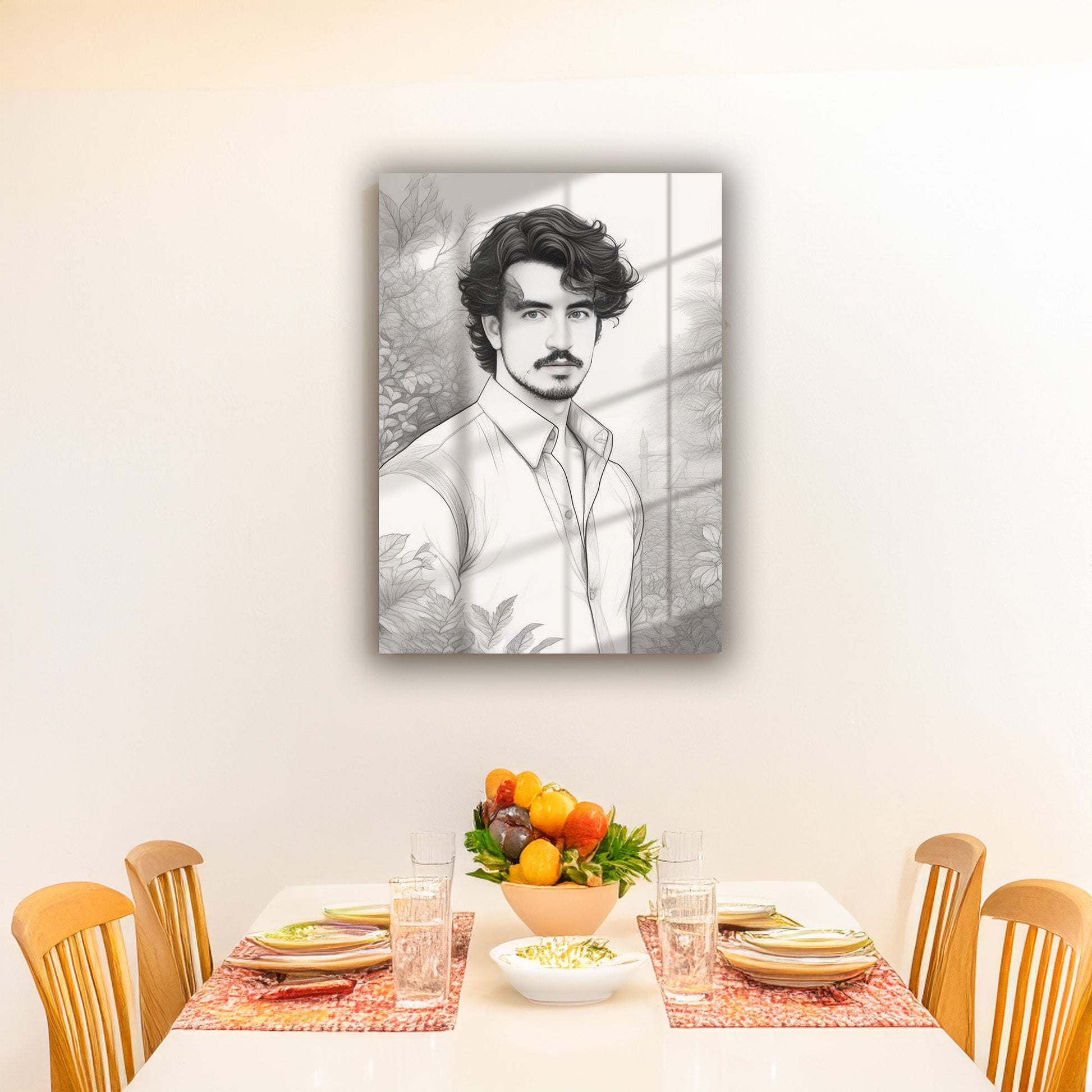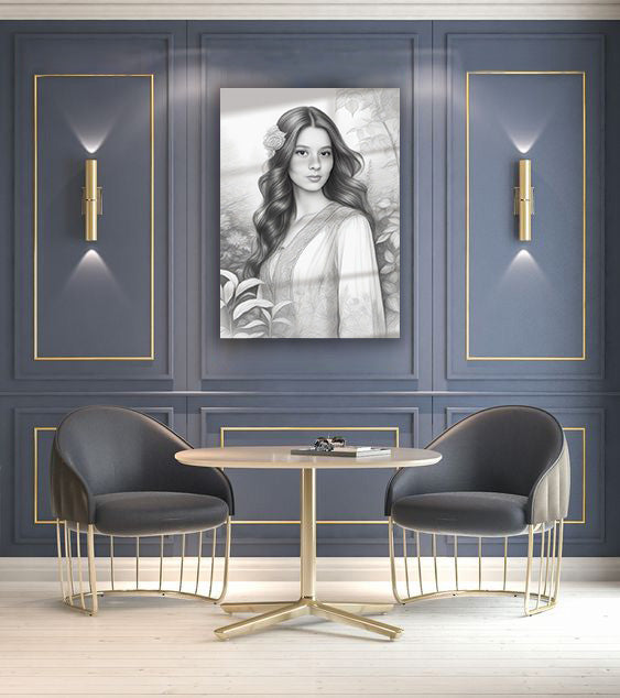 Kişiye Özel Siyah Beyaz Efektli Karikatür Cam Tablo | Modern ve Zarif Dekorasyon