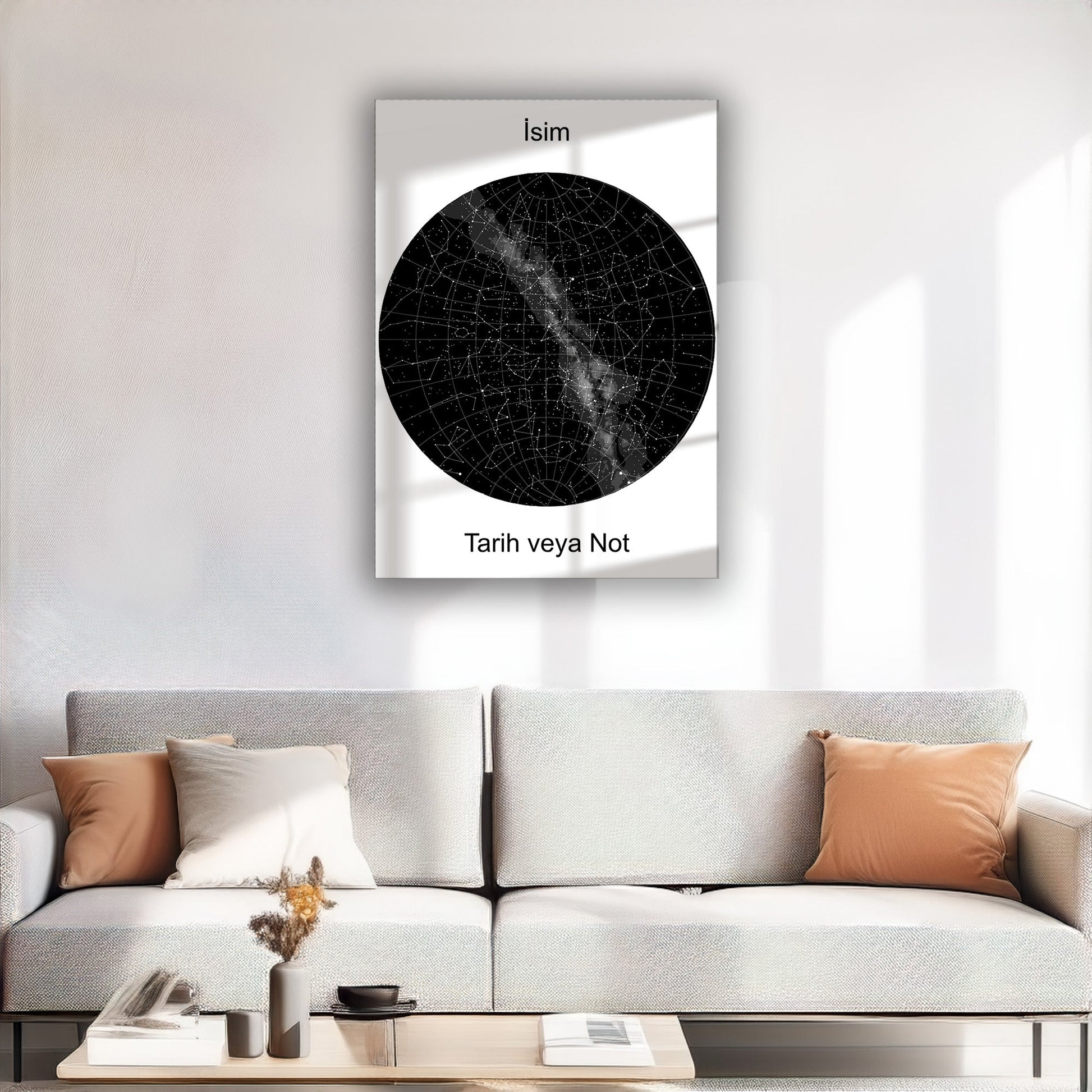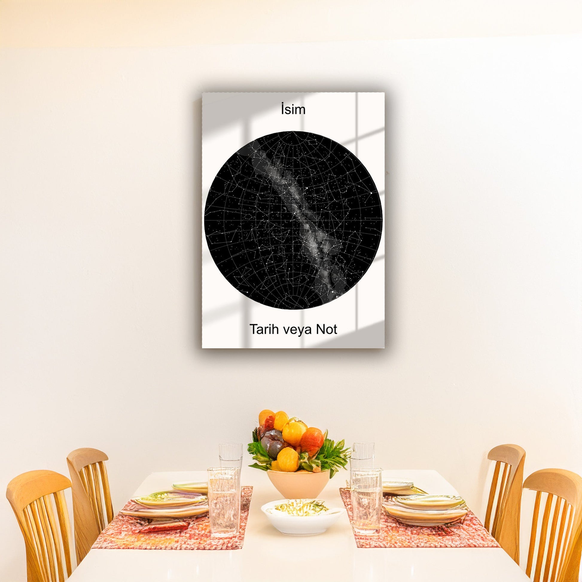 Hayatınızdaki özel anları yıldızlarla ölümsüzleştirin! Kişiye Özel Yıldız Haritası Tasarımlı Cam Tablo, seçtiğiniz tarihte yıldızların konumunu yansıtan benzersiz bir dekoratif parça sunar. Düğün, yıldönümü veya unutulmaz bir anıyı hatırlamak için mükemmel bir hediye alternatifi.