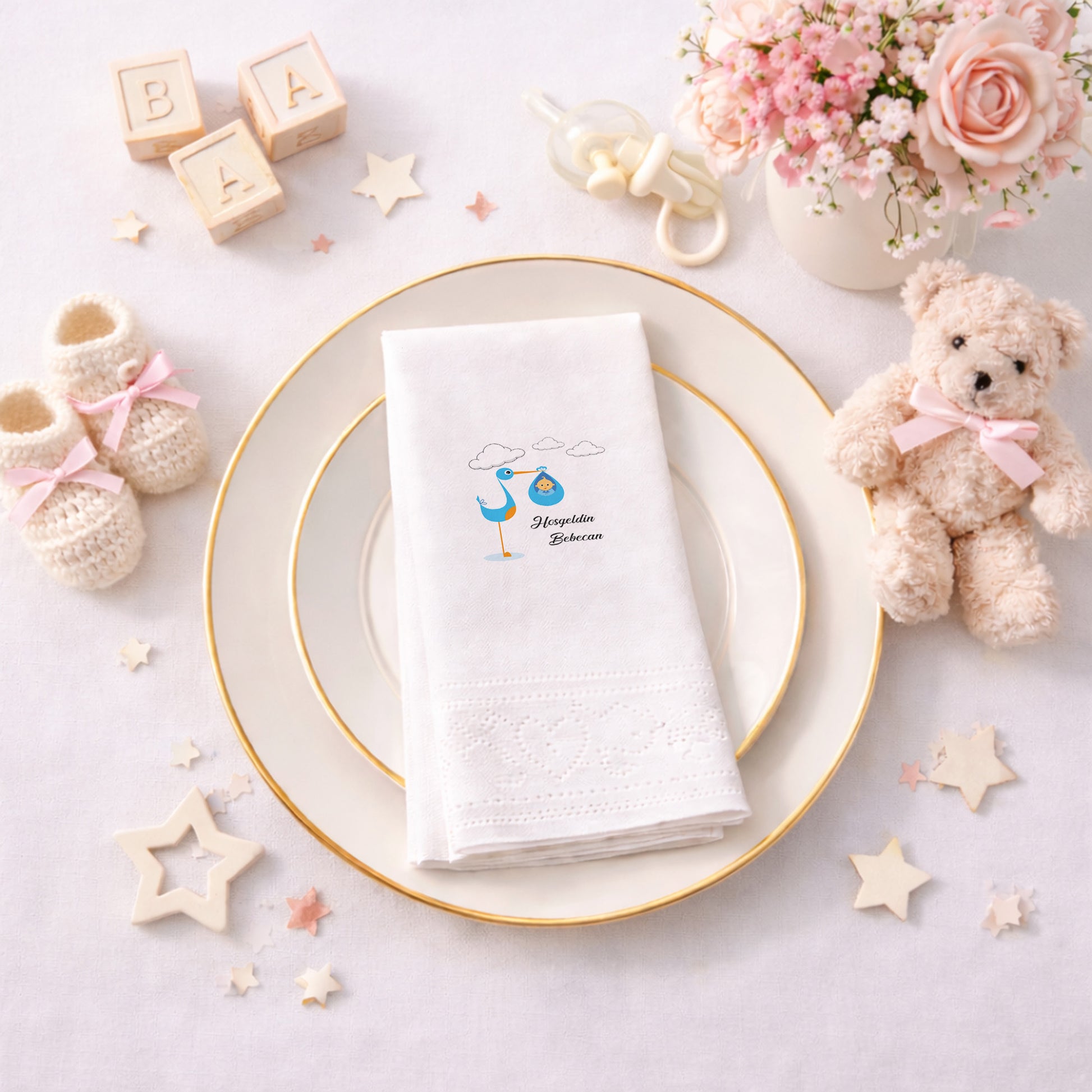 Leylek Temalı Kişiye Özel Erkek Bebek Hoş Geldin Peçetesi