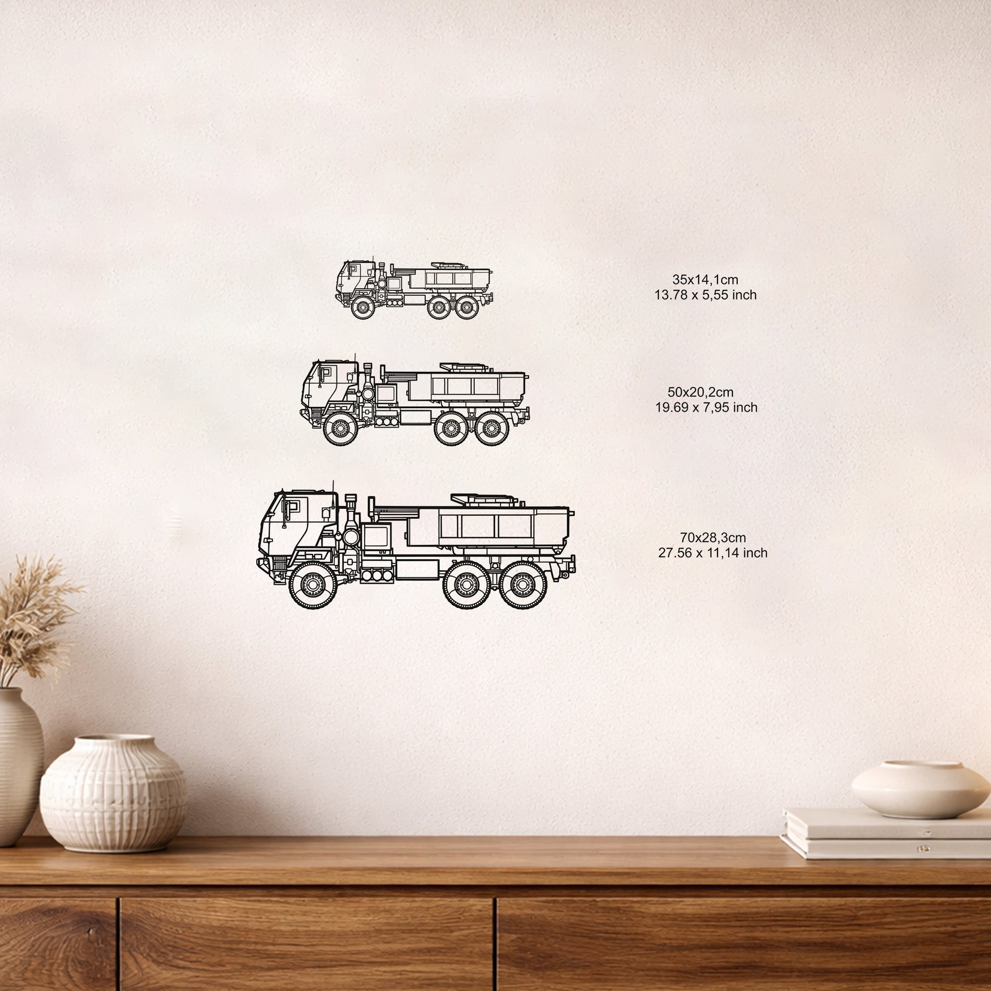 Endüstriyel tasarımın gücünü ve modern dekorasyonun estetiğini bir araya getiren M412 Askeri Kamyon metal duvar tablosu ile yaşam alanlarınıza maskülen bir dokunuş katın. Yüksek kaliteli metal materyalden üretilen ve 2 mm kalınlığıyla dayanıklılığını koruyan bu özel tasarım elektrostatik siyah fırın boya ile kaplanmıştır. Ofisinizde çalışma odanızda veya salonunuzda odak noktası oluşturacak bu tablo ince detaylı çizgileriyle dikkat çeker. Kolay asma aparatı sayesinde duvara monte edildiğinde derinlik algısı yaratan ürün hem modern hem de klasik iç mekan tasarımlarıyla kusursuz uyum sağlar. Dayanıklı yapısı sayesinde uzun yıllar boyunca rengini ve formunu koruyan bu sanatsal çalışma otomotiv ve askeri araç tutkunları için benzersiz bir hediye seçeneğidir. Minimalist çizgilerle hazırlanan kamyon figürü duvarınıza modern bir sergi havası kazandırırken metalin asaletini her bakışta hissettirir. Ürün paketlemesi güvenli taşıma standartlarına uygun şekilde yapılarak tarafınıza ulaştırılmaktadır.
