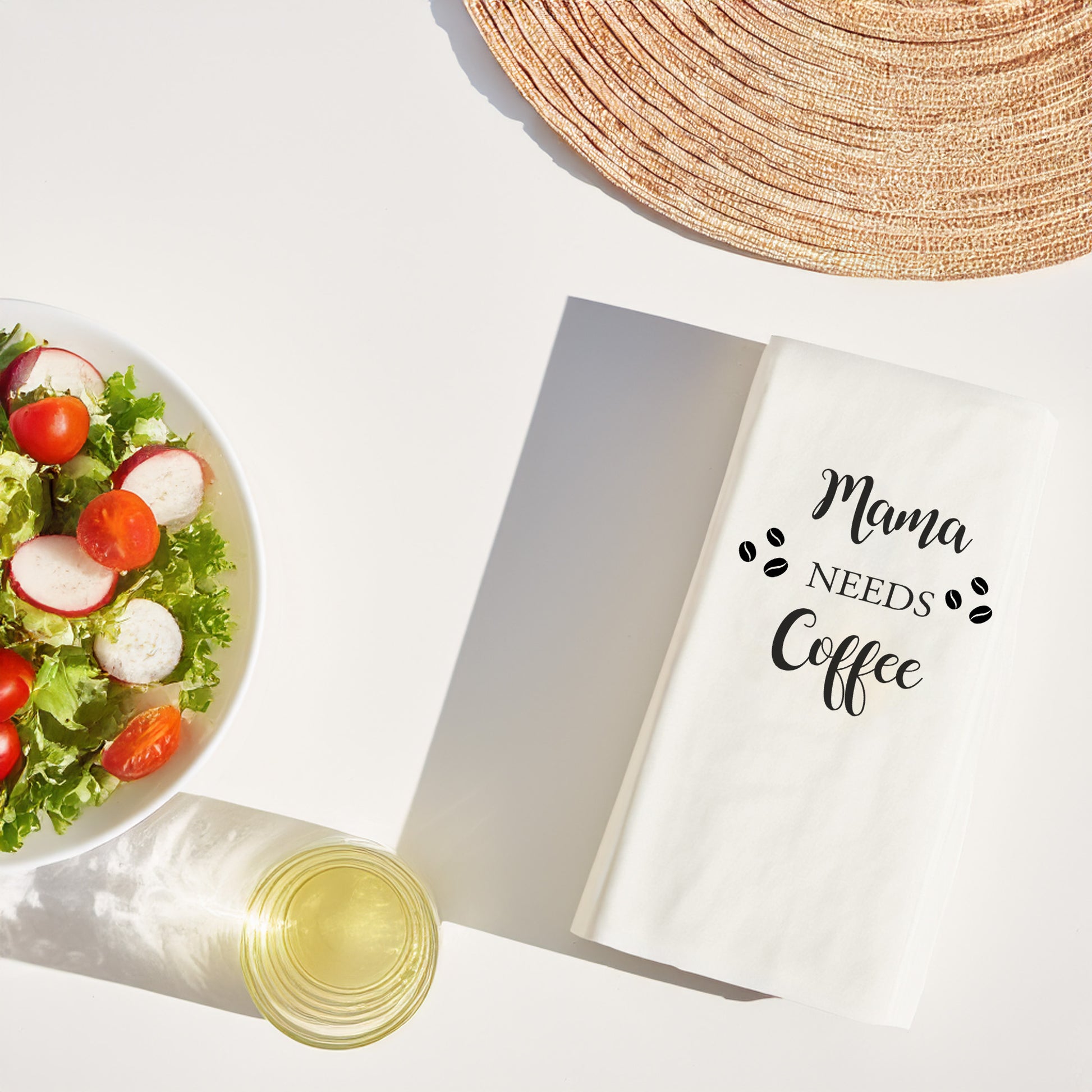 Kahve olmadan güne başlayamayan tüm annelere özel eğlenceli ve modern tasarımıyla Mama Needs Coffee Yazılı Baskılı Peçete, sofralara hem enerji hem espri katıyor.