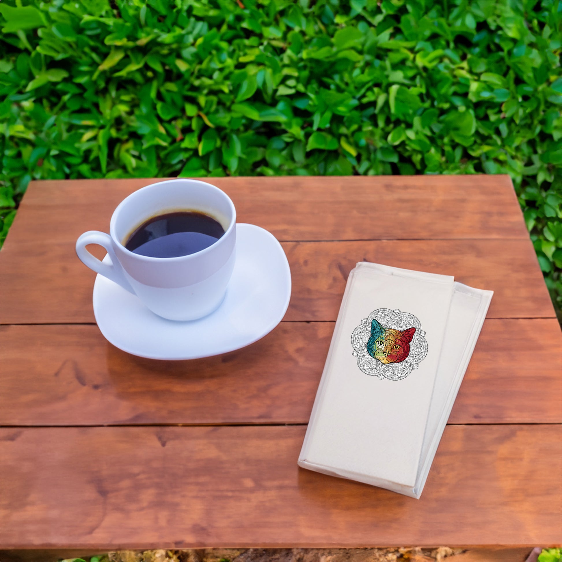 Renkli mandala detaylarıyla tasarlanmış Kedi Figürlü Baskılı Peçete, sofralarınıza hem şıklık hem de ruh katıyor. Sanatsal bir görünüm sunan bu özel peçete, mandalanın simetrik enerjisiyle modern çizgileri buluşturur.