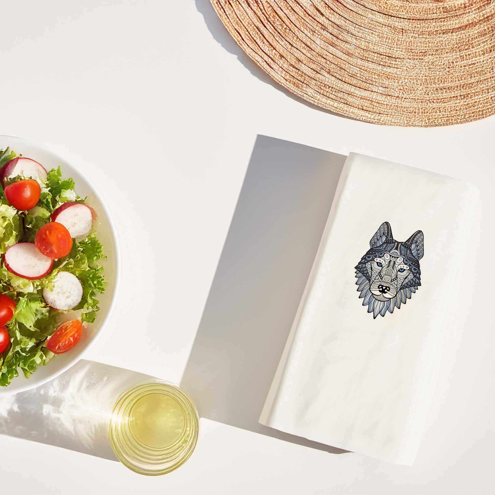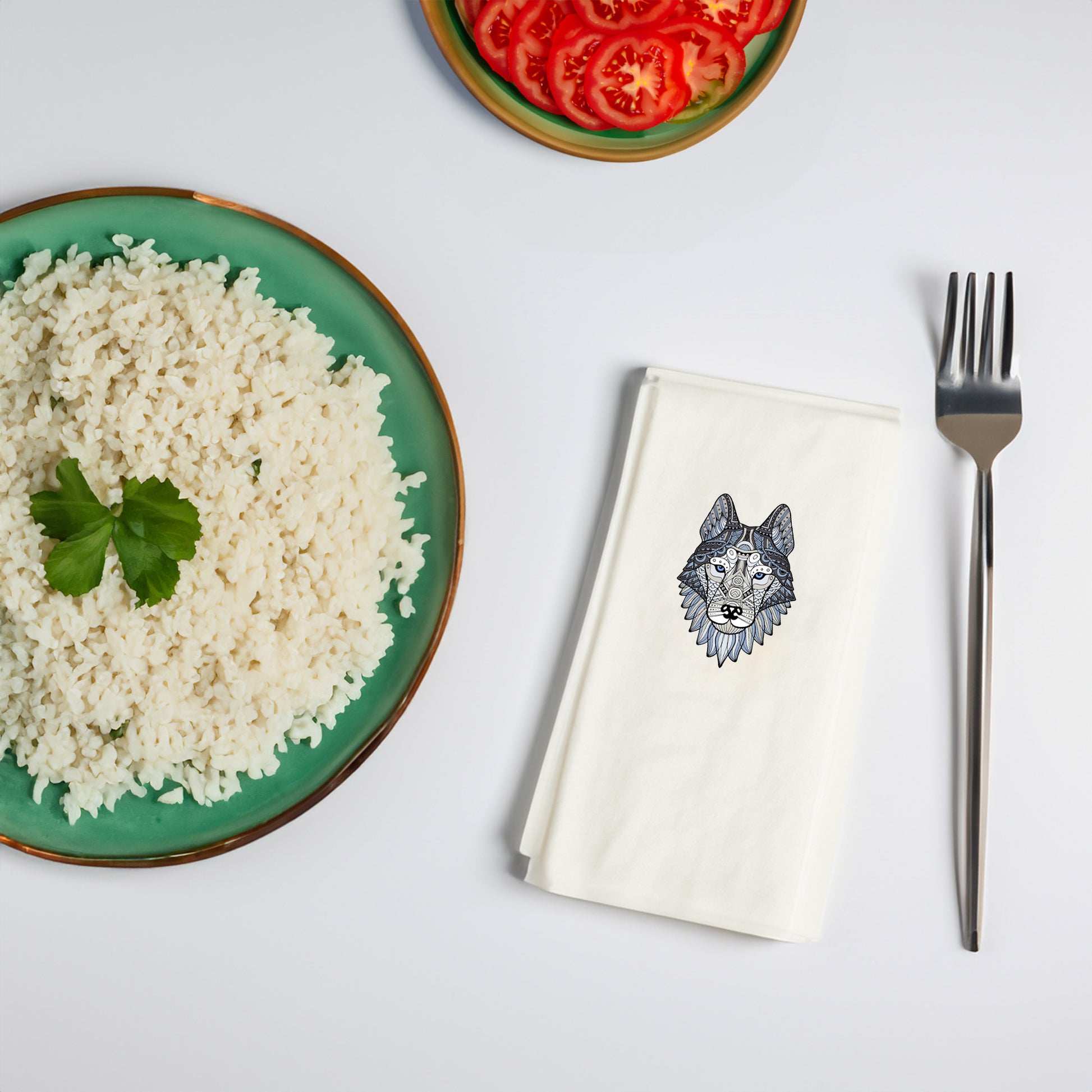 Doğal, sanatsal ve modern sofralar için tasarlanan Mandala Kurt Desenli Baskılı Peçete, misafir ağırlarken masanıza karakter katan özel bir dekor detayıdır.