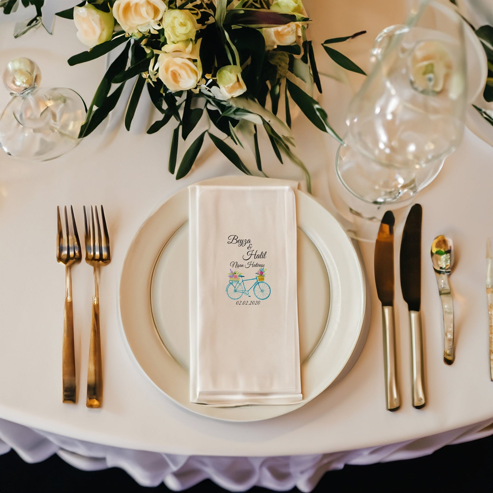Eşsiz bir dokunuşla özel günlerinizi renklendirin! Mavi Bisikletli 33x33cm Çift Katlı Garson Katlama Düğün ve Özel Gün Peçeteleri ile her anınızı unutulmaz kılın.