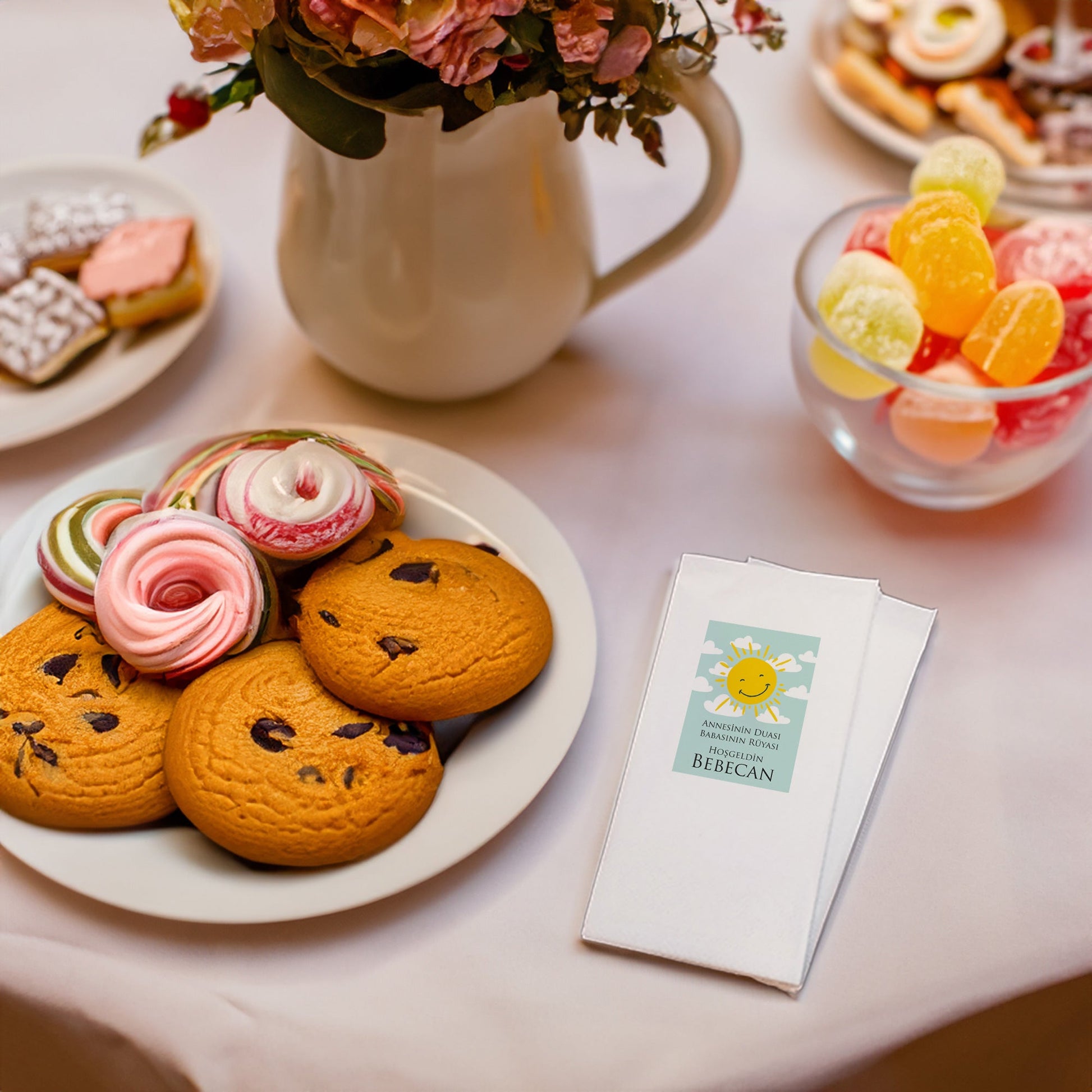 Her anınıza anlam katan ve duygularınızı yansıtan özel bir dokunuş: "Mavi Gökyüzü ve Güneş Temalı" Baskılı Peçeteler! Doğum günü, Babyshower,Diş Buğdayı ve Sünnet Organizasyonlarınıza daha anlamlı hale getirecek ve sevdiklerinizle paylaşacağınız samimi anları renklendirecek.