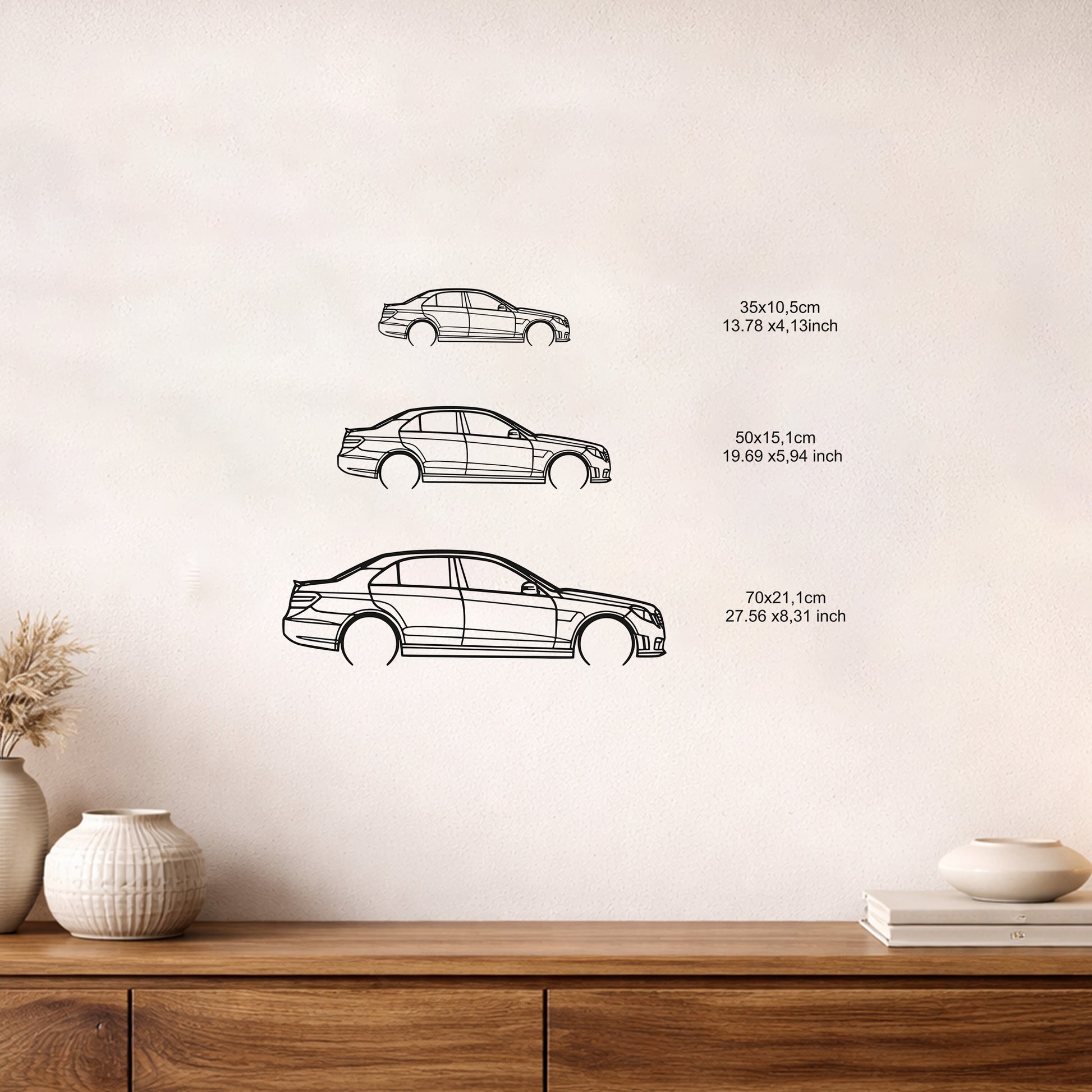 Mercedes E63 AMG modelinin kaslı ve heybetli duruşunu duvarlarınıza taşıyan bu metal tablo performans tutkunlarının favorisi olacak. 2 mm kalınlığında dayanıklı çelikten üretilen tasarım elektrostatik siyah fırın boya ile kusursuz bir görünüme ulaştırılmıştır. E Serisi'nin o ağırbaşlı ama sportif silüeti metalin asil dokusuyla birleşerek ofisinizde veya evinizde prestijli bir atmosfer yaratır. Ürünün detaylı kesimleri aracın karakterini en iyi şekilde yansıtır. Duvara monte edildiğinde arkasında oluşan hafif boşluk sayesinde büyüleyici gölge oyunları sergiler. Metalin dayanıklılığı sayesinde nesiller boyu saklanabilecek bir sanat eseridir. Mercedes AMG serisine hayran olan herkes için harika bir dekorasyon parçasıdır. Montaj aparatları ile birlikte gönderilen tablo tek bir çiviyle kolayca asılabilir. Paslanmaya ve solmaya karşı dirençli olan bu ürün her türlü iç mekan dekorasyonuyla uyum içindedir. Bakımı zahmetsizdir ve nemli bezle silinerek kolayca temizlenir. Duvarlarınıza dinamizm ve karakter katmak istiyorsanız E63 AMG metal silüeti en doğru tercih olacaktır. Bu özel tasarım otomobil sevdanızı yaşam alanınızın bir parçası haline getirir.