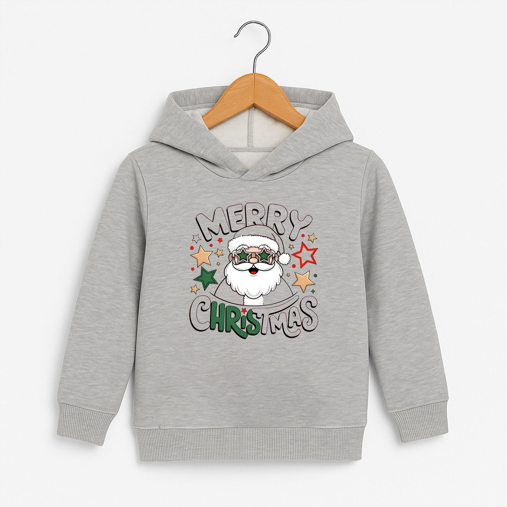 Yıldız gözlü Noel Baba figürüyle tasarlanmış, Merry Christmas yazılı eğlenceli yılbaşı sweatshirt.