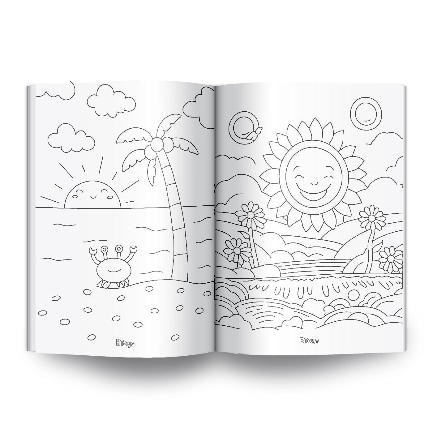 Mevsimlerin büyüleyici değişimlerini keşfedin! Mevsimler boyama kitabı, ilkbahar, yaz, sonbahar ve kış temalarını içerir.