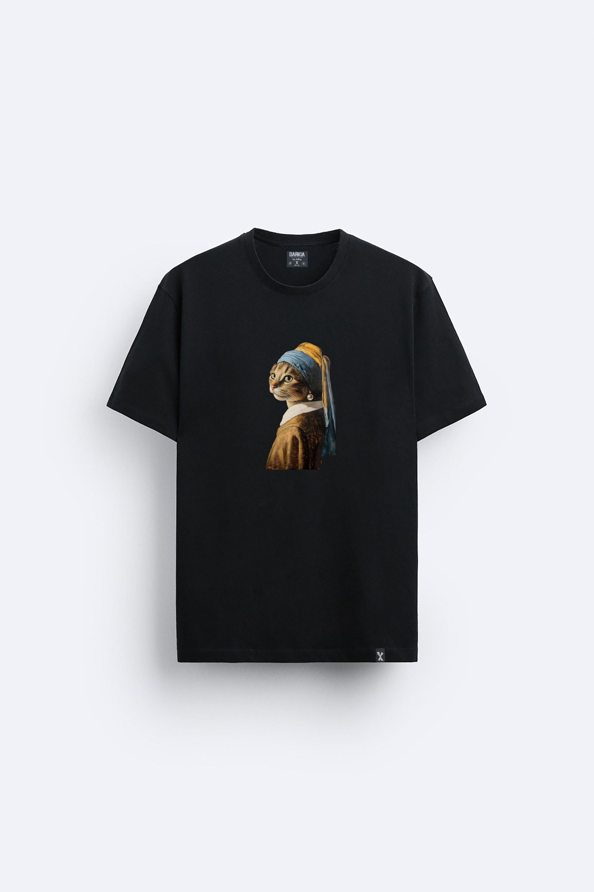 İnci küpeli kedi baskılı regular tişört