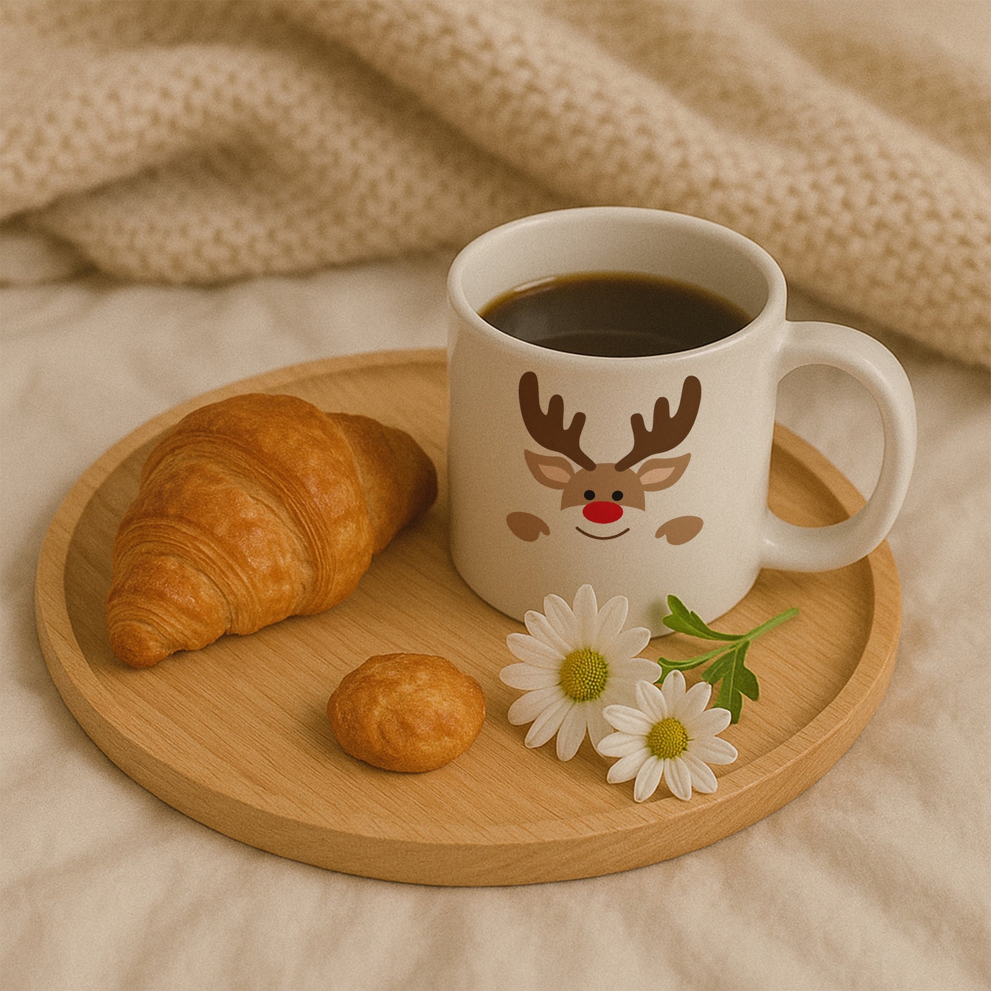Kaliteli seramik gövde üzerine uygulanan canlı baskı, uzun süreli kullanım ve estetik bütünlük sağlar. Yılbaşı kupa koleksiyonlarında sade şıklığı temsil eden tamamlayıcı bir parçadır.