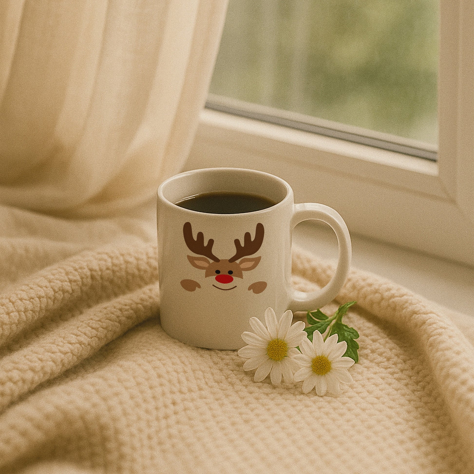 Bu tasarım kupa, yılbaşı temasını minimal bir estetikle sunar. Net hatlara sahip geyik figürü, sade renk paleti ve dengeli kompozisyonu sayesinde zamansız bir görünüm oluşturur.