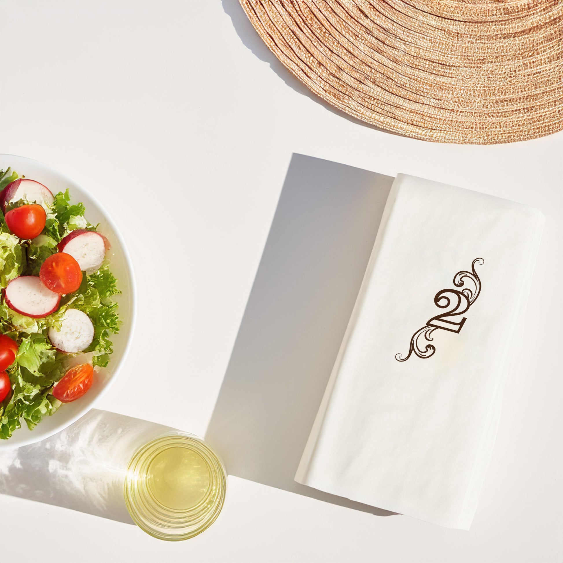 Minimal detaylarla hazırlanmış Monogram “2” Desenli Baskılı Peçete, zarif masa sunumlarının favorisi olmaya aday. Özel baskılı tasarımı sayesinde doğum günleri, butik davetler, konsept partiler ve modern masa dekorasyonlarında hem estetik hem de şık bir dokunuş sağlar.