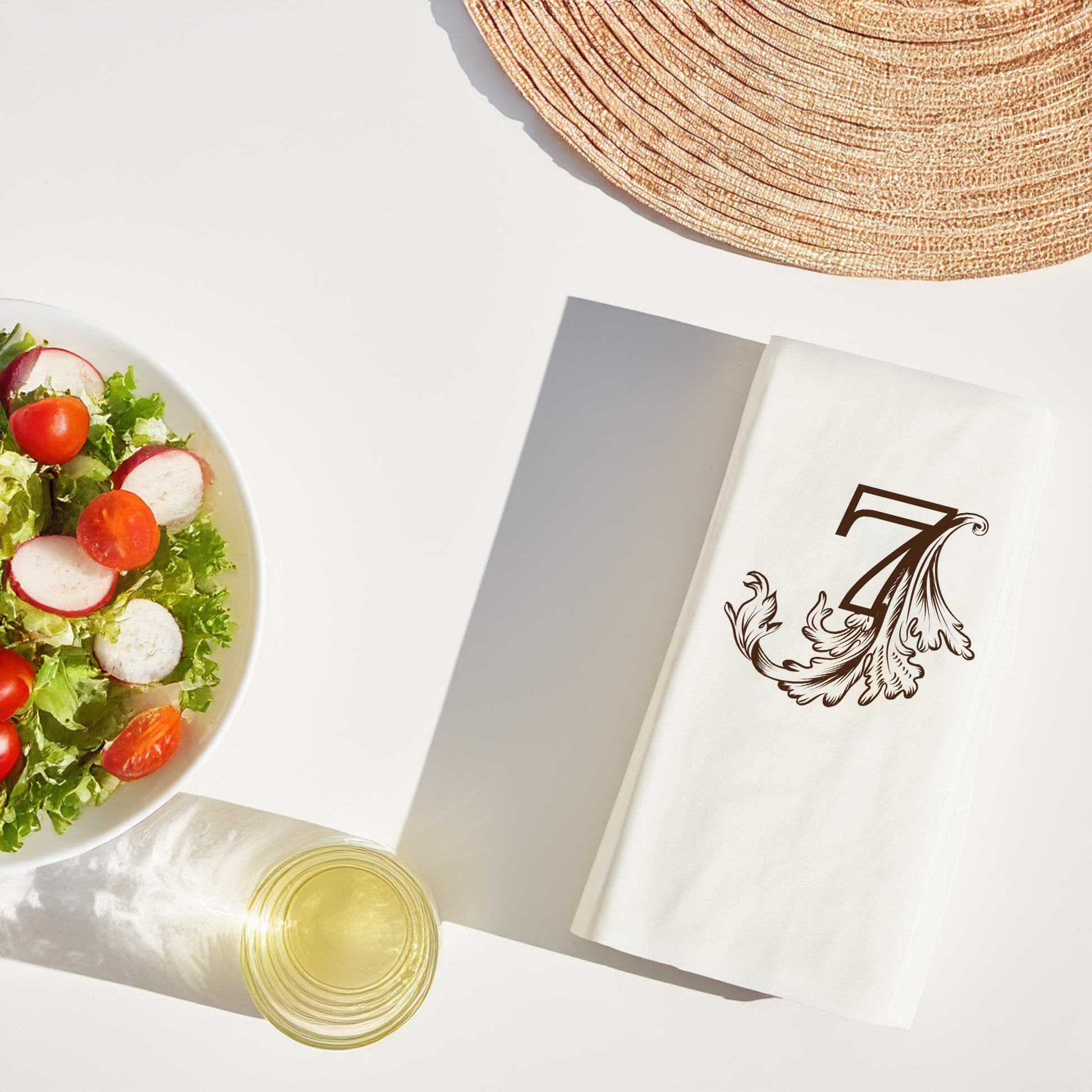 Sofralara modern bir kimlik ve zarif bir detay katmak isteyenler için tasarlanan Monogram “7” Desenli Baskılı Peçete, minimal çizgilere sahip özel baskısıyla dikkat çeker. Konsept davetler, doğum günü kutlamaları, butik etkinlikler ve şık sunumlar için ideal bir tamamlayıcıdır.