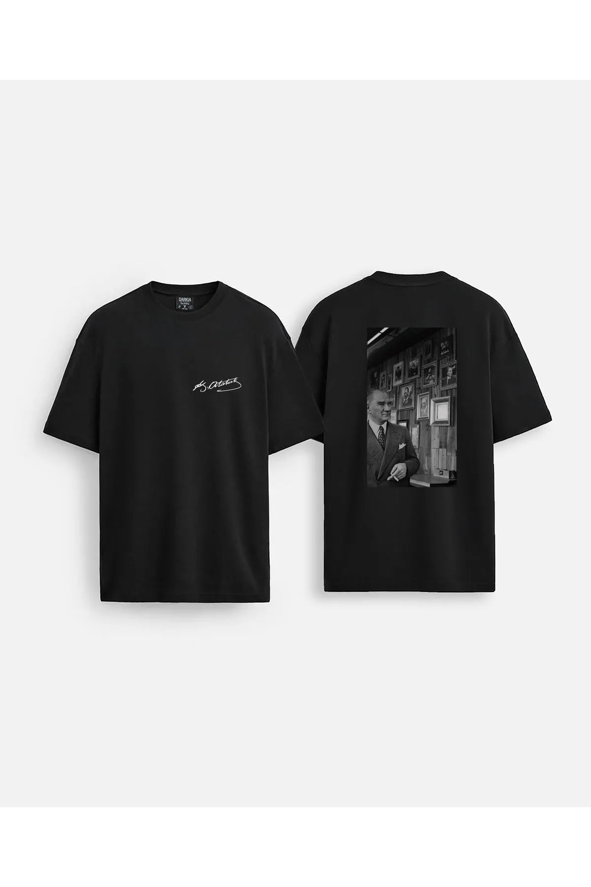 Mustafa Kemal Atatürk Baskılı Oversize Siyah Tişört