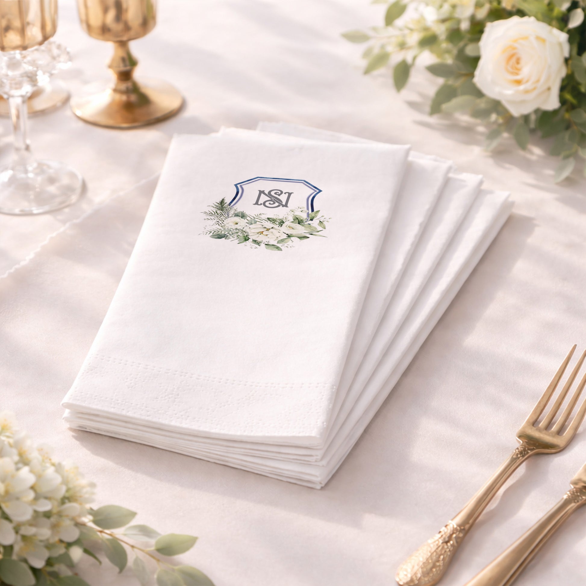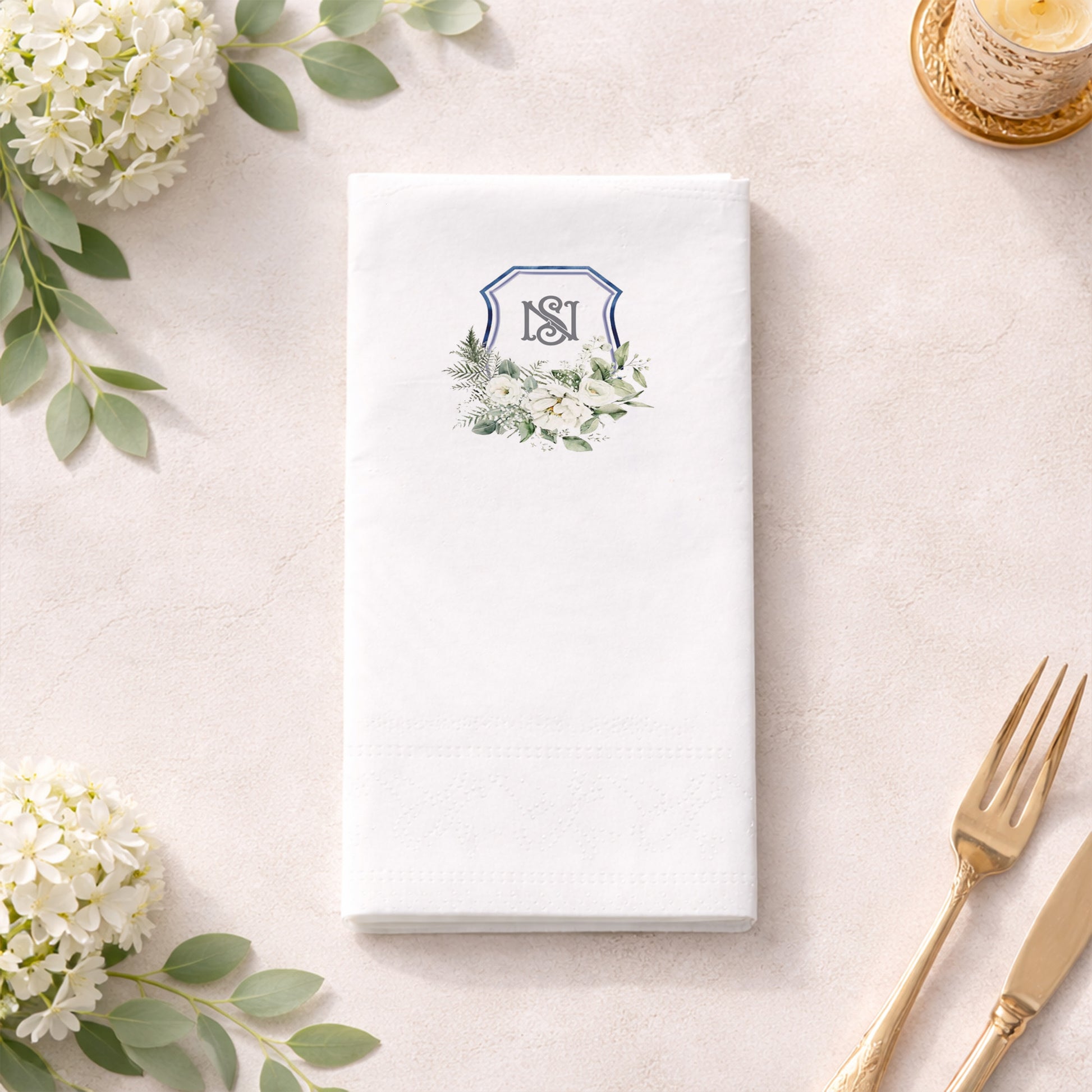 NS Monogram Çiçekli Düğün ve Nişan Baskılı Peçete