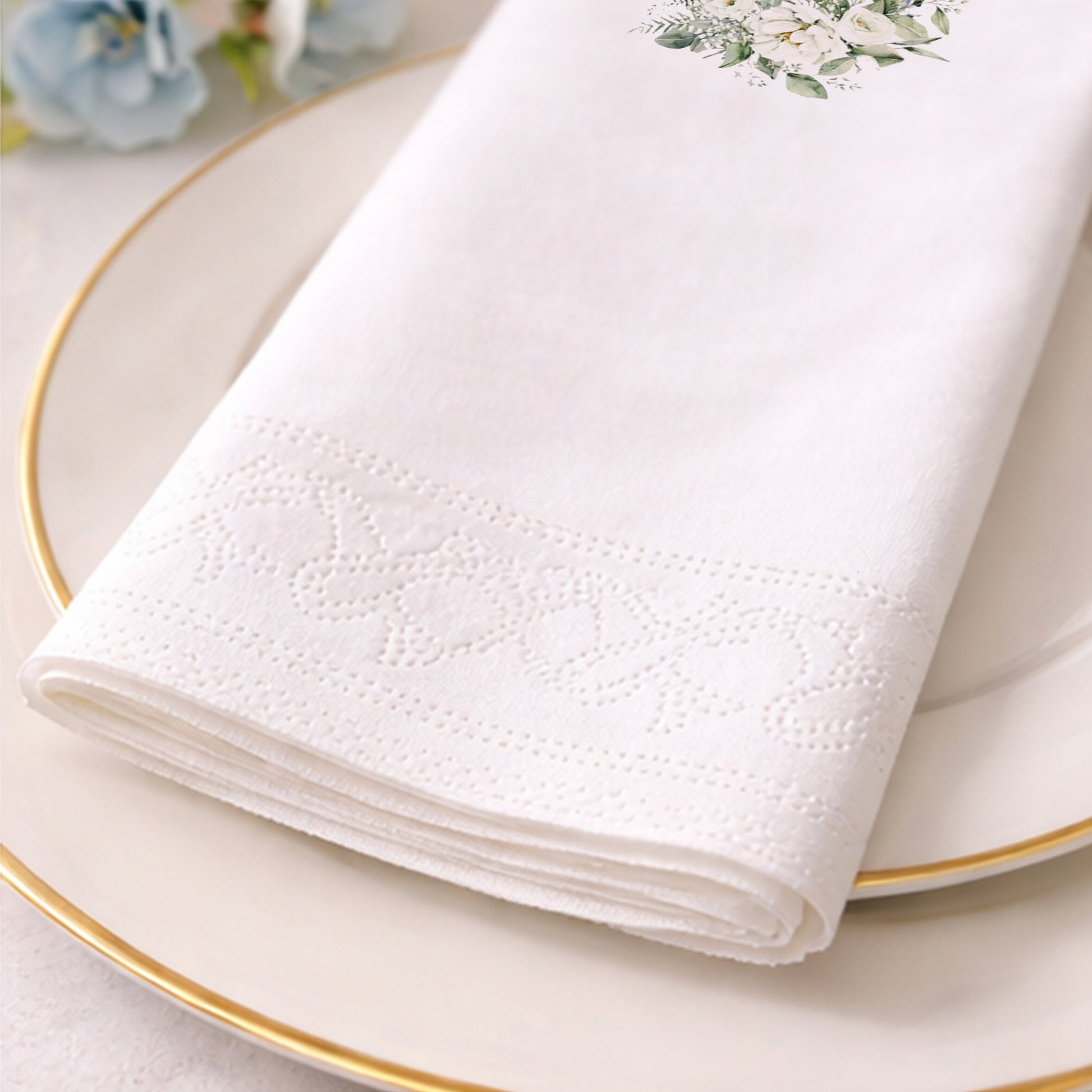 NS monogram detaylı bu çiçekli baskılı peçete, düğün ve nişan organizasyonlarında zarafet ve kişiselliği bir araya getirir. Beyaz çiçek illüstrasyonları ve monogram tasarımı, sade ama prestijli bir görünüm sunar. Özel gün peçetesi olarak masa düzenine sofistike bir dokunuş katar. Organizasyon peçetesi tercih eden çiftler için zamansız ve güven veren bir alternatiftir. Baskılı peçete, hem düğün peçetesi hem de nişan peçetesi olarak konsepti tamamlar.