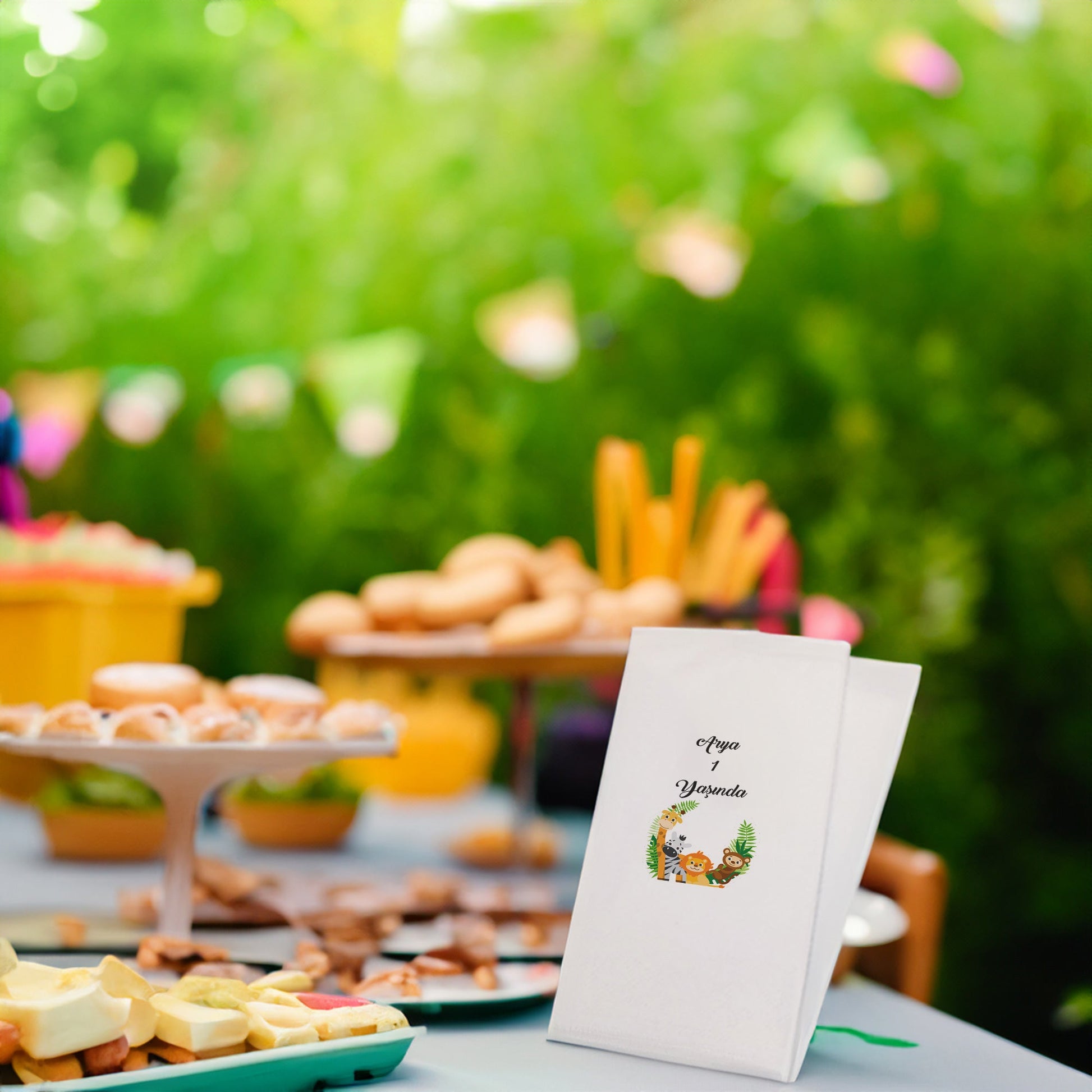 Her anınıza anlam katan ve duygularınızı yansıtan özel bir dokunuş: "Orman Hayvanları Baskılı Peçeteler! Doğum günü, Babyshower,Diş Buğdayı ve Sünnet Organizasyonlarınıza daha anlamlı hale getirecek ve sevdiklerinizle paylaşacağınız samimi anları renklendirecek.