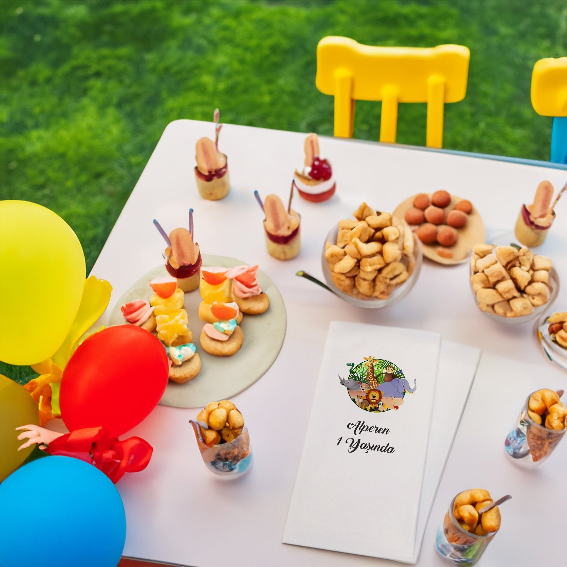 Her anınıza anlam katan ve duygularınızı yansıtan özel bir dokunuş: "Orman Hayvanları Baskılı Peçeteler! Doğum günü, Babyshower,Diş Buğdayı ve Sünnet Organizasyonlarınıza daha anlamlı hale getirecek ve sevdiklerinizle paylaşacağınız samimi anları renklendirecek.
