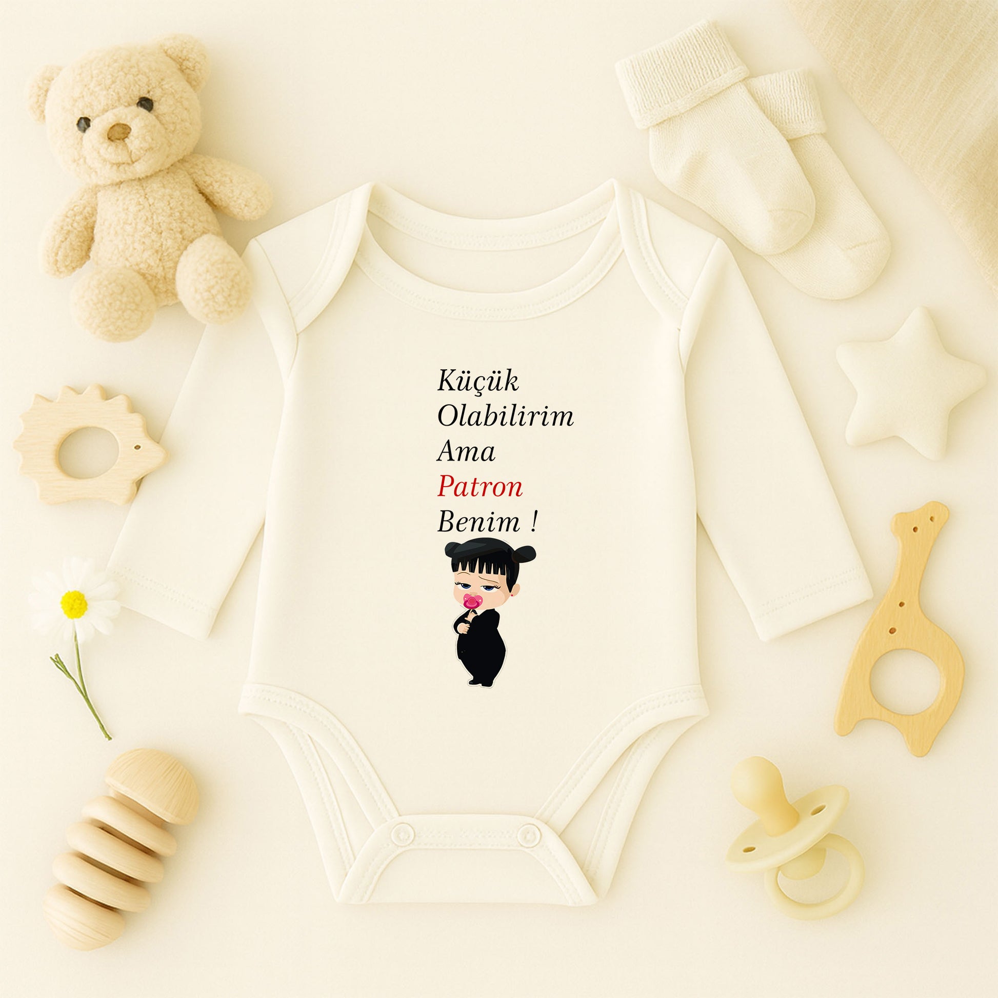 Patron Yazılı Boss Bebek Baskılı Tişört – Eğlenceli & Karizmatik Tasarım