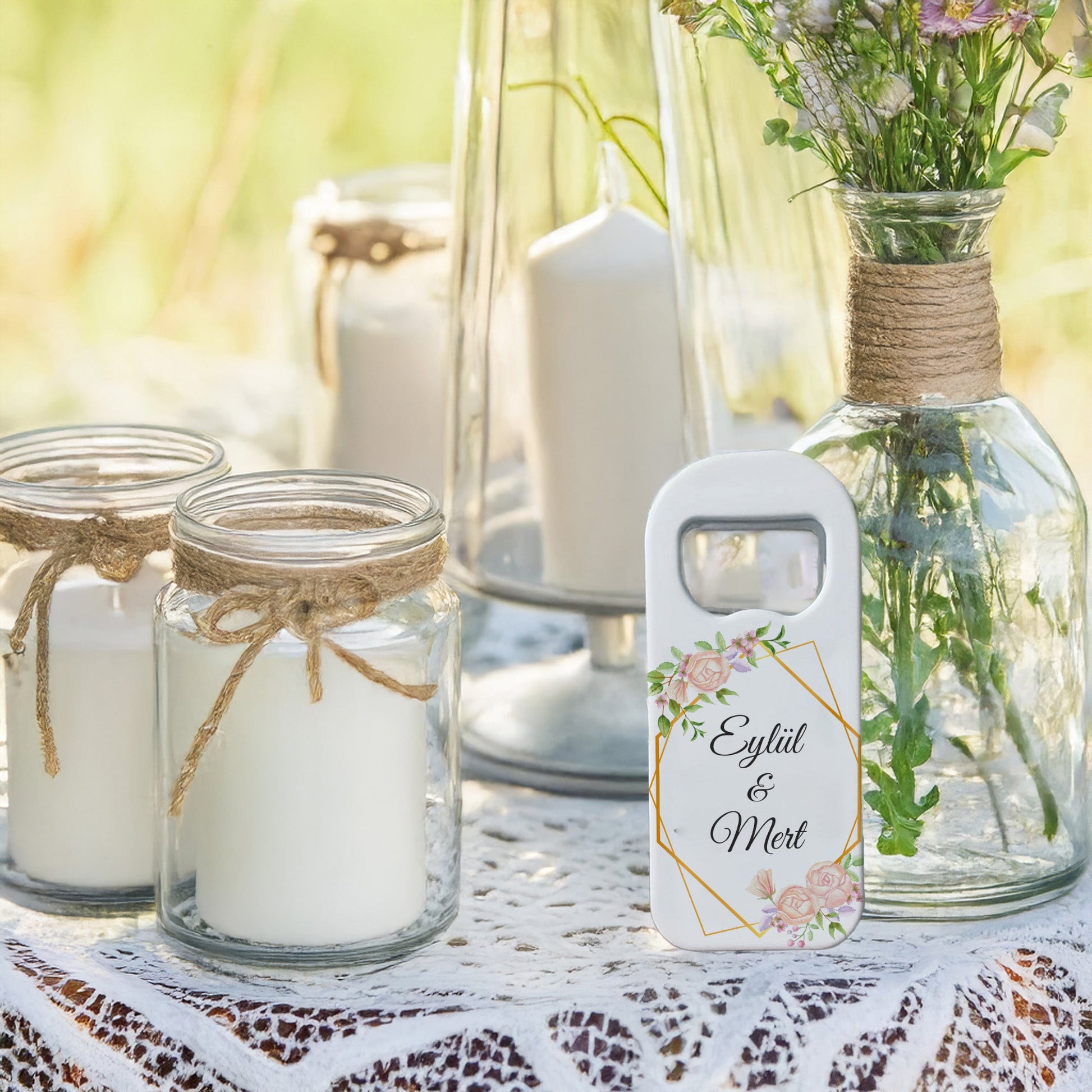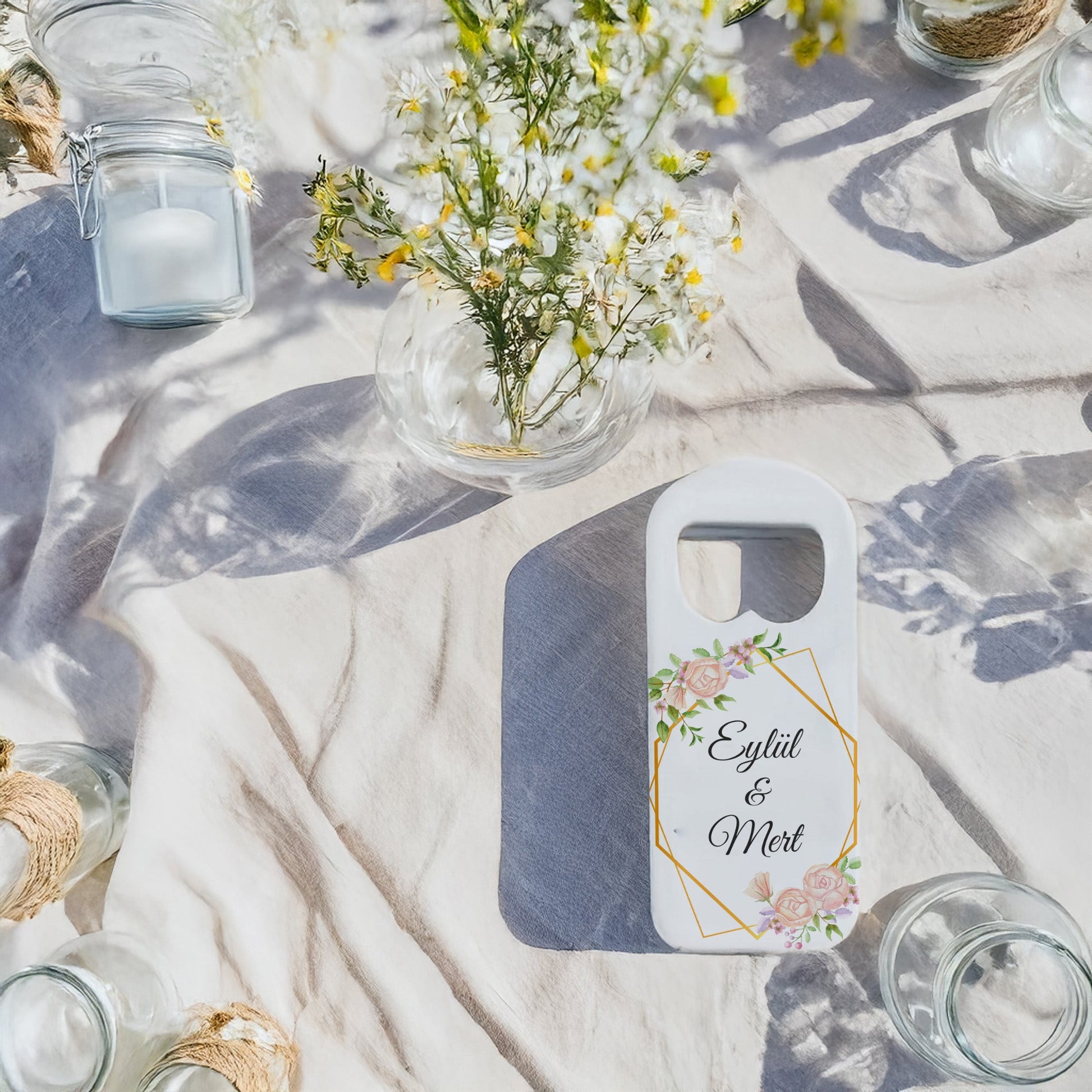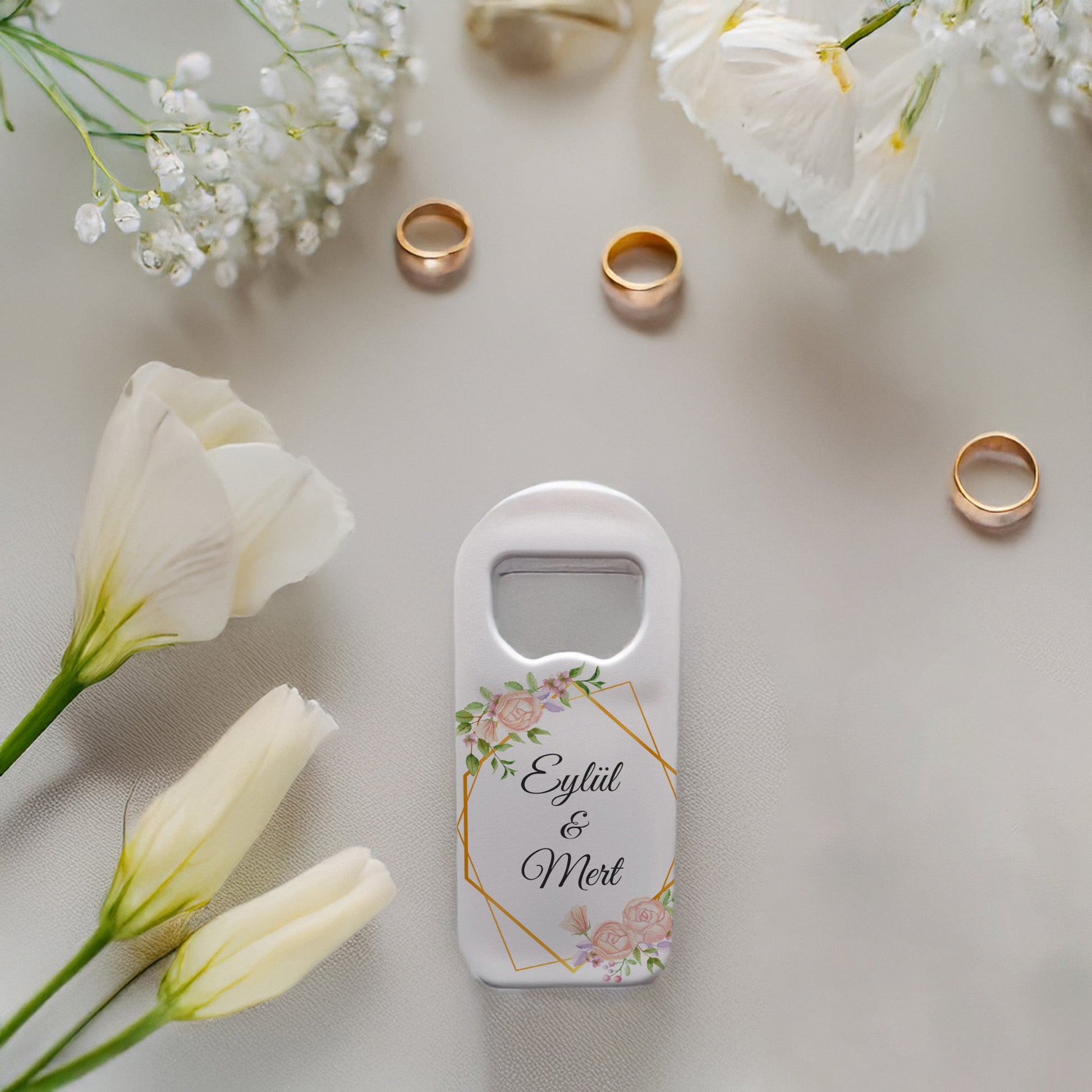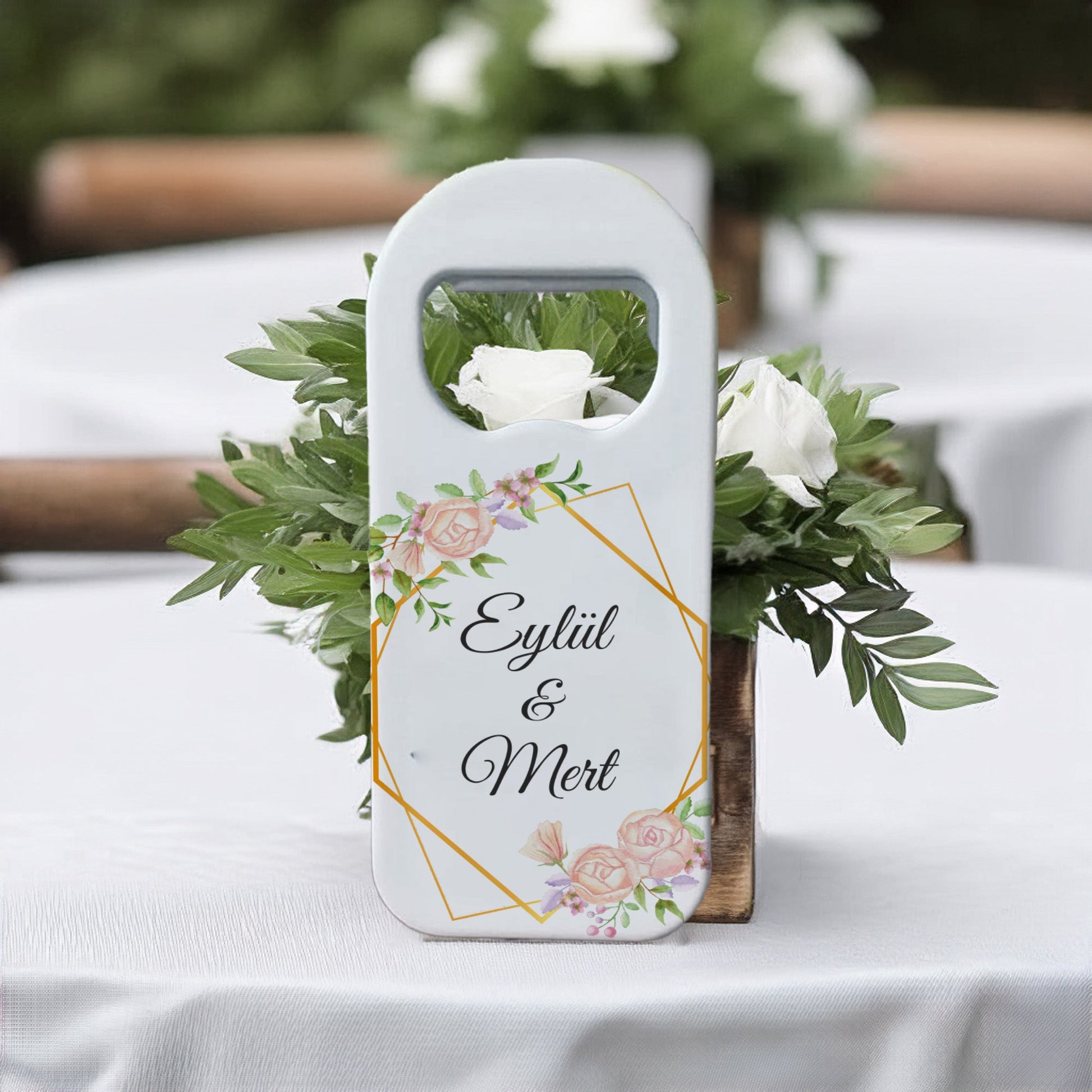 Kişiye özel desenlerimizle süslenmiş plastik açacak magnetlerimizle düğün,nişan, söz ya da kına gecenize unutulmaz bir hava katın!