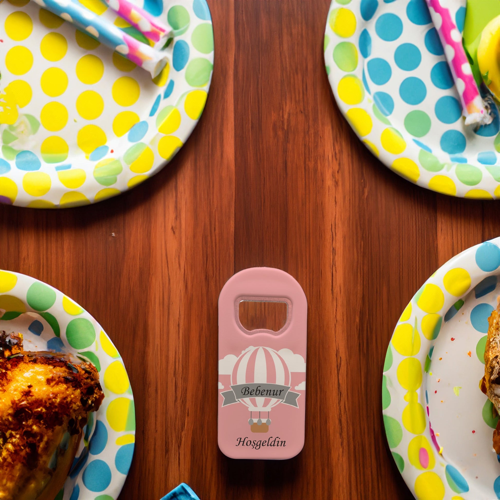 Pembe Zeminli Balon Temalı Plastik Açacak Magnet | Doğumgünü, Babyshower, Diş Buğdayı ve Sünnet Organizasyonlarınızın Unutulmaz Hatırası!
