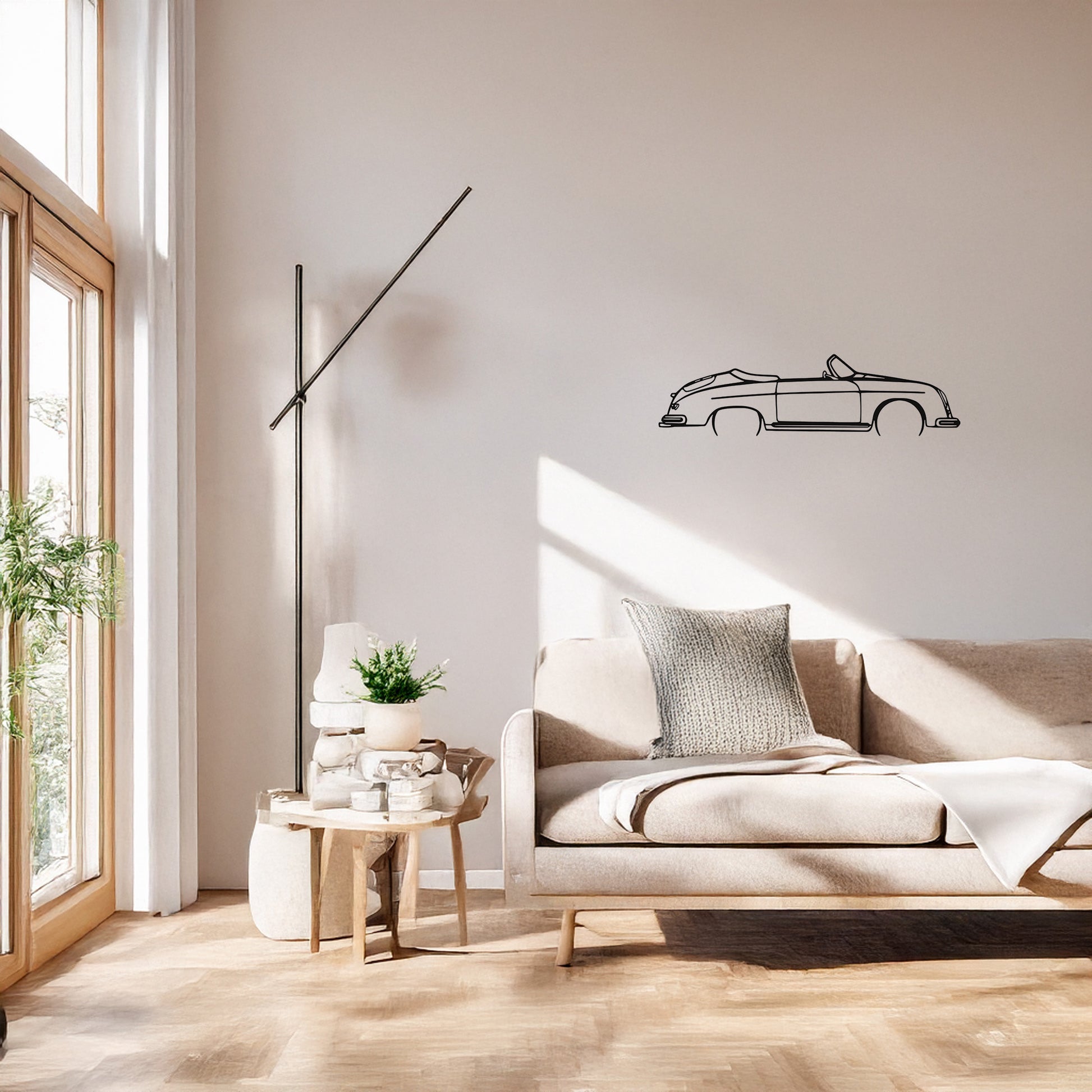 Porsche markasının efsanevi modellerinden biri olan 356 Speedster silüeti şimdi yaşam alanlarınızda sanat eserine dönüşüyor. 2 mm kalınlığındaki dayanıklı metal malzeme üzerine uygulanan elektrostatik siyah boya sayesinde uzun yıllar boyunca ilk günkü şıklığını korur. Modern dekorasyon anlayışına uygun olarak tasarlanan bu minimalist duvar panosu otomobil tutkunları için benzersiz bir hediye seçeneğidir. Salonunuzda ofisinizde veya garajınızda odak noktası oluşturacak olan bu tasarım klasik otomobil estetiğini endüstriyel dokunuşla birleştirir. Kolay asma aparatı sayesinde duvarınıza hemen monte edebilir ve derinlik algısı yaratan yapısıyla mekanınıza farklı bir atmosfer katabilirsiniz. Her bir detay özenle işlenmiş olup ikonik hatlar net bir şekilde vurgulanmıştır.
