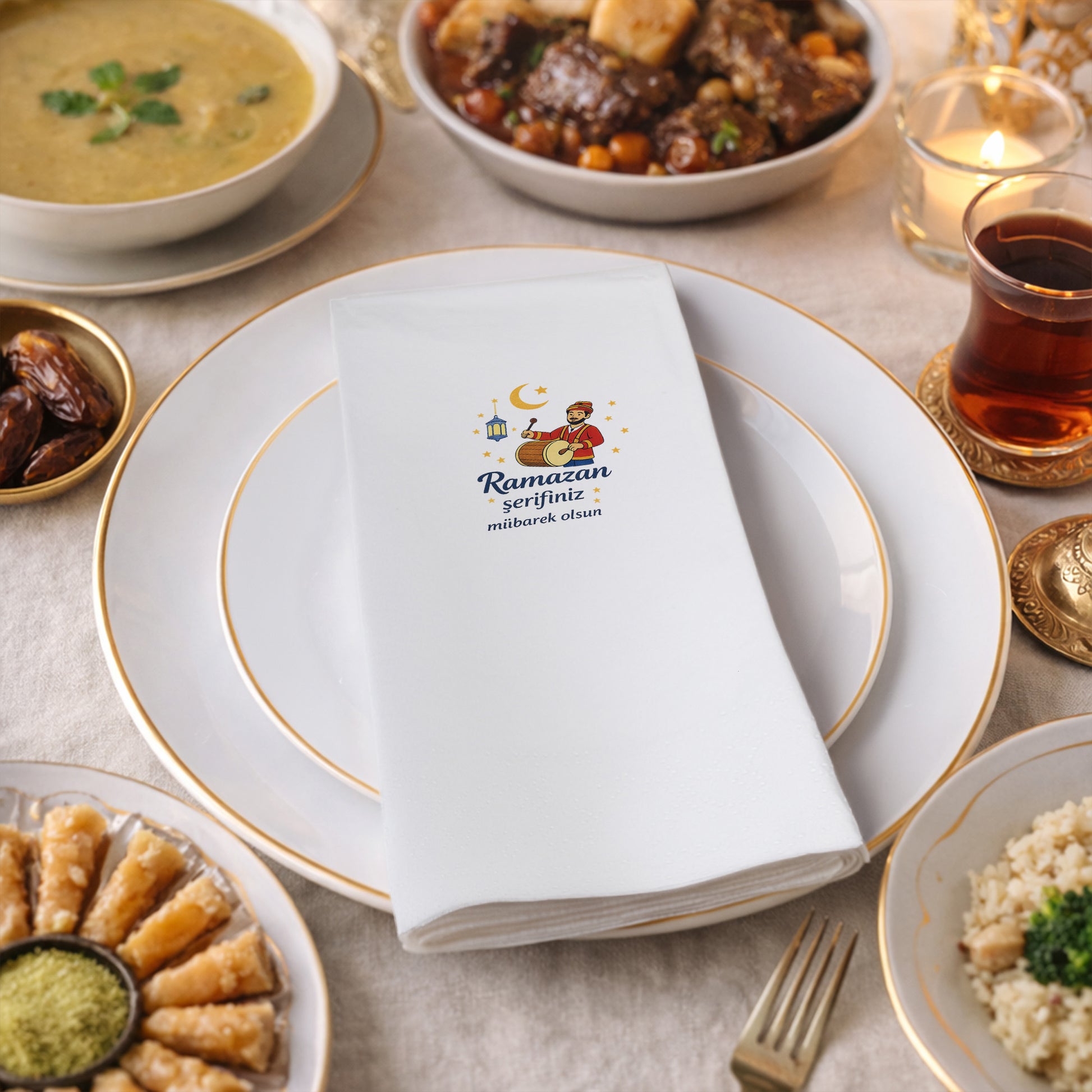Ramazan Davulcusu Desenli Baskılı Peçete – Ramazan Şerifiniz Mübarek Olsun | 33x33 cm