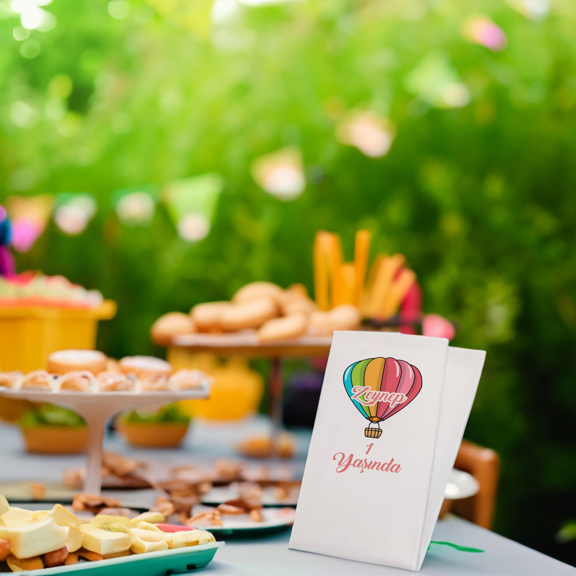 Her anınıza anlam katan ve duygularınızı yansıtan özel bir dokunuş: "Renkli Balon Temalı Baskılı Peçeteler! Doğum günü, Babyshower,Diş Buğdayı ve Sünnet Organizasyonlarınıza daha anlamlı hale getirecek ve sevdiklerinizle paylaşacağınız samimi anları renklendirecek.