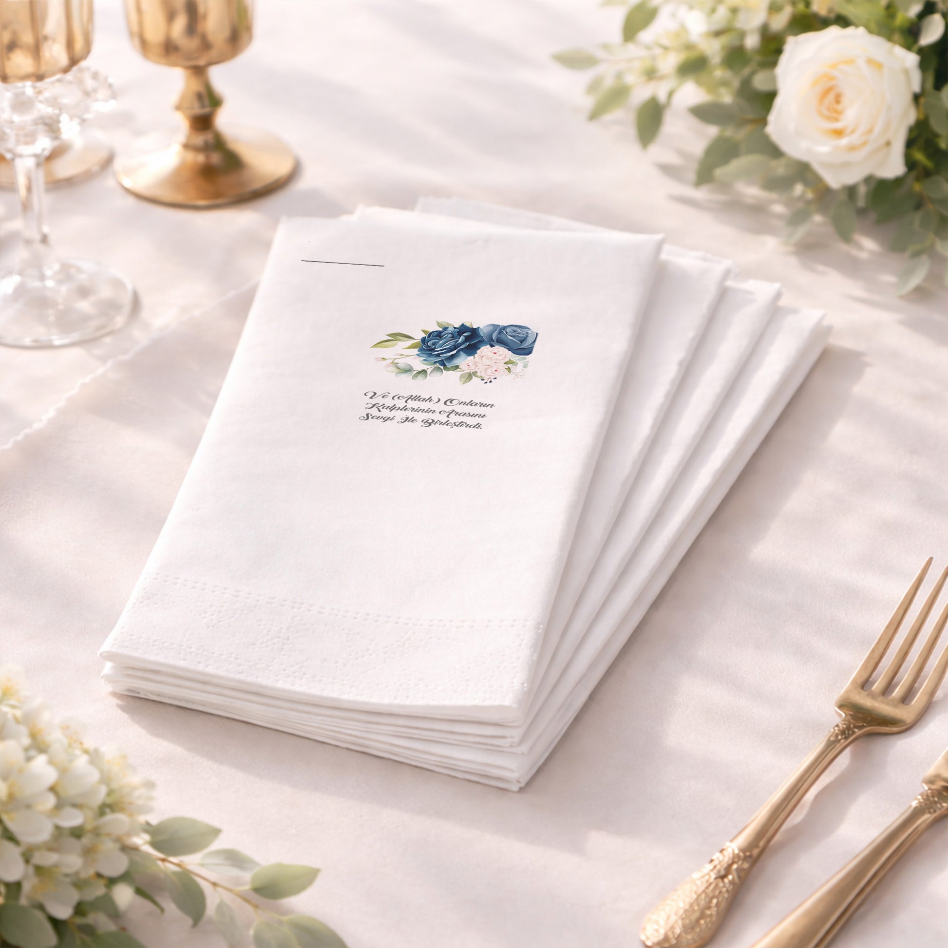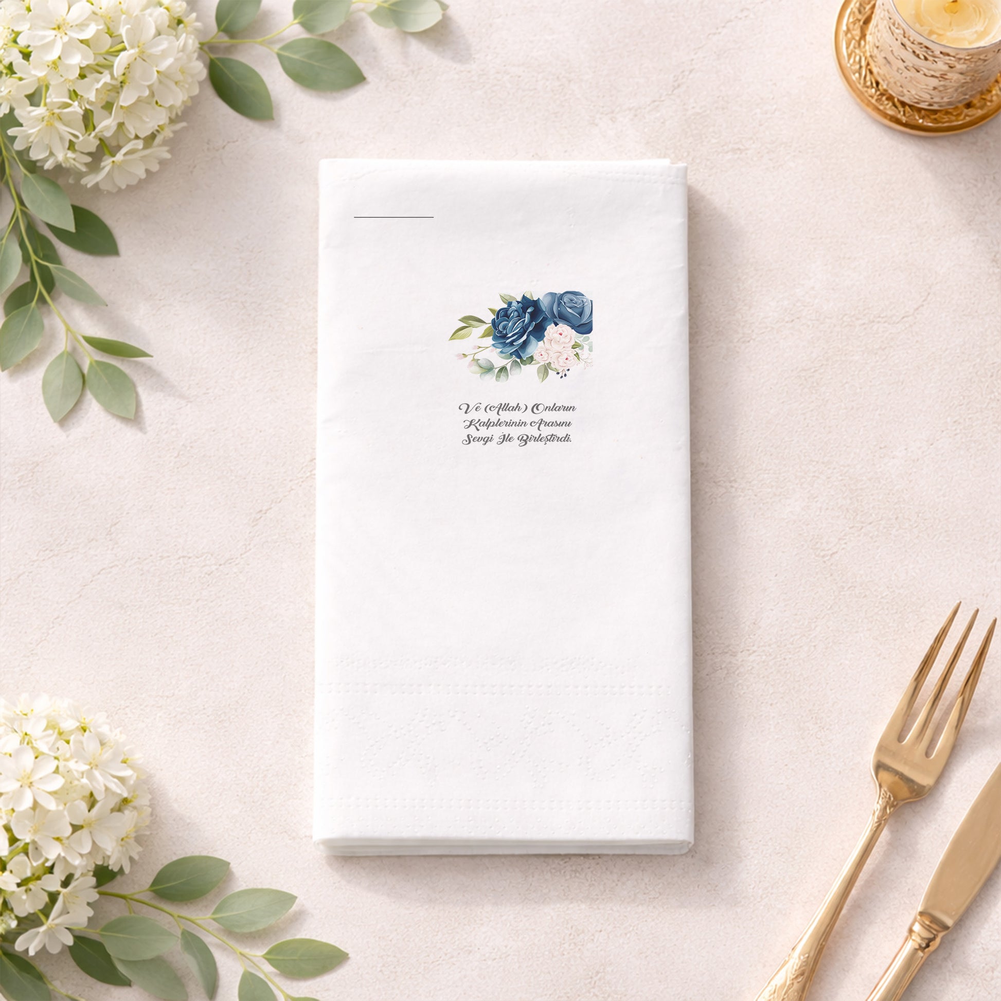 Tasarım, peçetenin ön yüzünde tam merkezde olacak şekilde yüksek çözünürlüklü baskı ile uygulanır. Dilersen özel konumlandırma taleplerini de iletebilirsin.