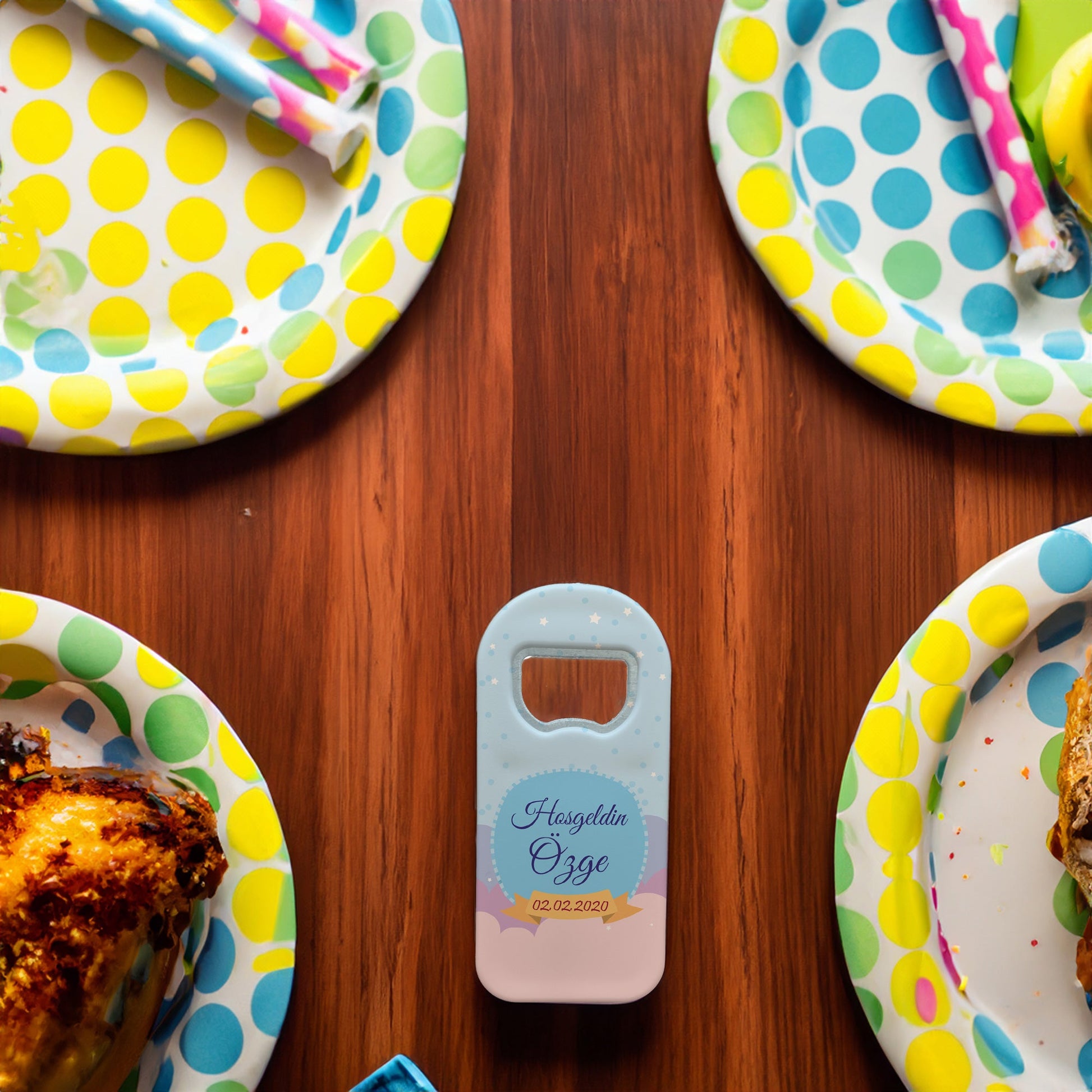 Renkli Zeminli Etiket Temalı Plastik Açacak Magnet | Doğumgünü, Babyshower, Diş Buğdayı ve Sünnet Organizasyonlarınızın Unutulmaz Hatırası!