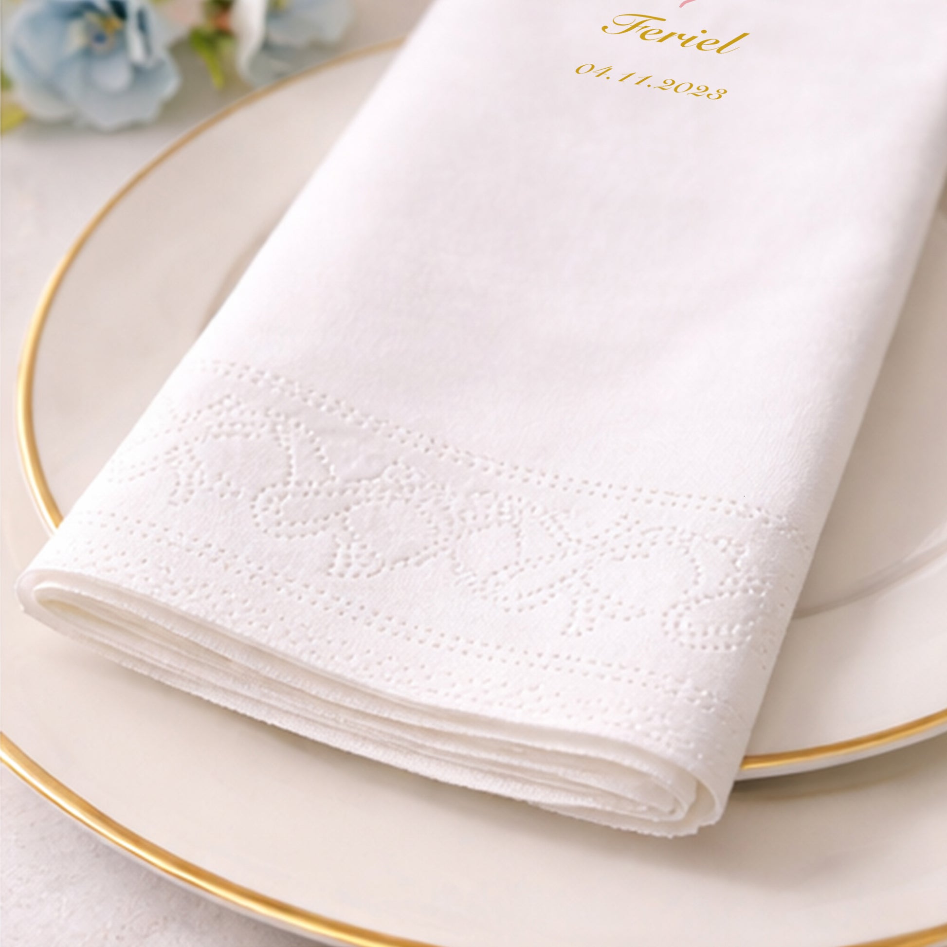 Kalpli Tipografili Düğün Peçetesi – Romantik ve Zarif Tasarım