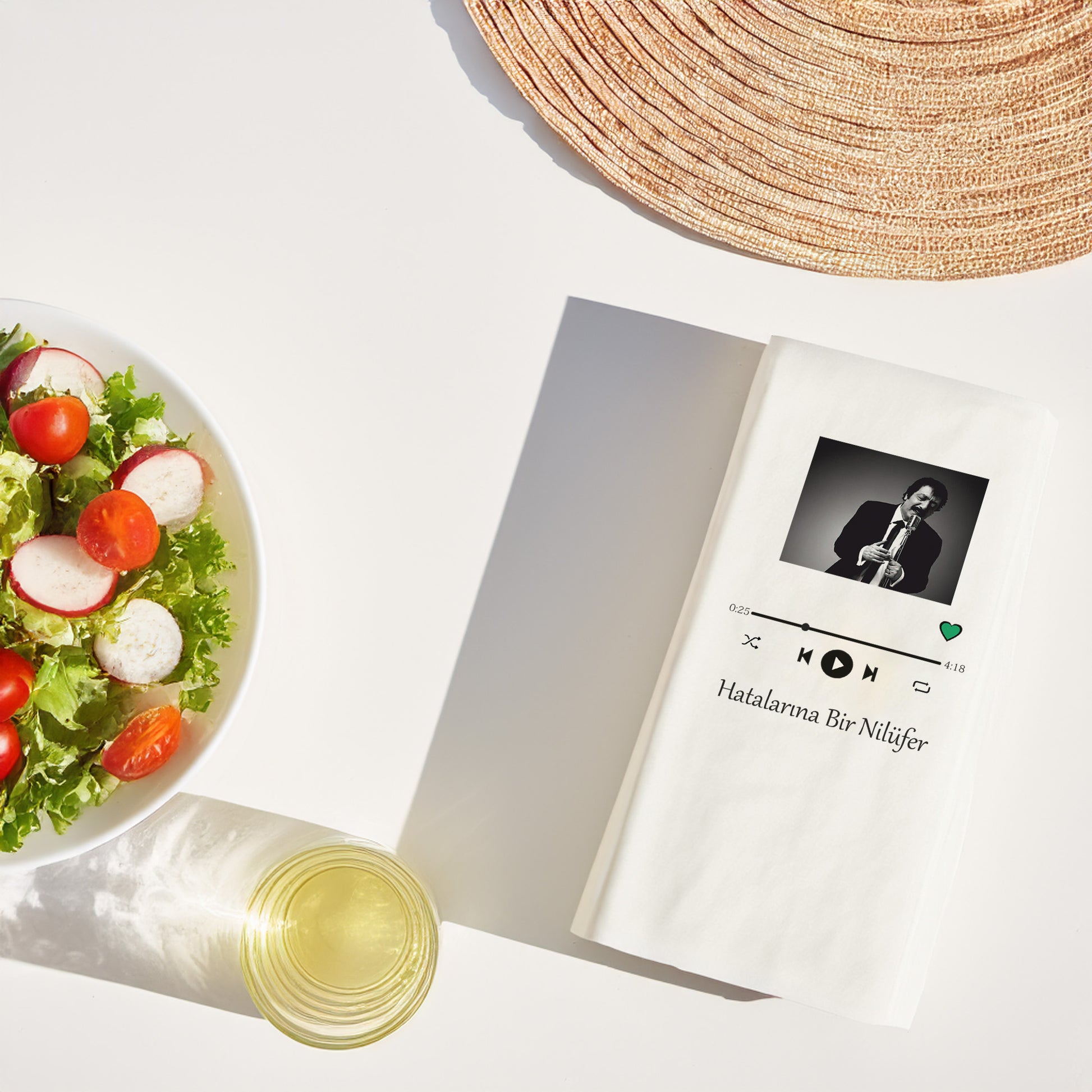 “Hatalarına Bir Nilüfer” şarkısından ilham alınarak tasarlanan bu şık peçete; özel gün sofralarına, hediye kutularına, doğum günü masalarına ve butik konsept sunumlara benzersiz bir hava katıyor.