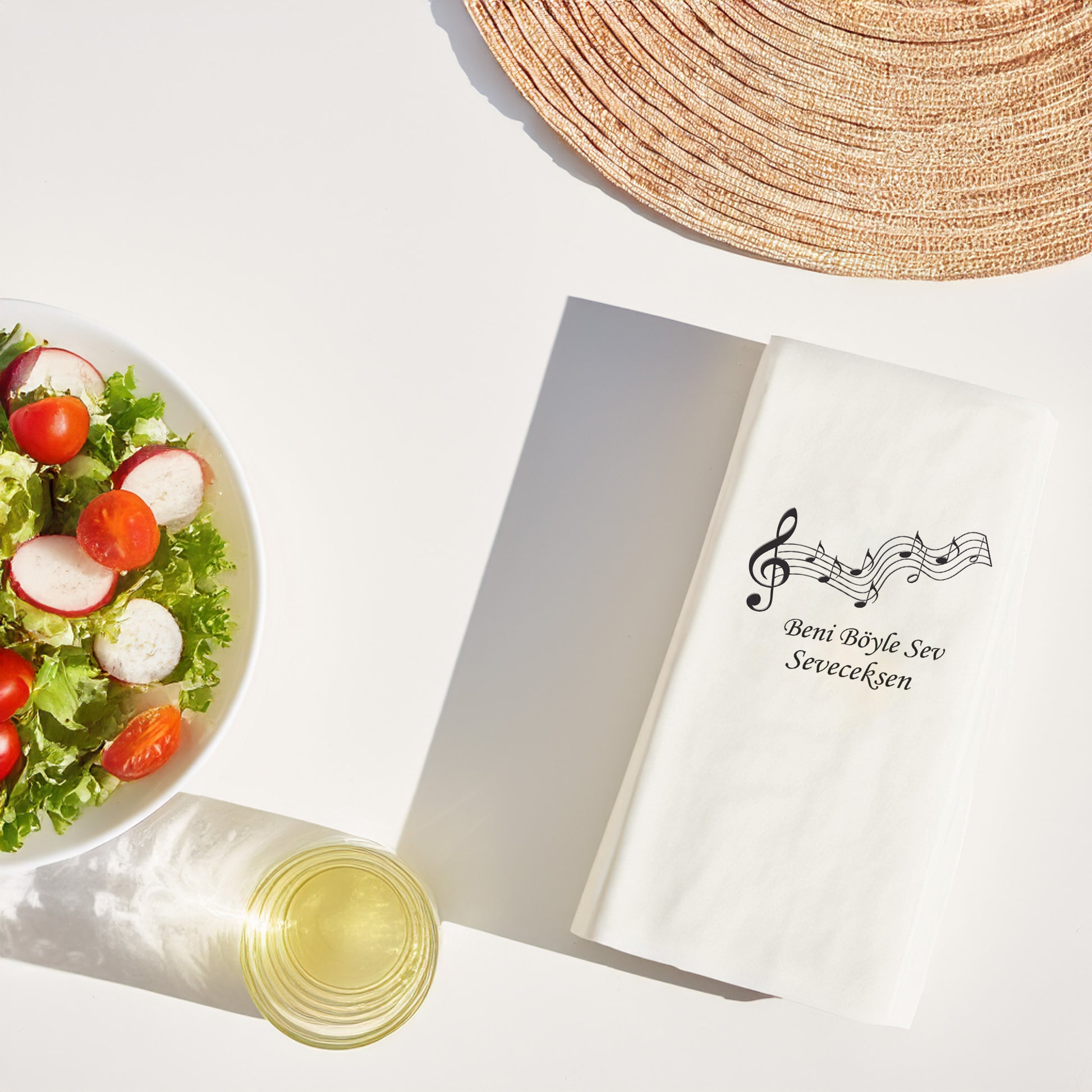 Kidzia Şarkı Sözü Temalı Baskılı Peçete, romantik detayları ve müzik notalarıyla hazırlanmış özel tasarımı sayesinde sofranıza sıcak, duygusal ve estetik bir hava katar.