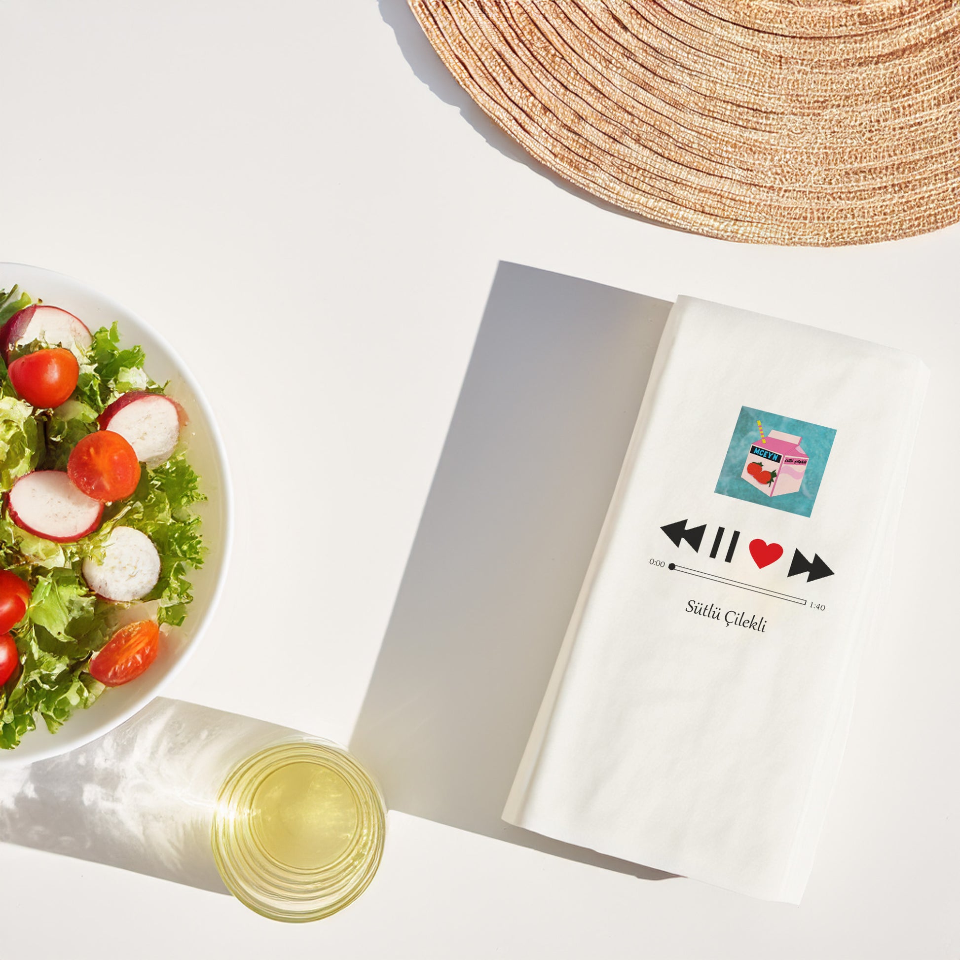 • Müzik player ikonlu “Sütlü Çilekli” tasarım