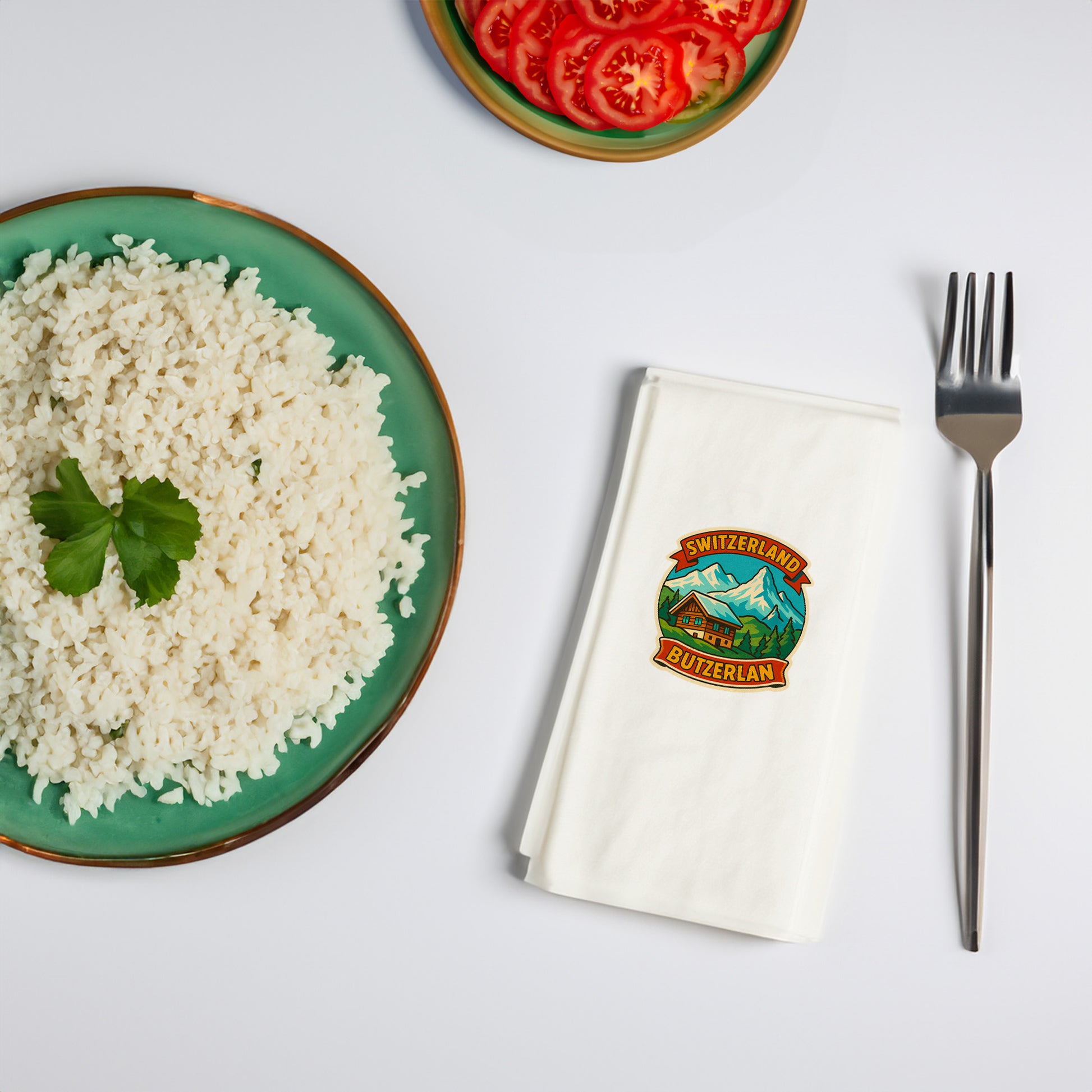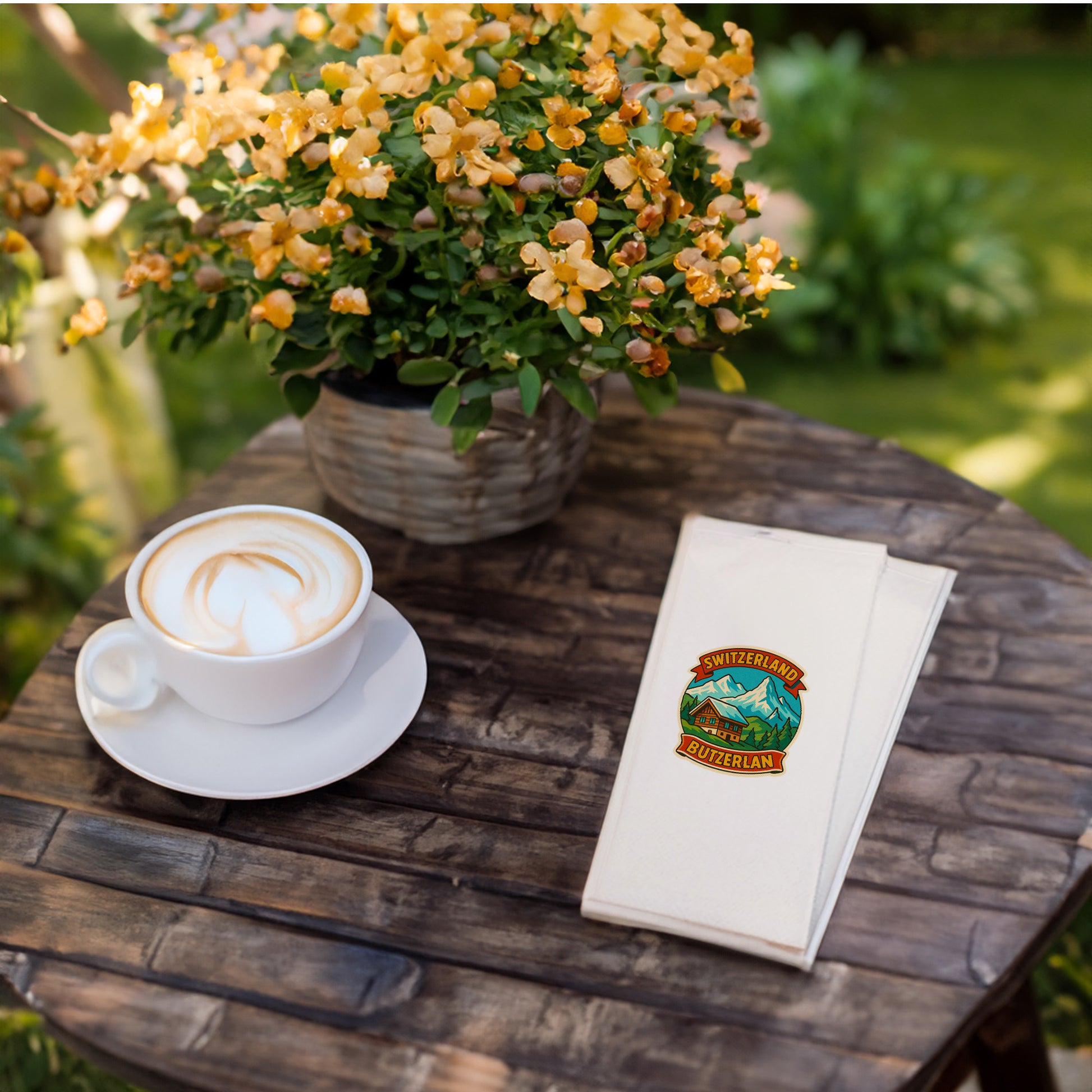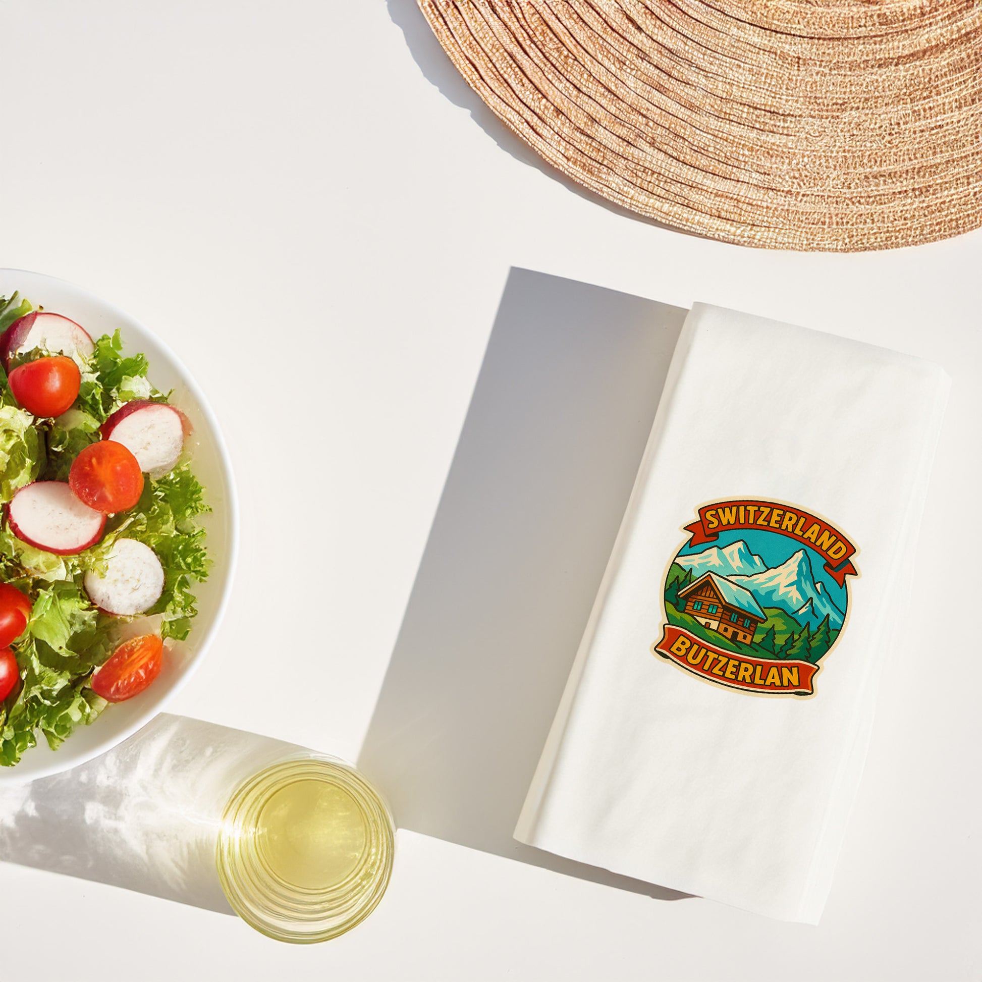 Switzerland temalı bu özel baskılı peçete, sofralara doğallık, ferahlık ve Avrupa alp zarafetini bir arada sunar.