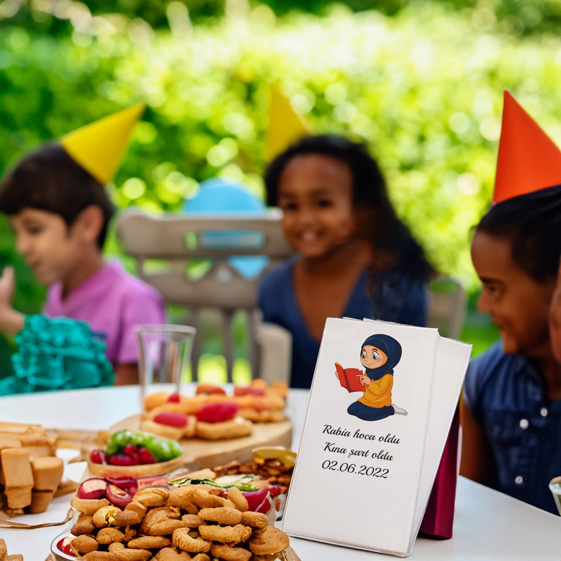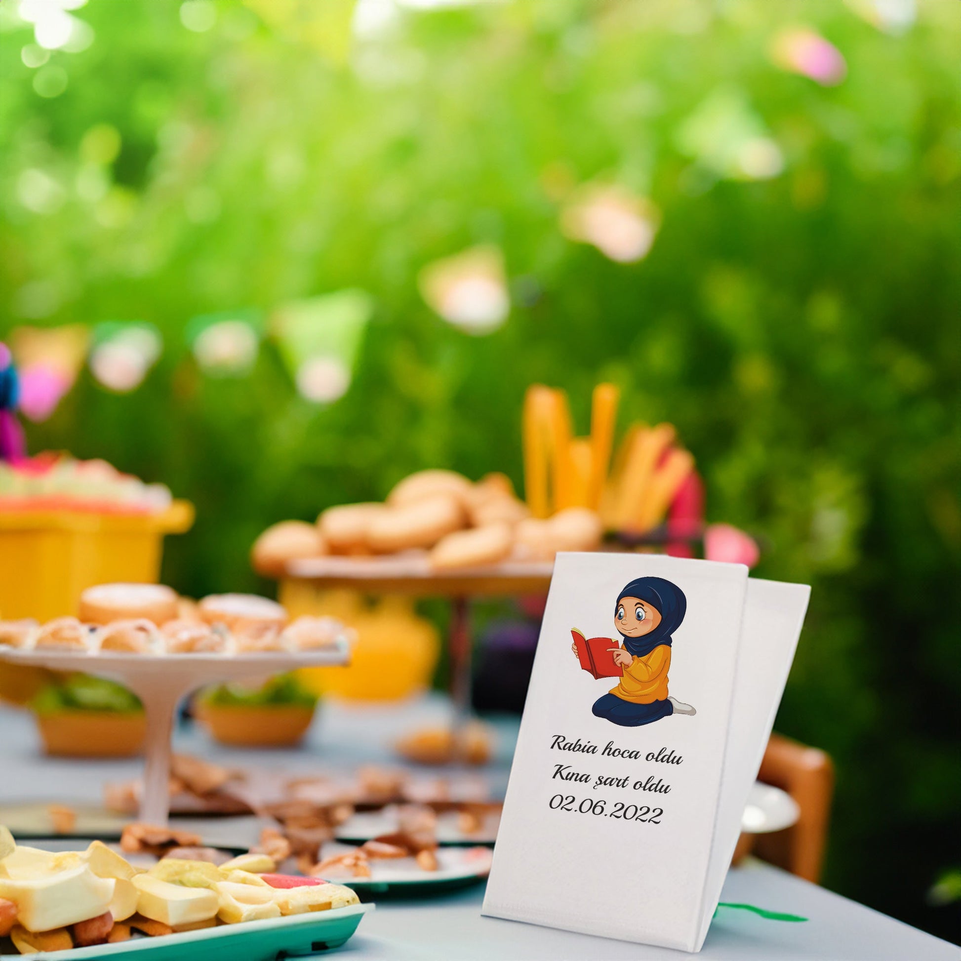 Her anınıza anlam katan ve duygularınızı yansıtan özel bir dokunuş: "Tesettürlü Kadın Temalı Baskılı Peçeteler! Doğum günü, Babyshower,Diş Buğdayı ve Sünnet Organizasyonlarınıza daha anlamlı hale getirecek ve sevdiklerinizle paylaşacağınız samimi anları renklendirecek.