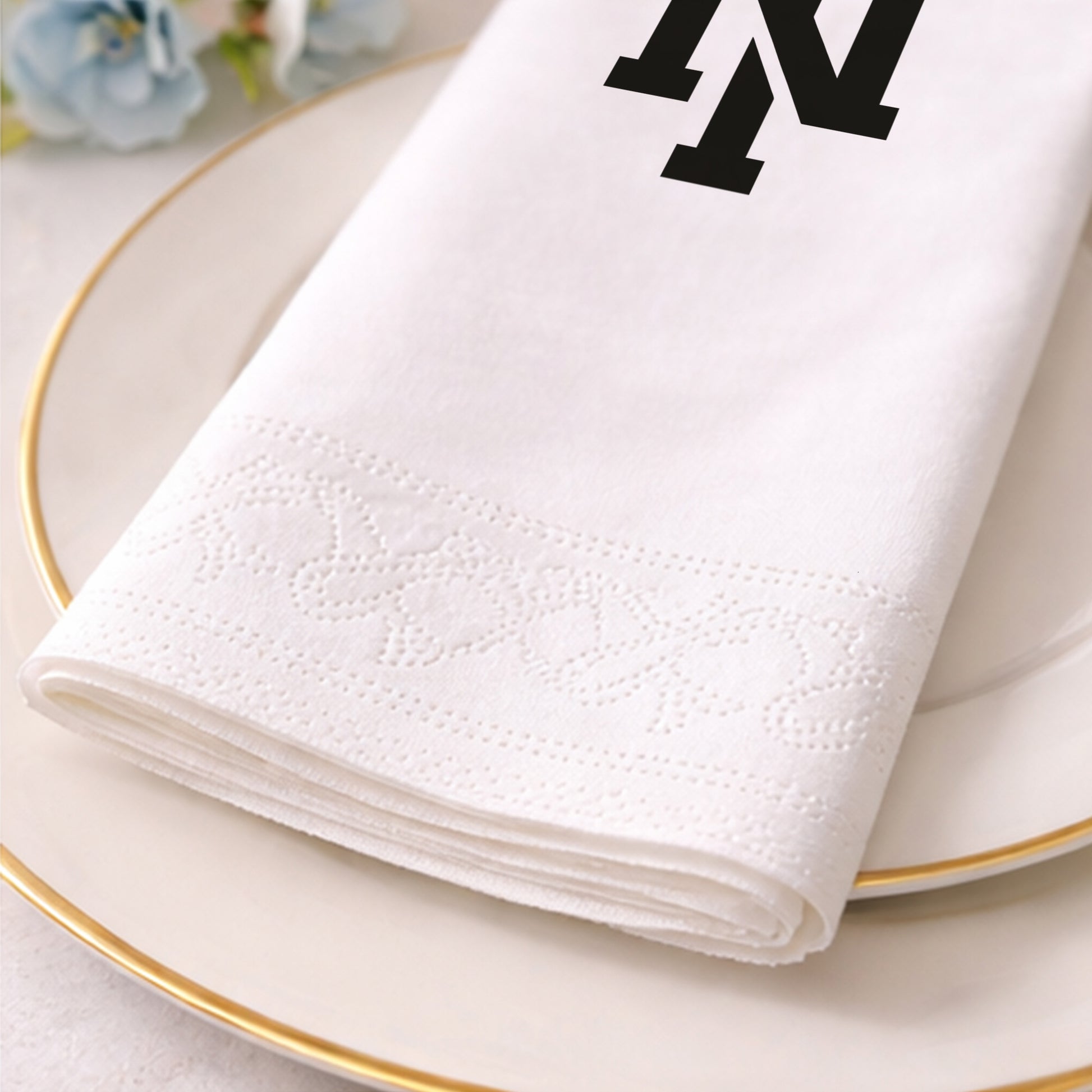 Tasarım, peçetenin ön yüzünde tam merkezde olacak şekilde yüksek çözünürlüklü baskı ile uygulanır. Dilersen özel konumlandırma taleplerini de iletebilirsin.