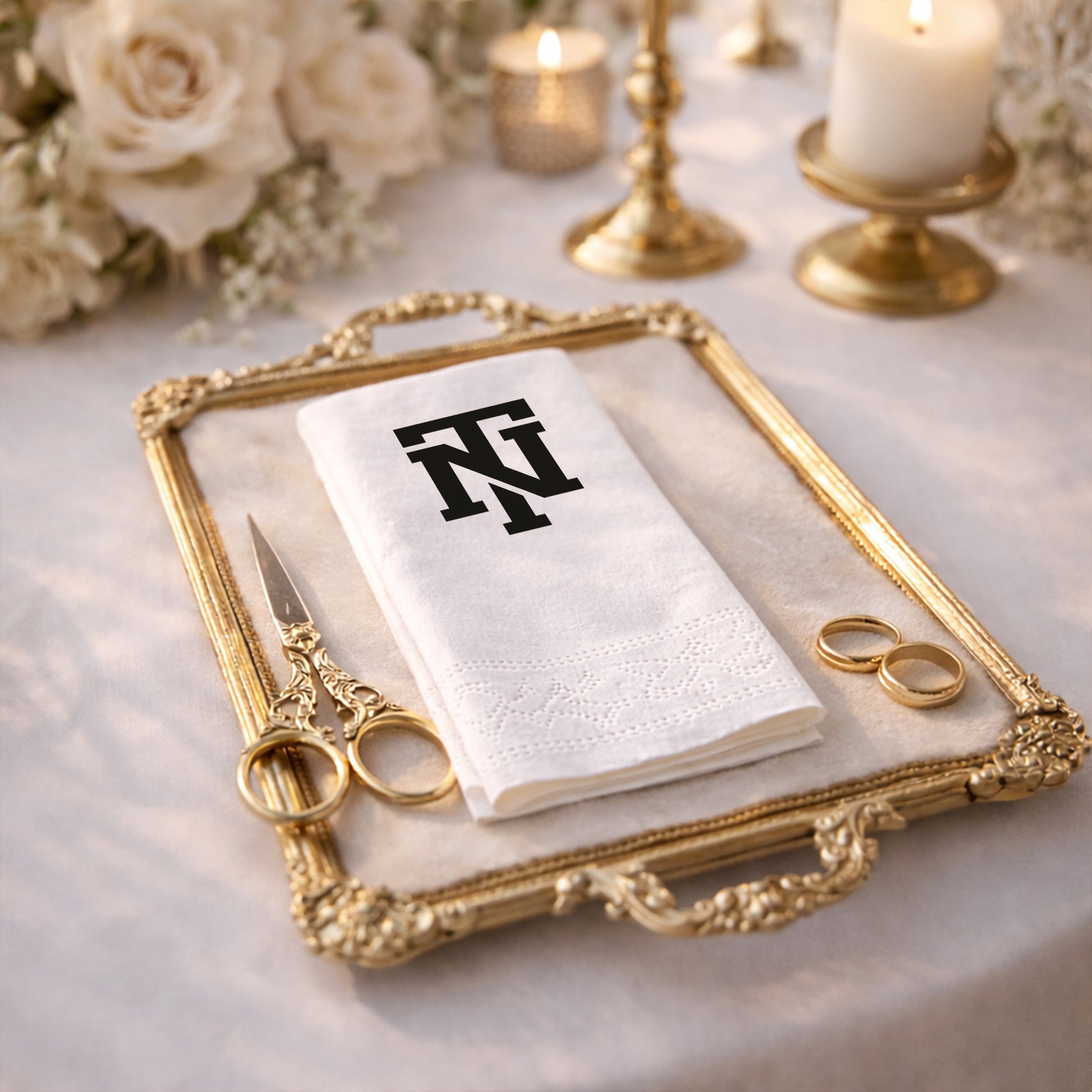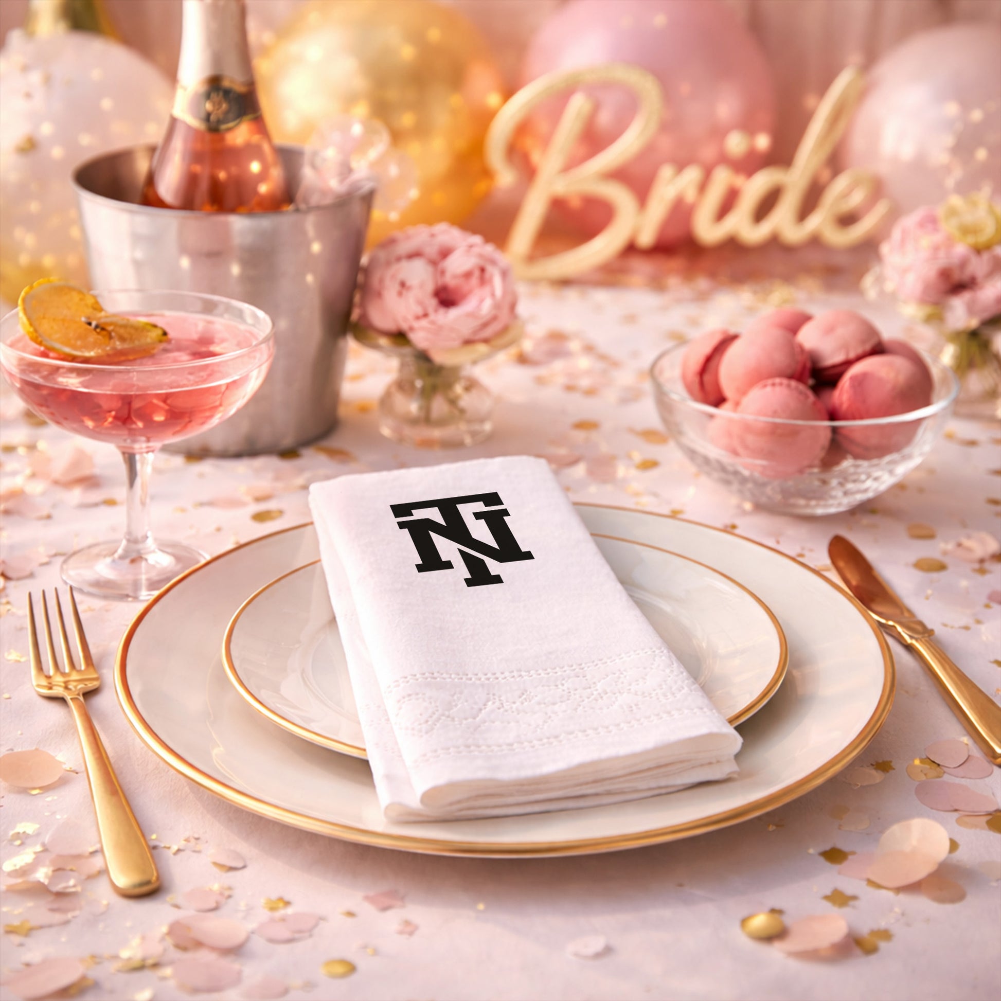 Baş harflerinizin gücünü sofralarınıza taşıyan bu özel logo tasarımlı peçete, kurumsal veya kişisel tüm organizasyonlarınızda prestij simgesi olacak. "TN" harflerinin iç içe geçtiği modern ve maskülen hatlar, siyah zemin üzerinde vakur bir duruş sergiliyor. Sadece bir peçete değil, etkinliğinizin kimliğini yansıtan bir tasarım öğesi olarak öne çıkar. Düğünlerden özel davetlere kadar geniş bir kullanım alanına sahip olan bu baskılı peçete, kalitesiyle farkını hissettirir. Premium kağıt kalitesi ve pürüzsüz dokusuyla misafirlerinize üst düzey bir deneyim yaşatır. Minimalist estetik anlayışını benimseyen organizasyonlar için en uygun seçeneklerden biridir. Baskı kalitesi, logonuzun tüm detaylarını net bir şekilde ortaya çıkarır. Sofra düzeninizde ağırbaşlı ve profesyonel bir görünüm elde etmek istiyorsanız bu ürün tam size göredir. Özel logo çalışmalarımızla her etkinliği benzersiz kılıyoruz.