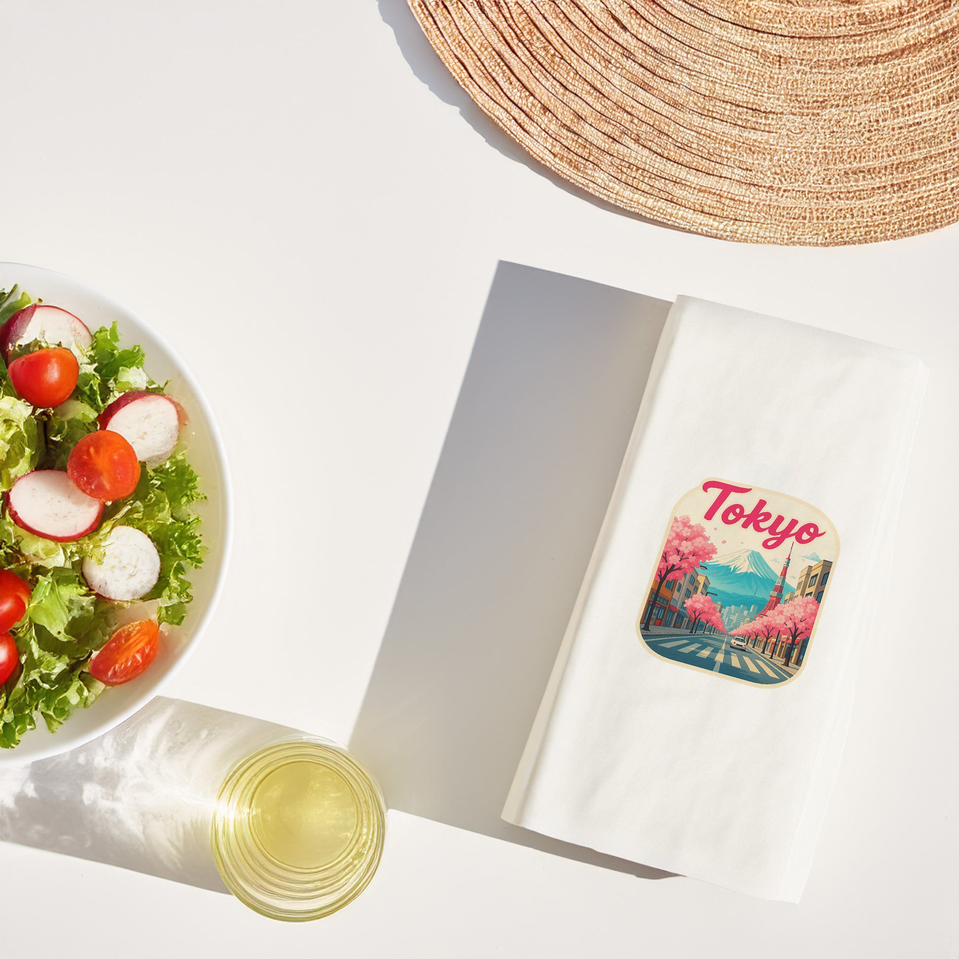 Tokyo temalı bu özel tasarım peçete, sofralarda Japon estetiğini, doğa ve şehir uyumunu bir araya getirir.