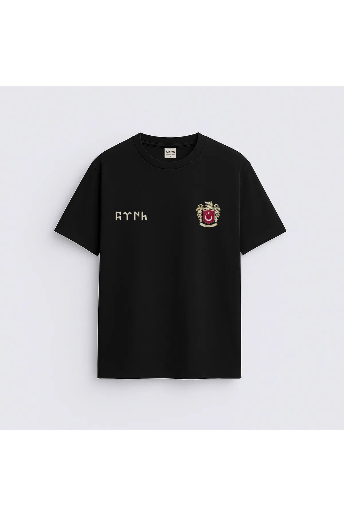 Türk Bozkurt Türk Bayrağı Baskılı Bisiklet Yaka Siyah Tişört
