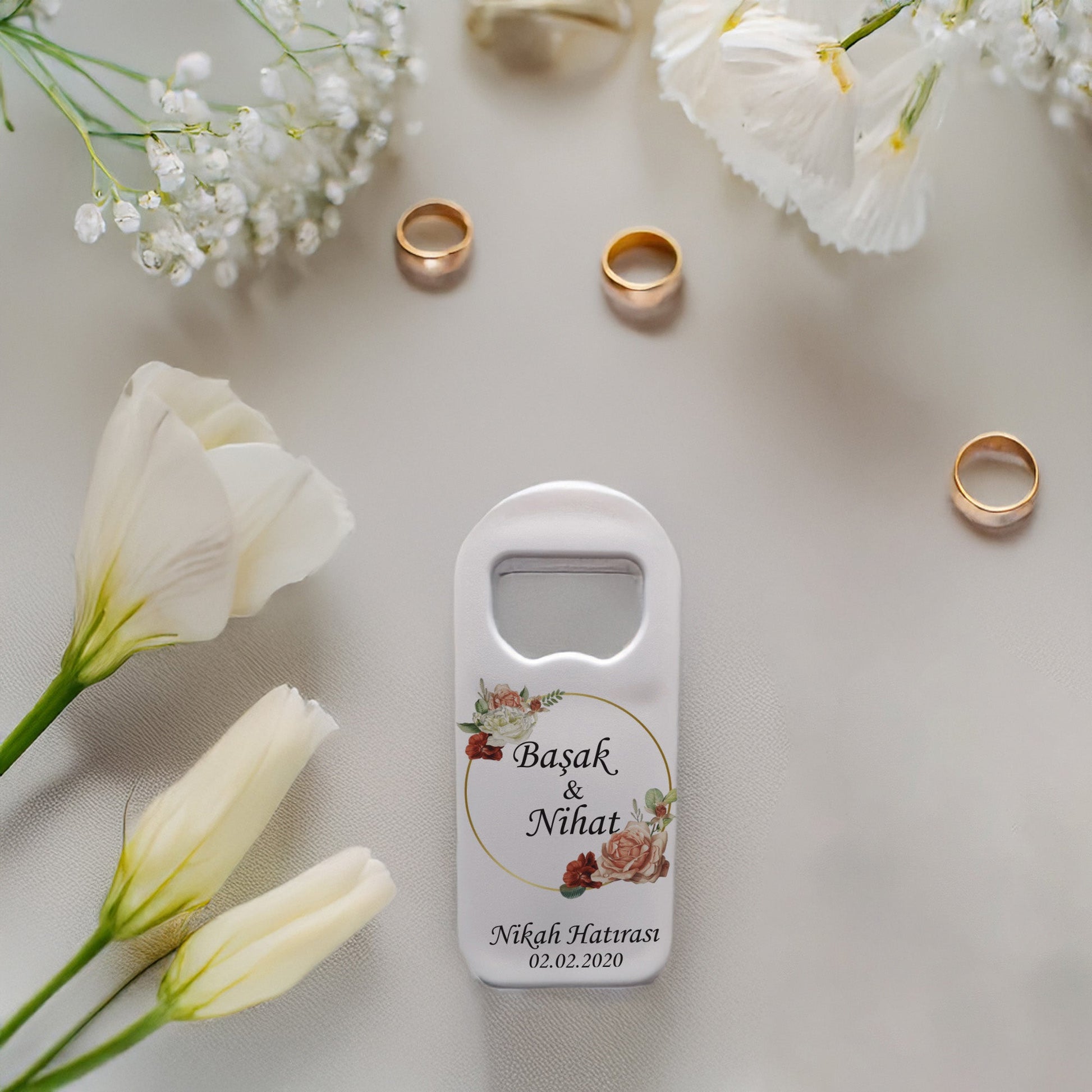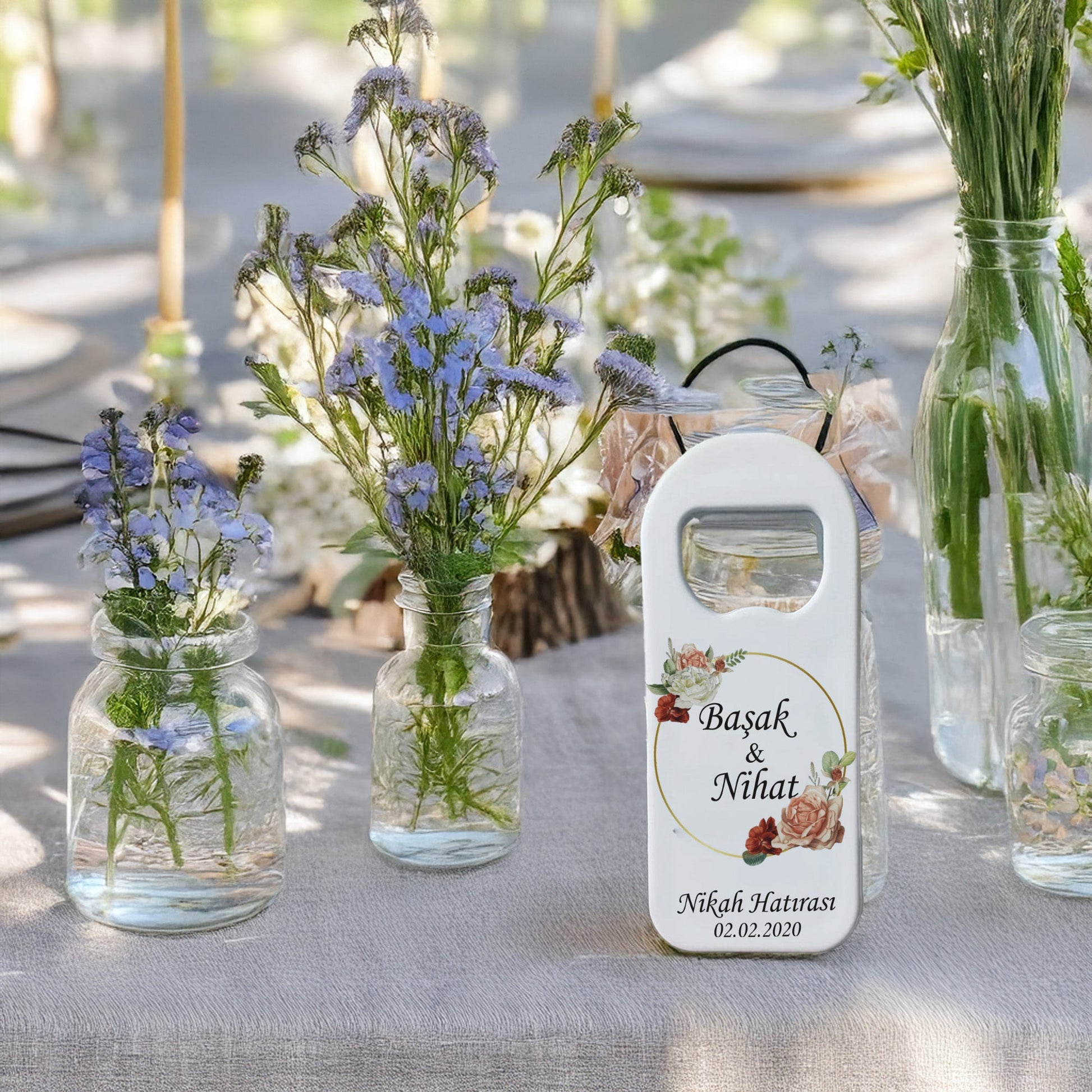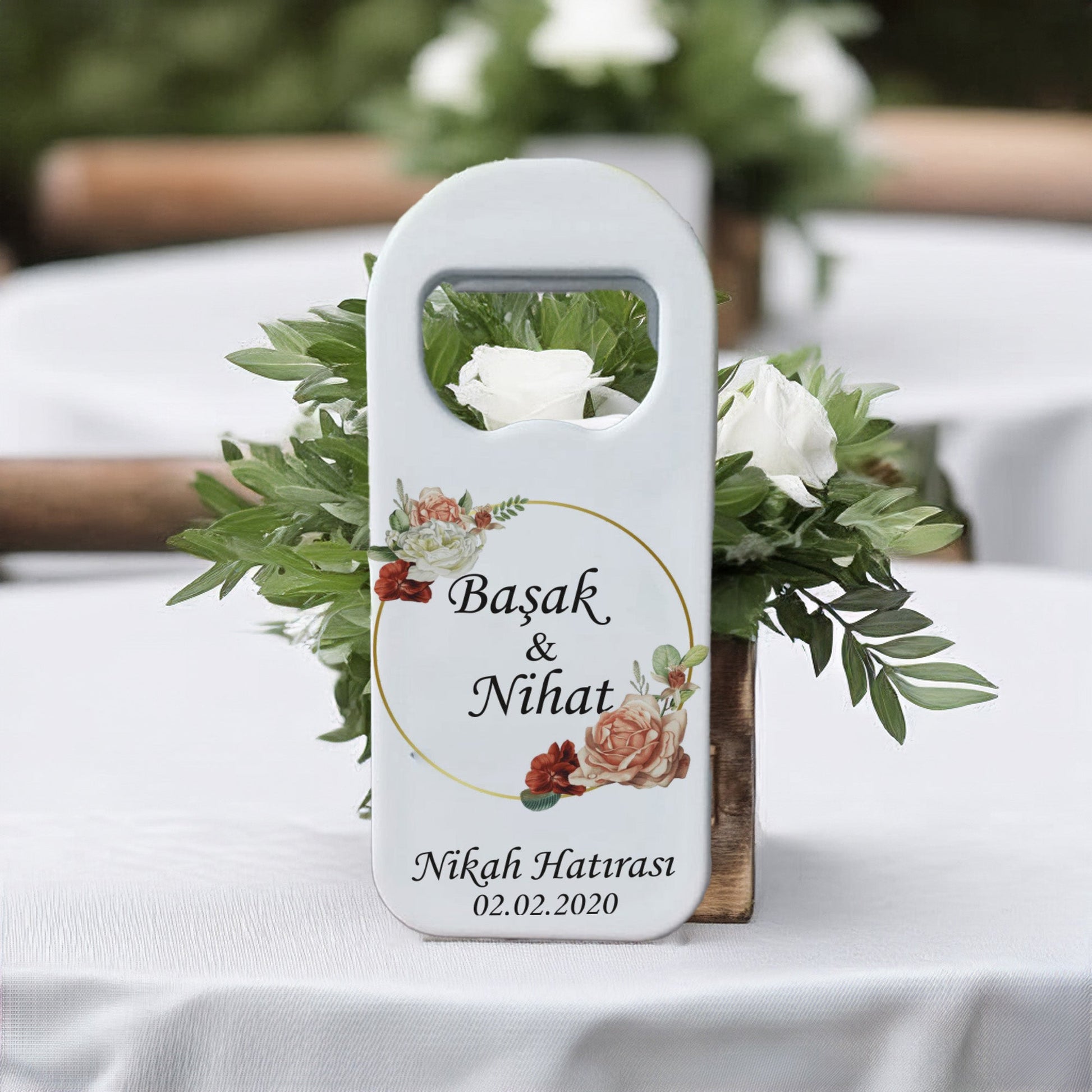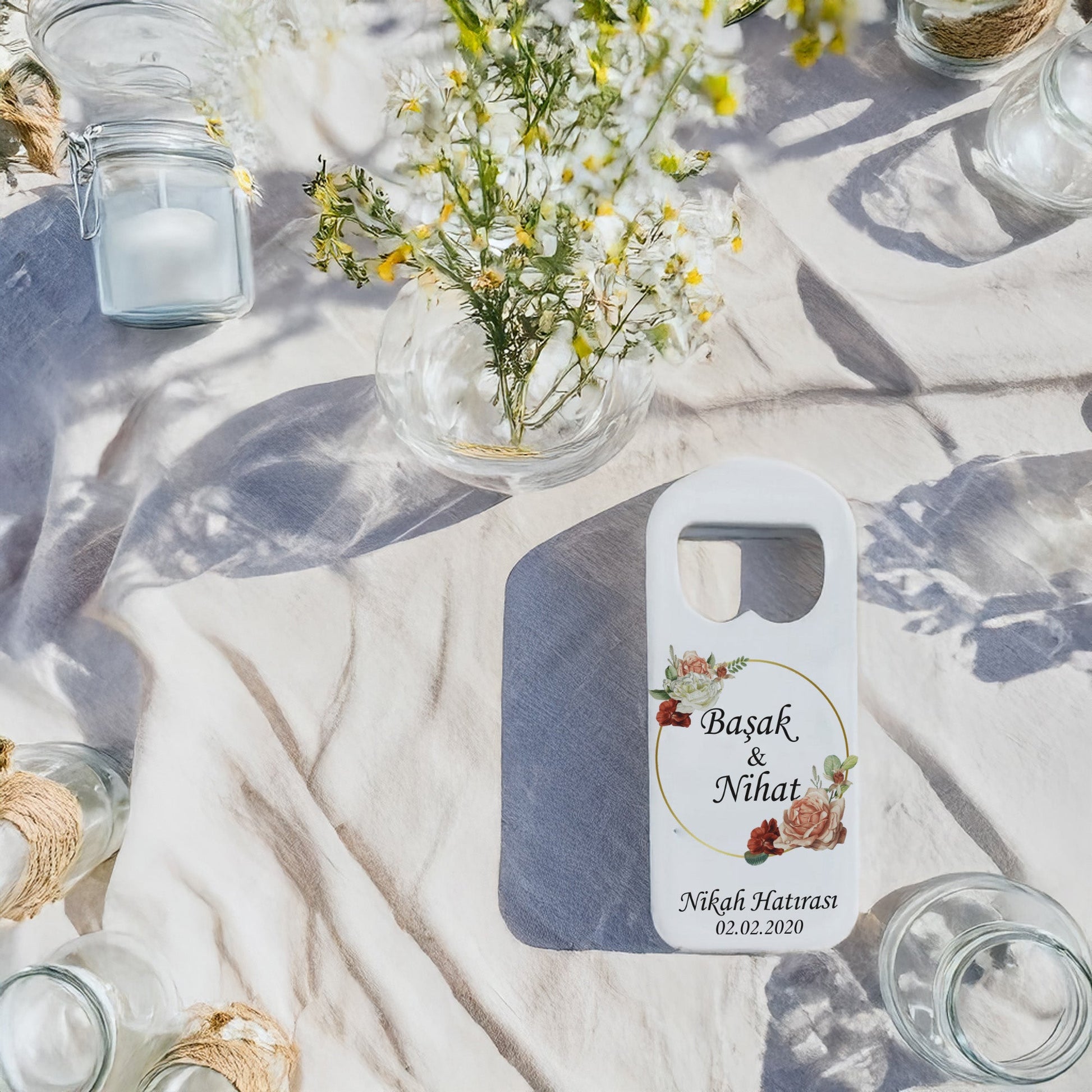 Kişiye özel desenlerimizle süslenmiş plastik açacak magnetlerimizle düğün,nişan, söz ya da kına gecenize unutulmaz bir hava katın!
